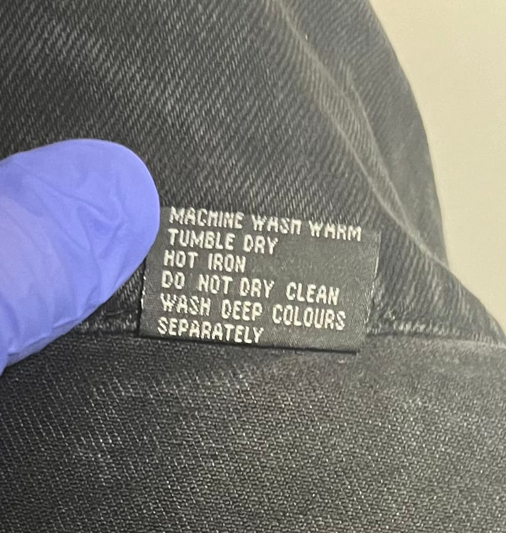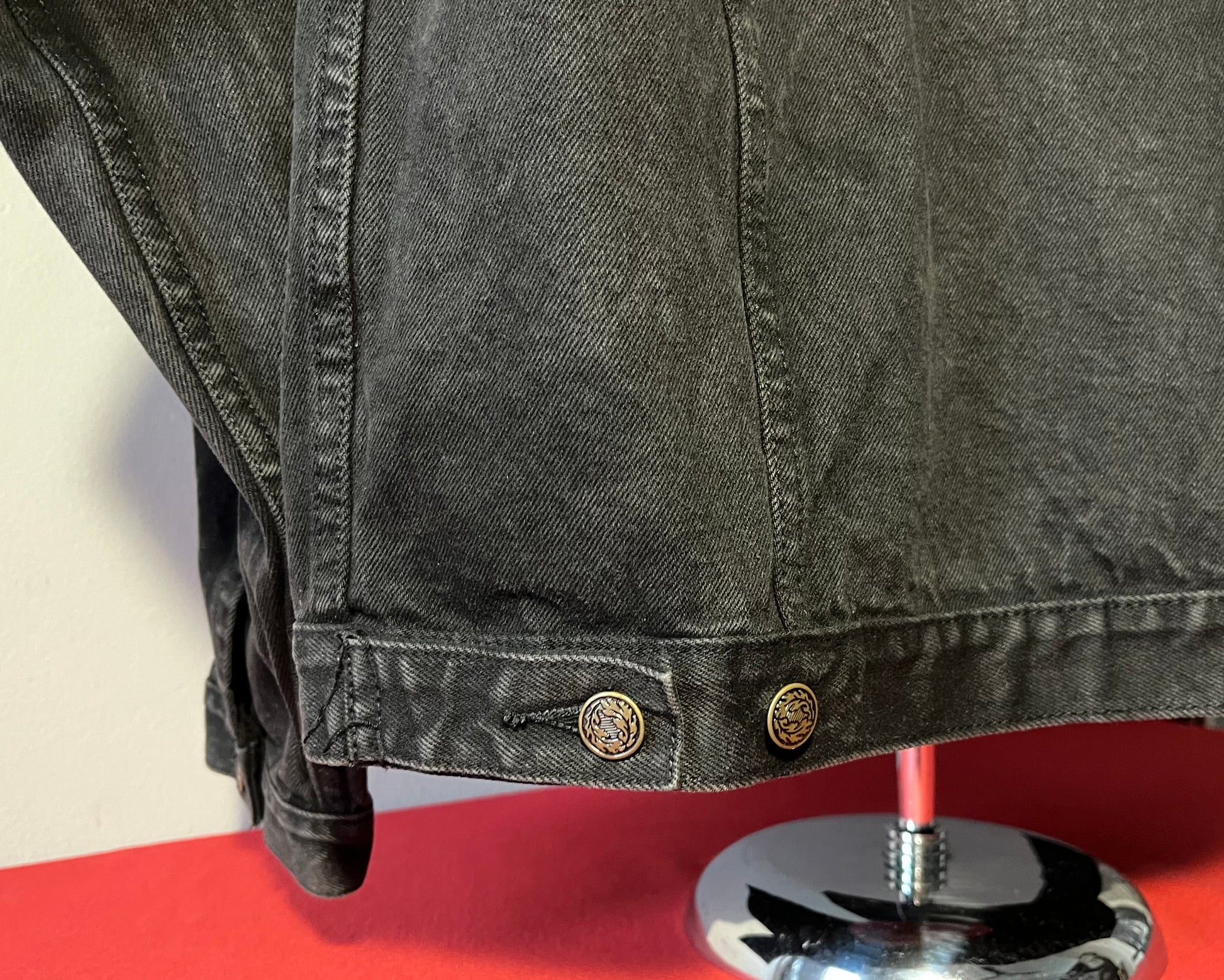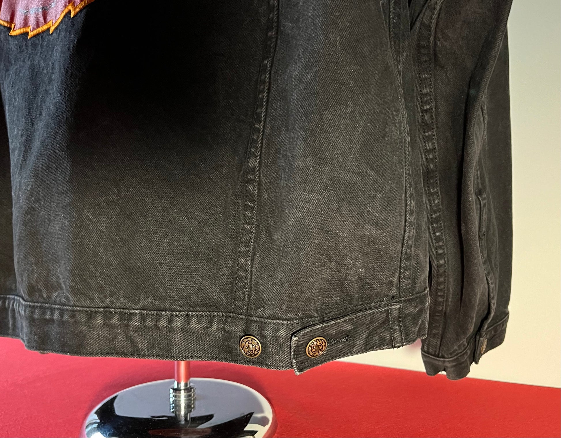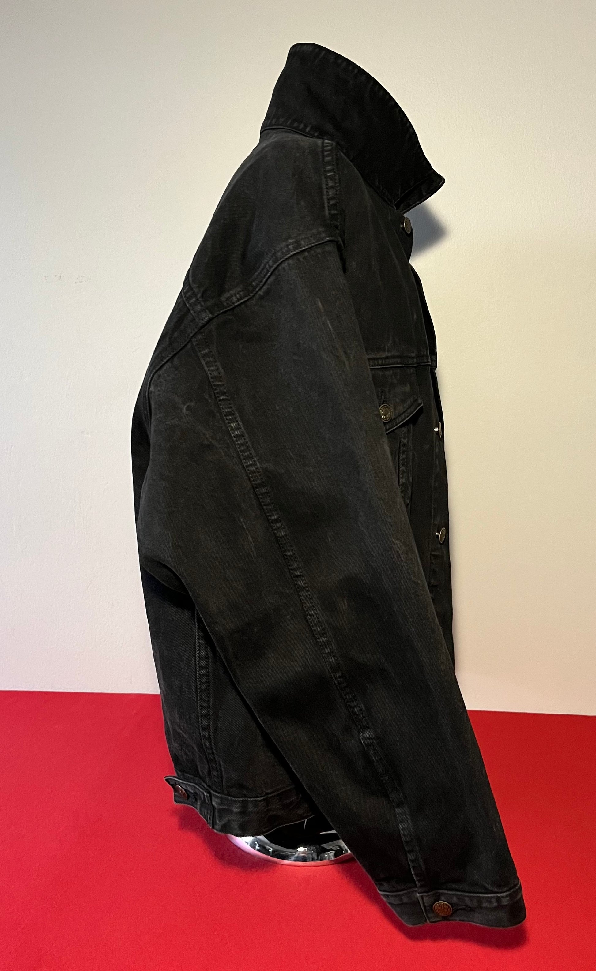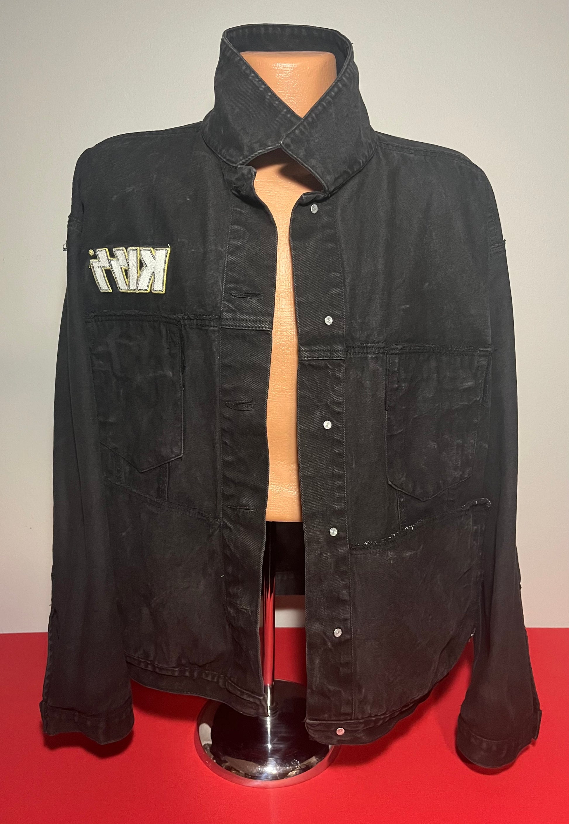 1990's / Kiss Catalog LTD / Black / Denim Jacket / Vintage / 100% Cotton with labels / Made by PRIME PIME Merchandise RN # 94576 Size XL / Dimensions 24" shoulder seam to shoulder seam / 24" arm / 26" long / 24" across chest