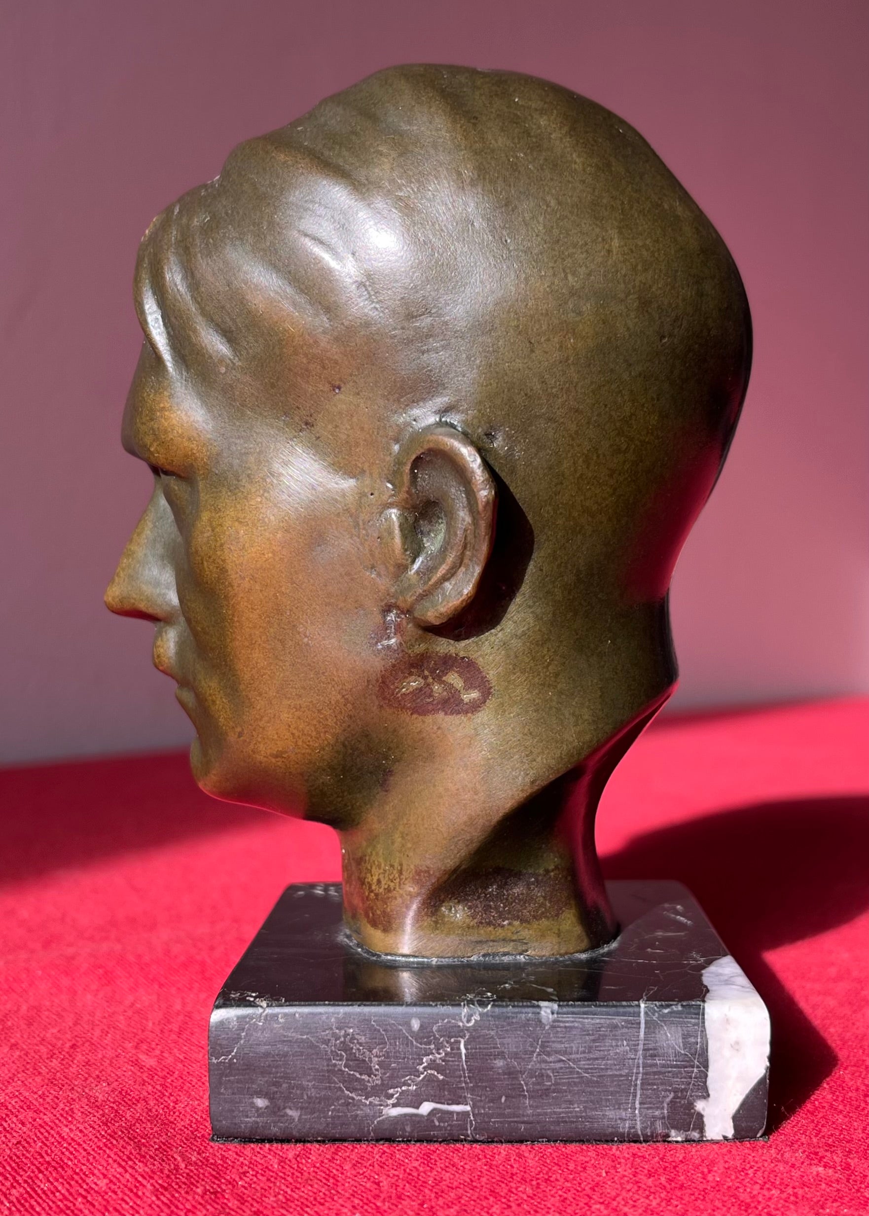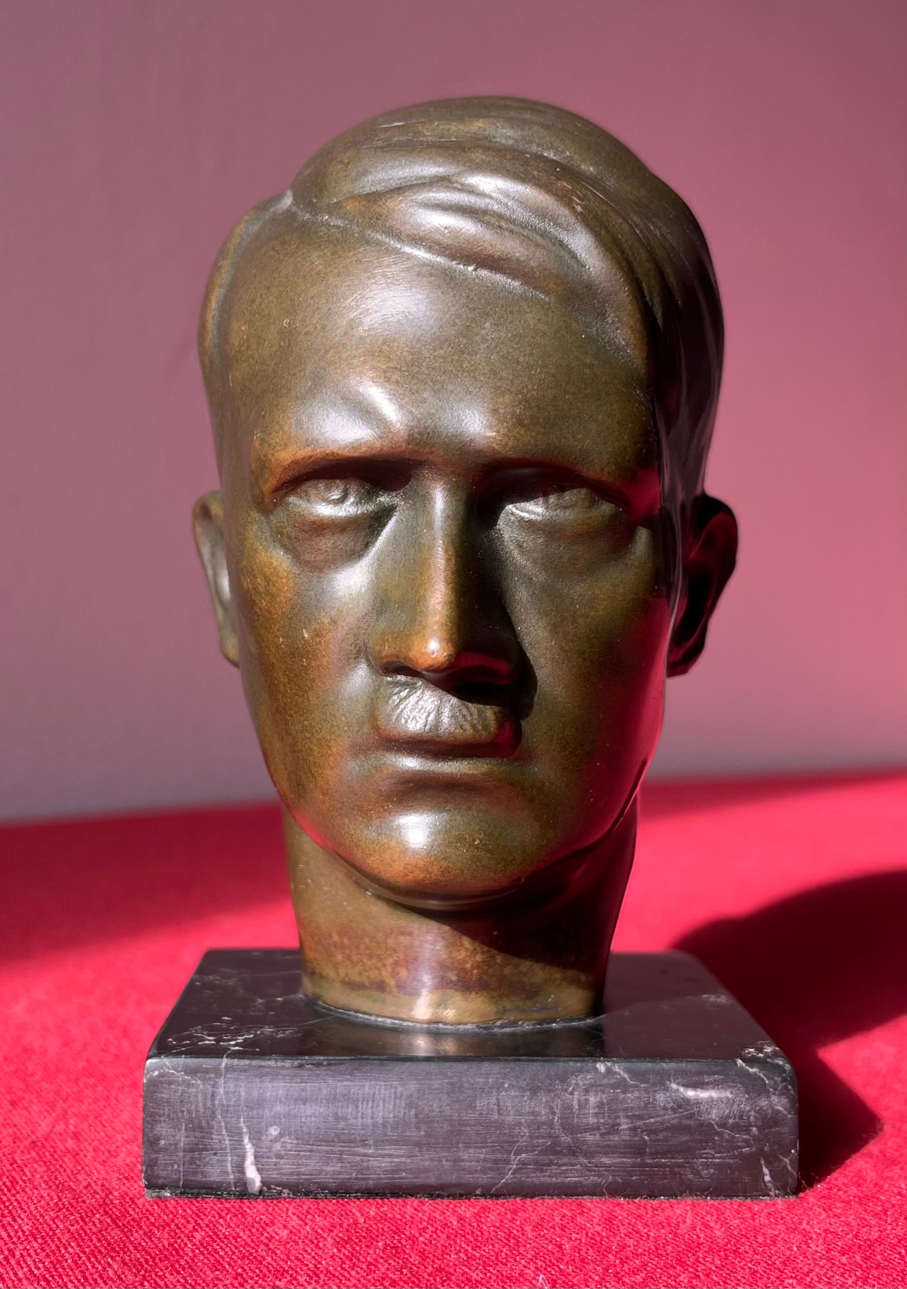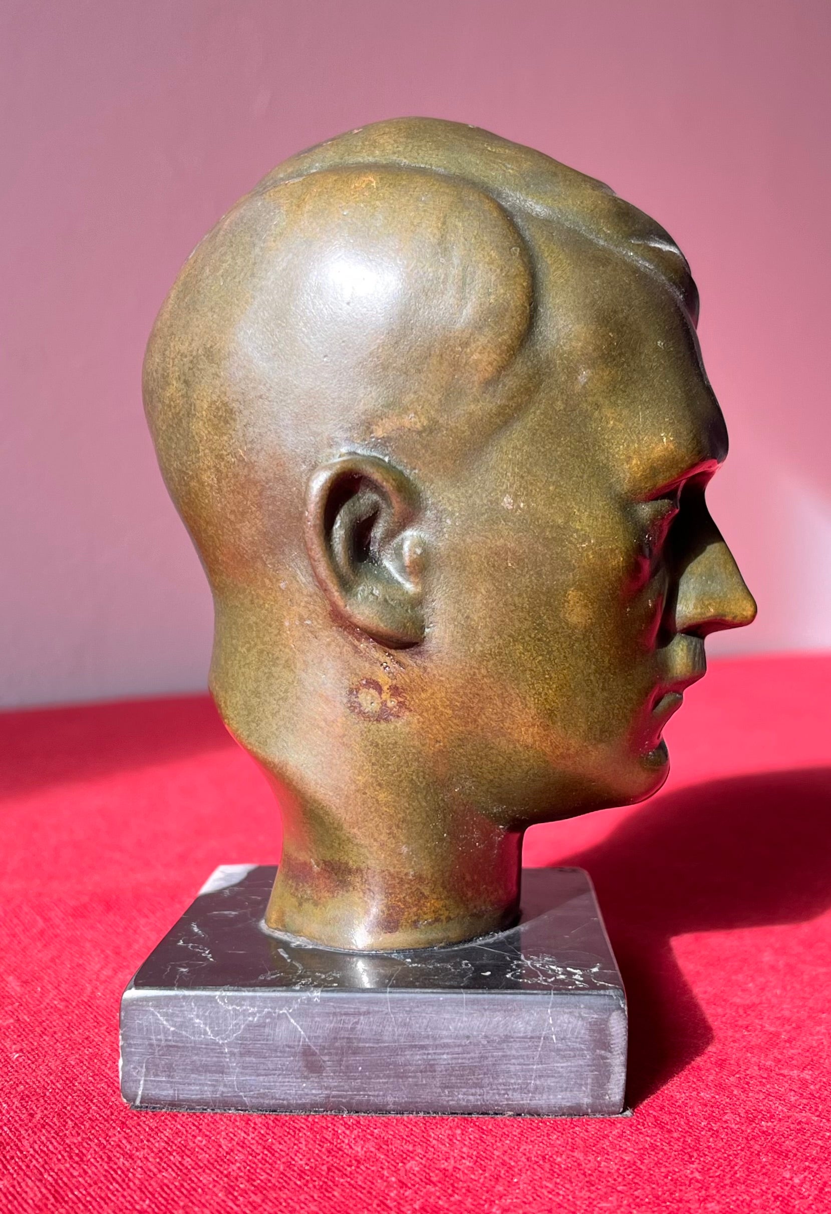 Original WW2 Era Adolf Hitler (Bronze) Desk Top Bust with Marble Base