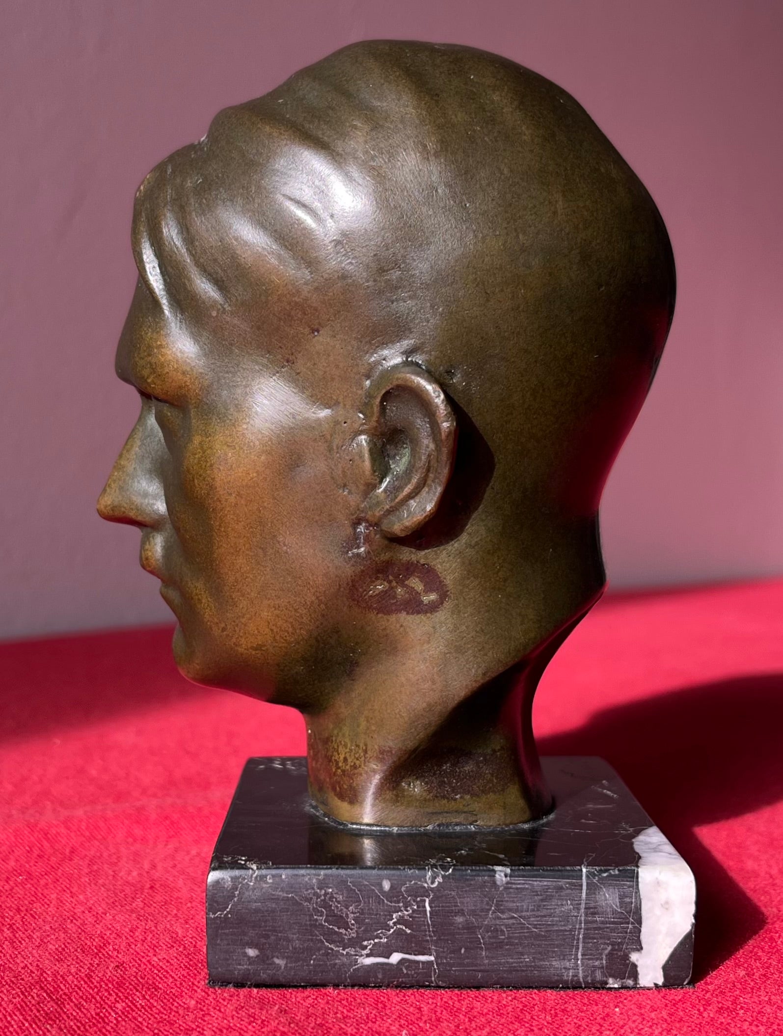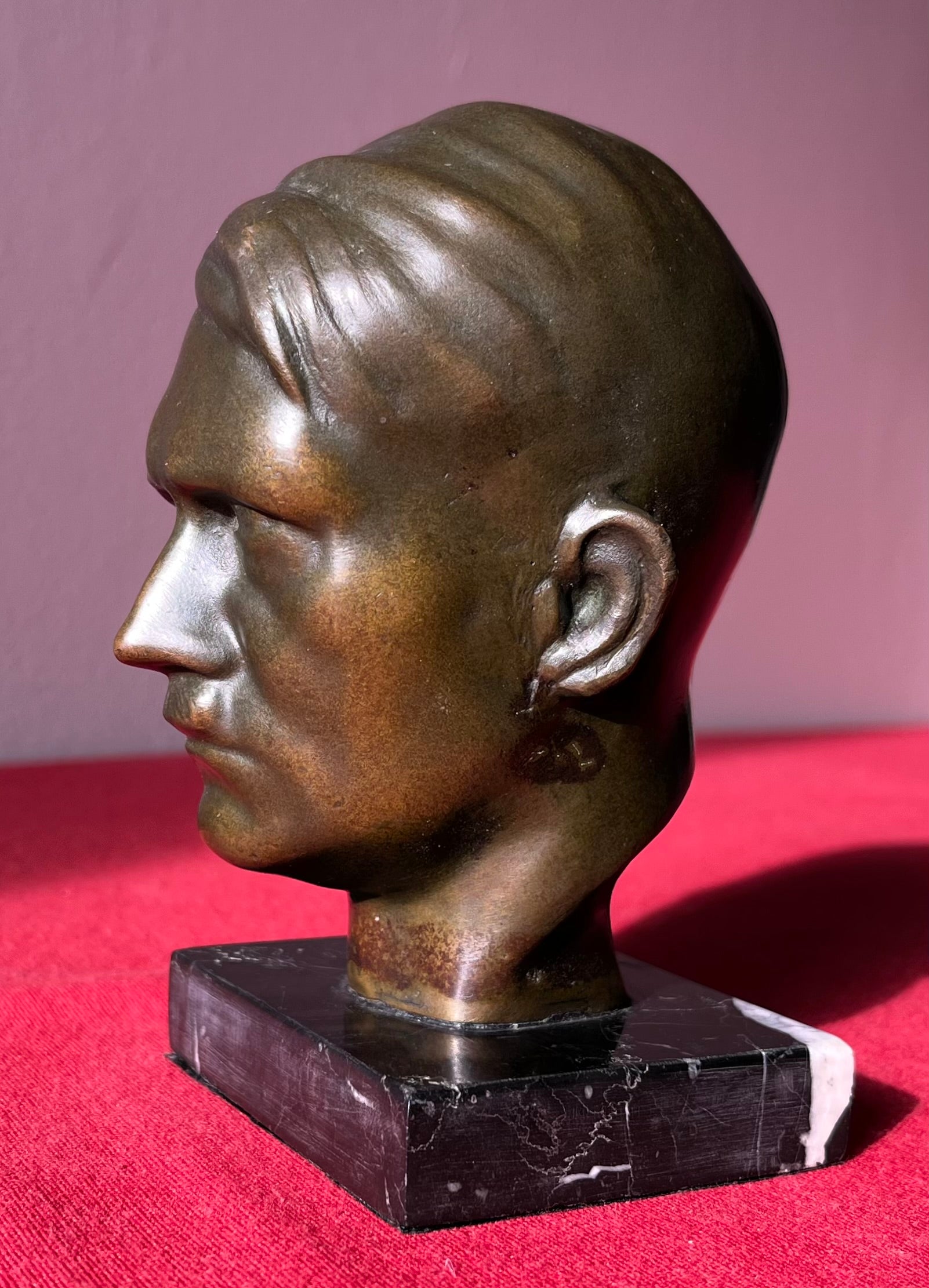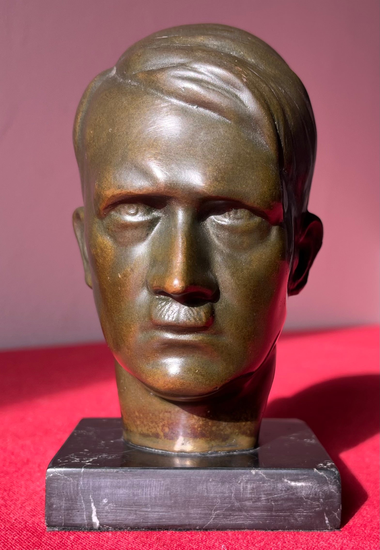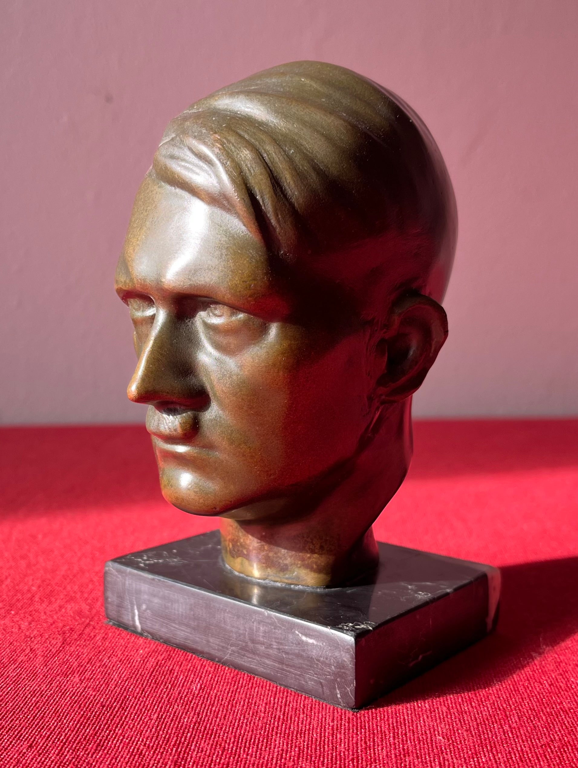 Original WW2 Era Adolf Hitler (Bronze) Desk Top Bust with Marble Base