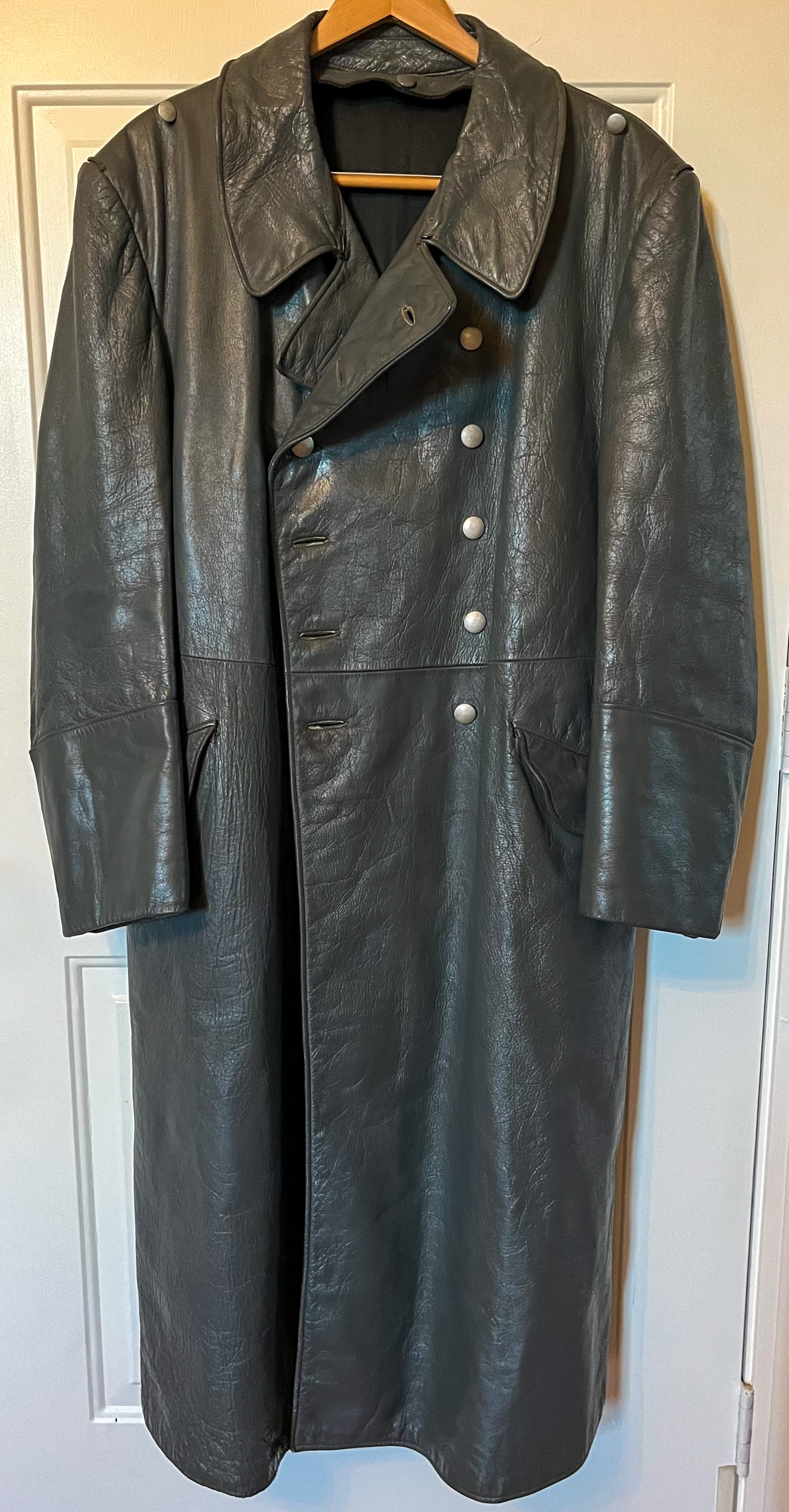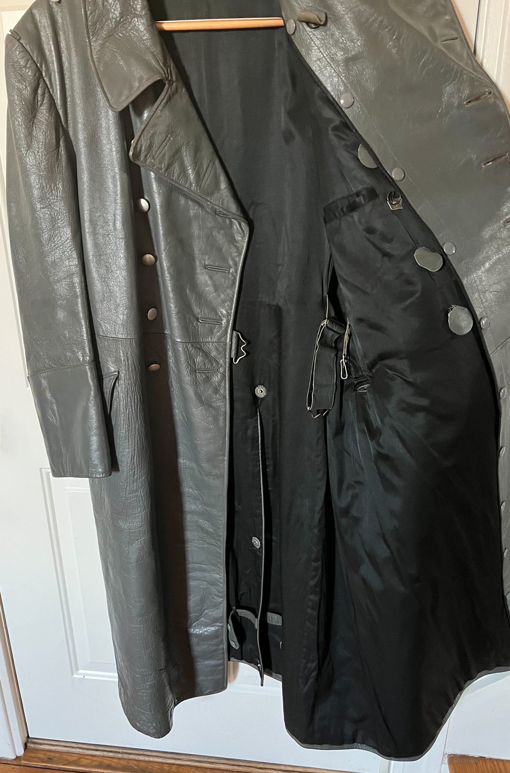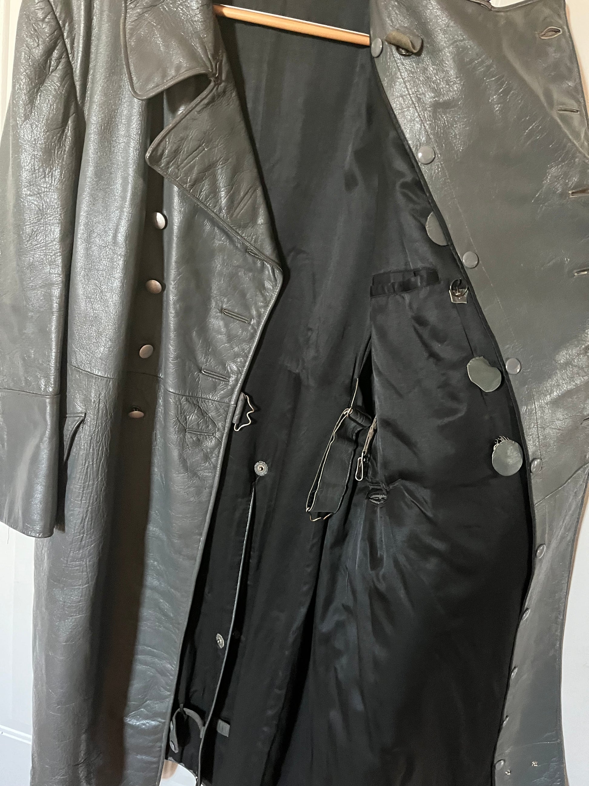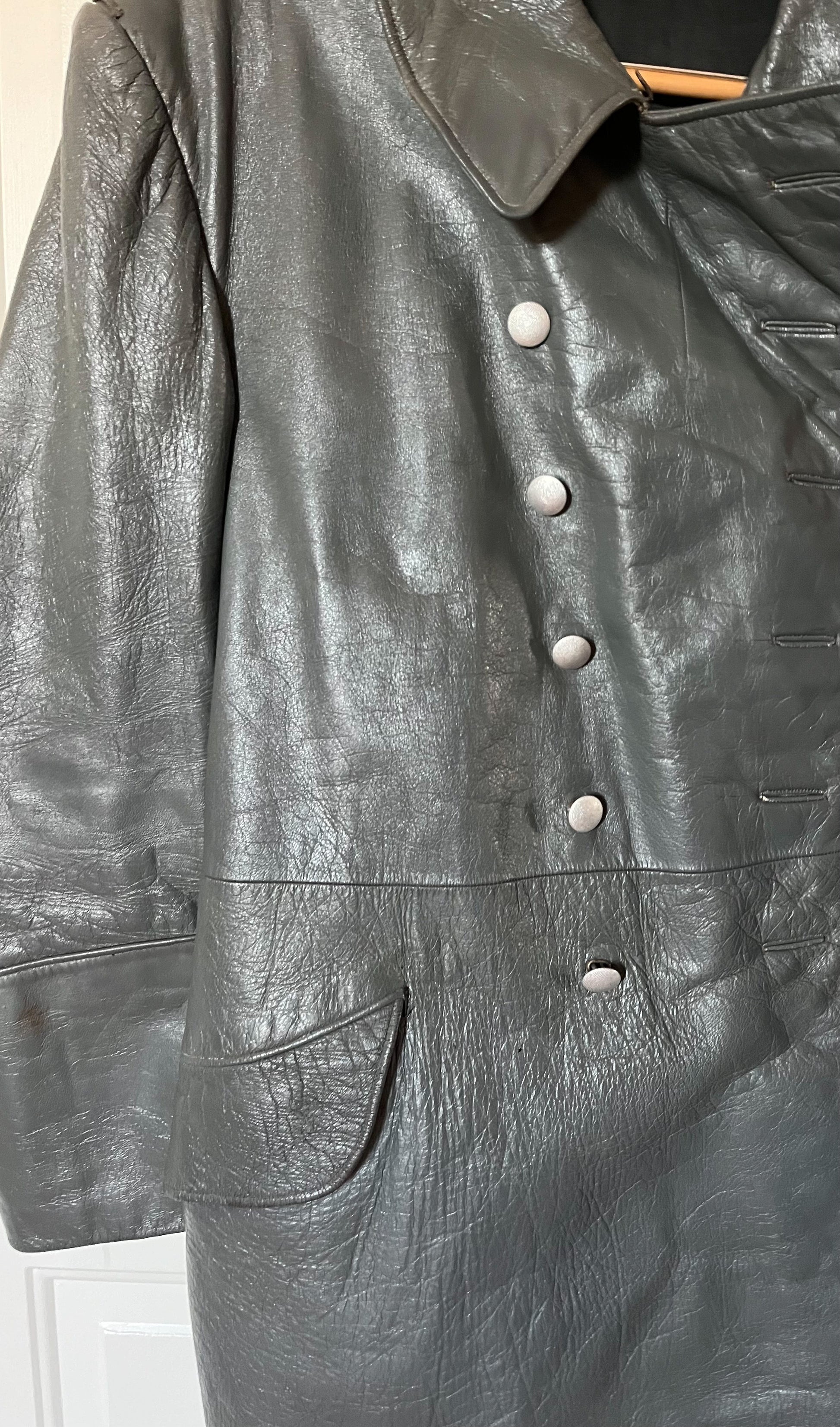 Authentic WW2 German Leather (Greatcoat)Trench Coat Complete with Hanger