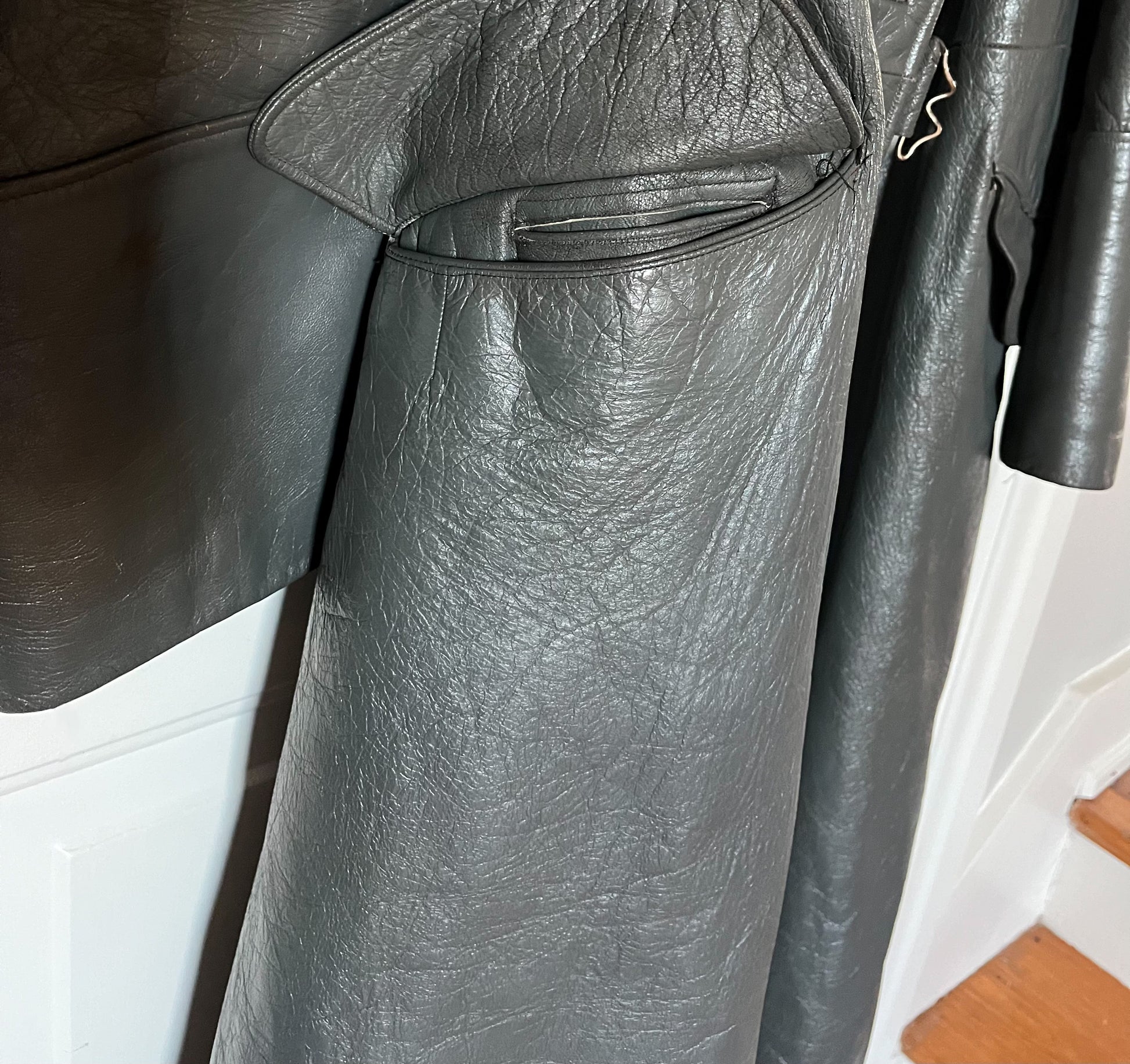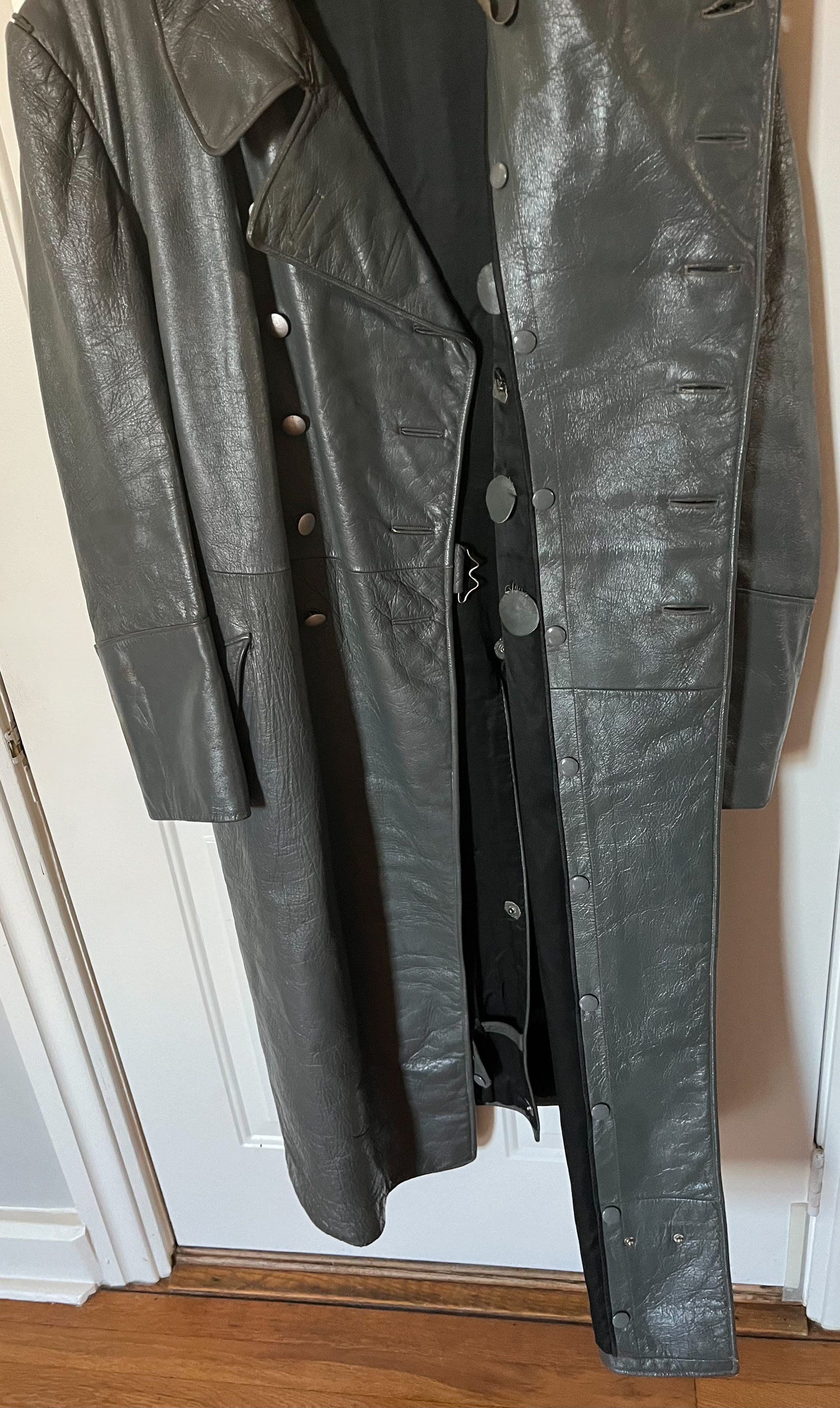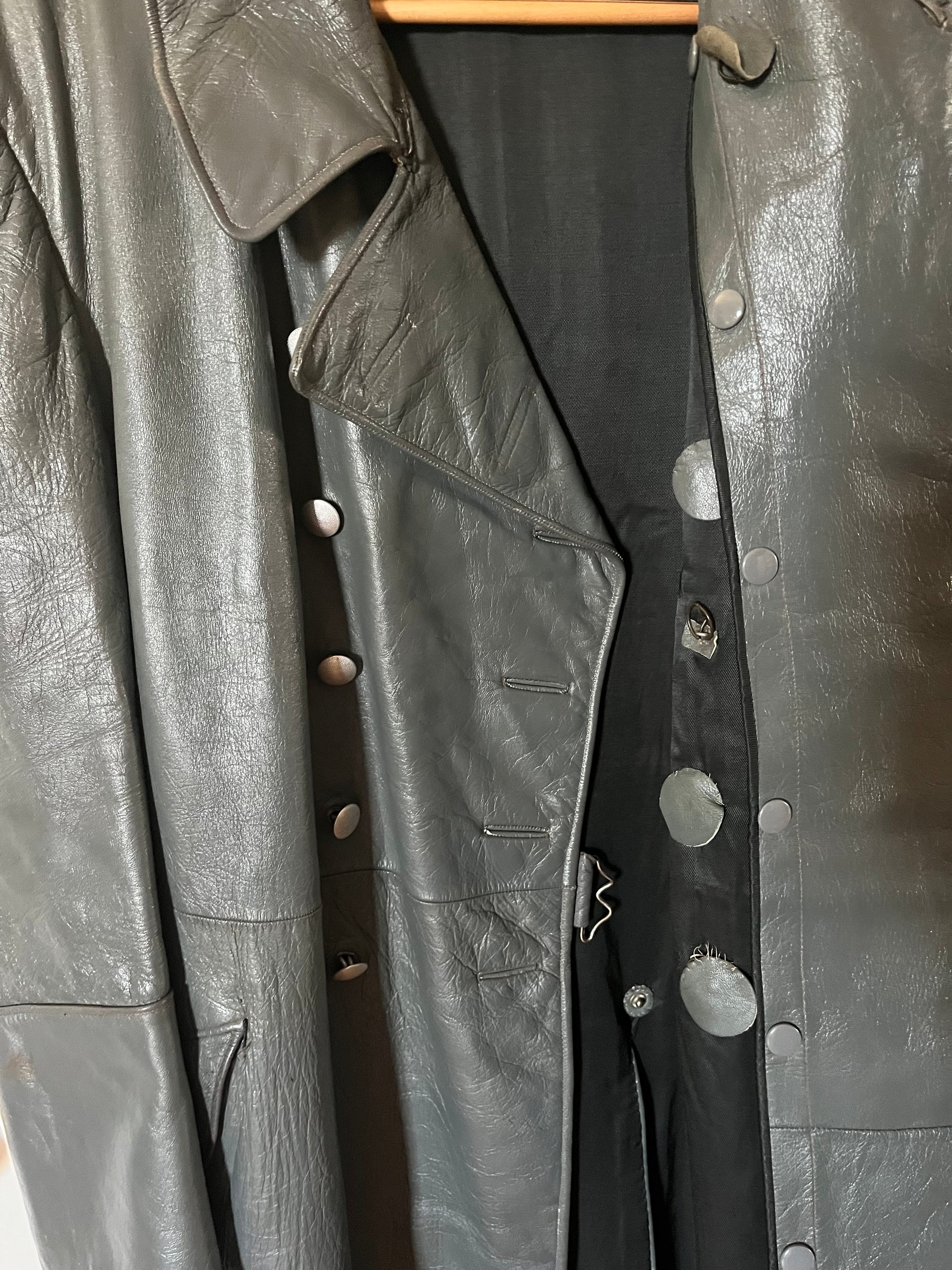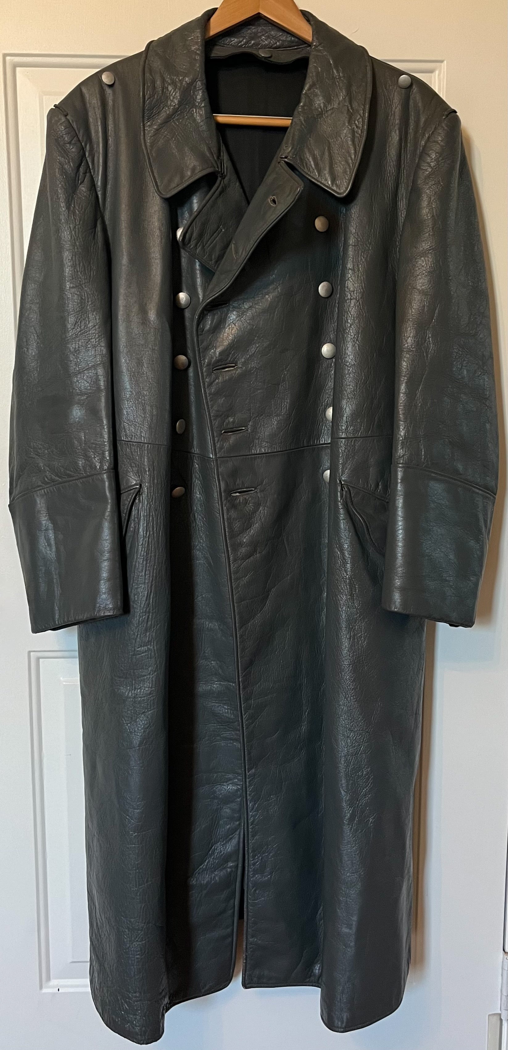 Authentic WW2 German Leather (Greatcoat)Trench Coat Complete with Hanger