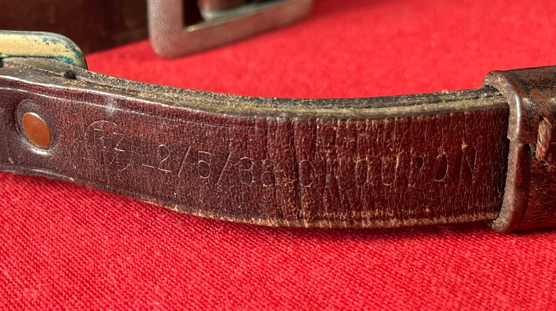 Cross strap maker marked - RZM L2 / 5 / 38 Croupon Belt maker marked D.R.G.M on inner buckle