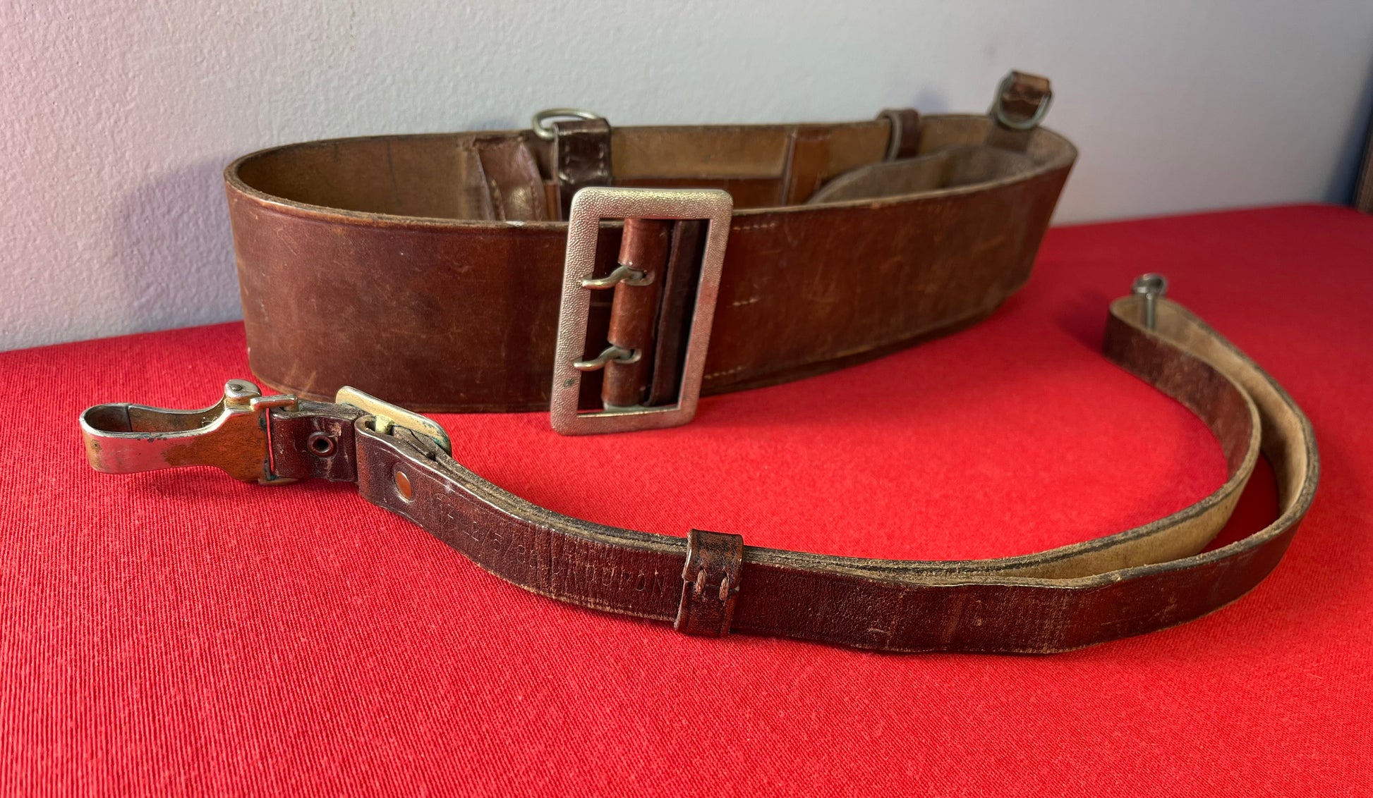 Rare... WW2 German Belt & Cross Strap / Worn by a German political leader in WW2 / Ring to hang the sword is present
