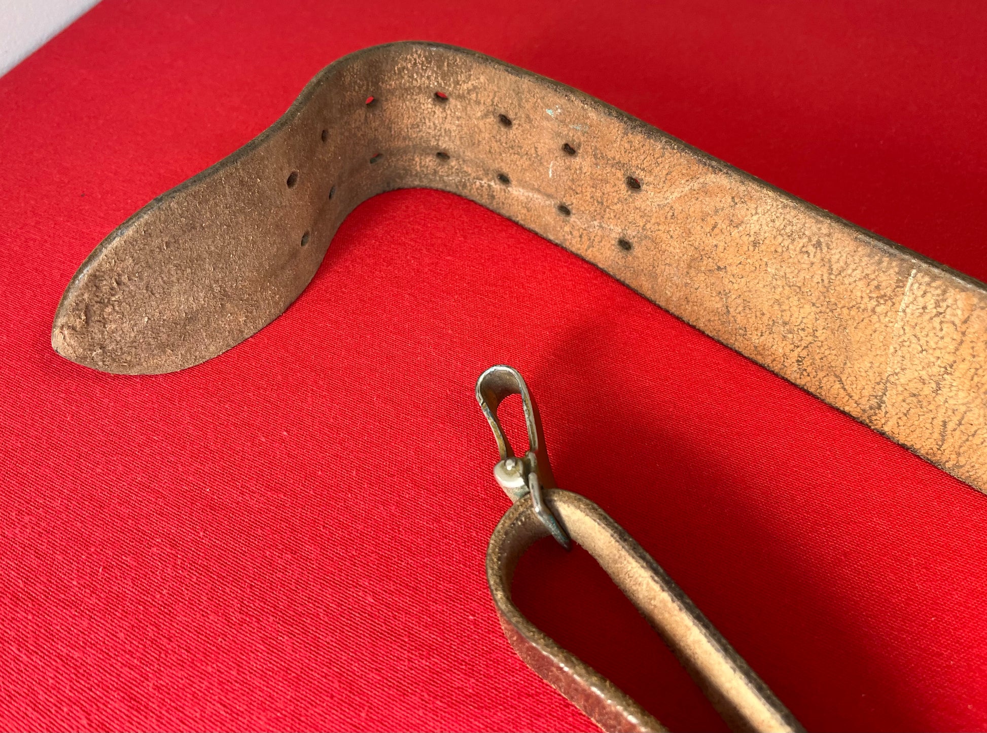 General wear with age / There are some small spots of what I determine to be paint on the leather belt / Belt has some loose stitching on the one leather support (back inside) of belt / Still Functional / Pictures provided for overall condition and quality / Please inquire with any questions you might have