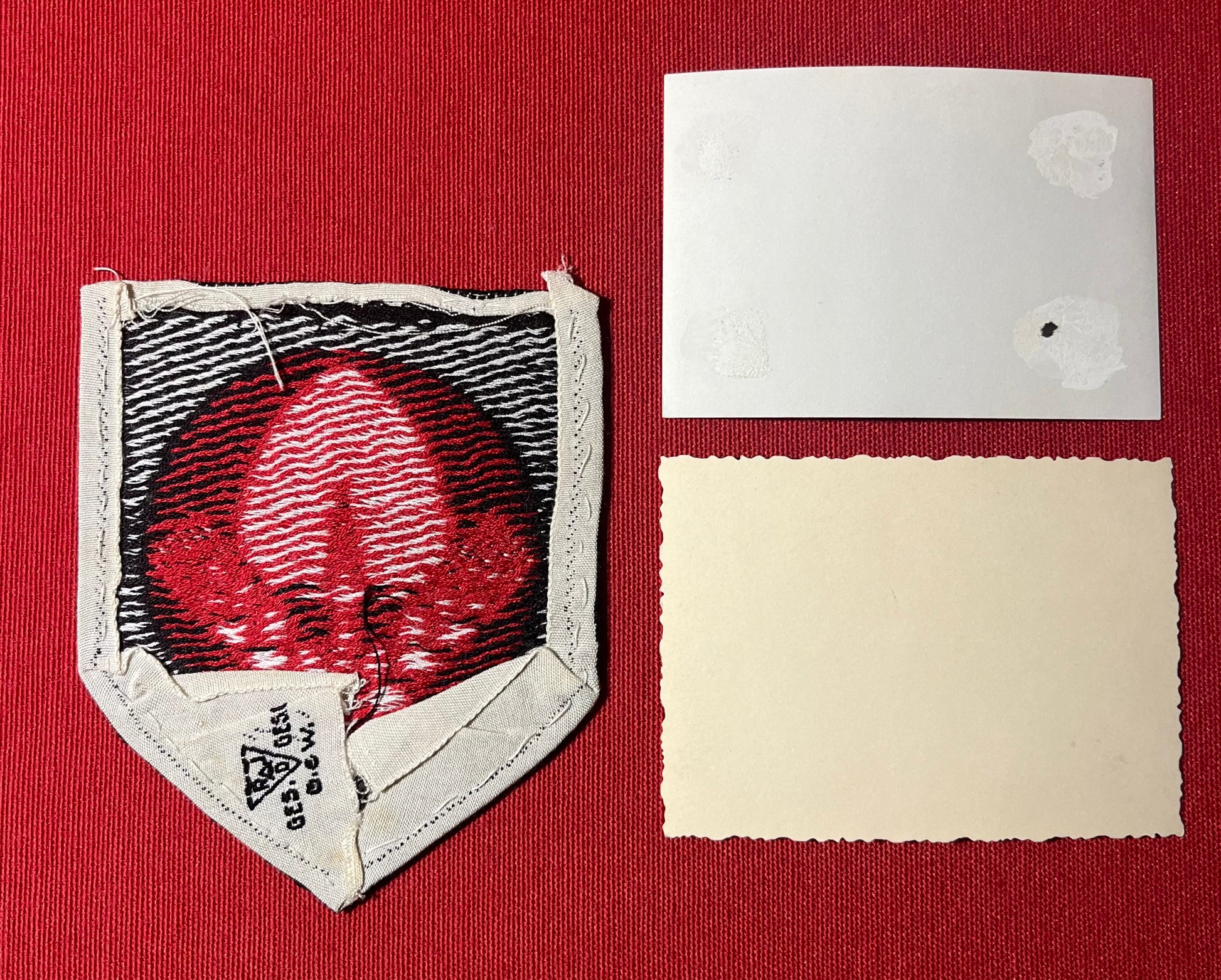 2 Photos / 1 Stick pin - maker marked / 1 Shoulder sleeve patch (size 3 2/8 inches) maker marked / Authentic WW2 era