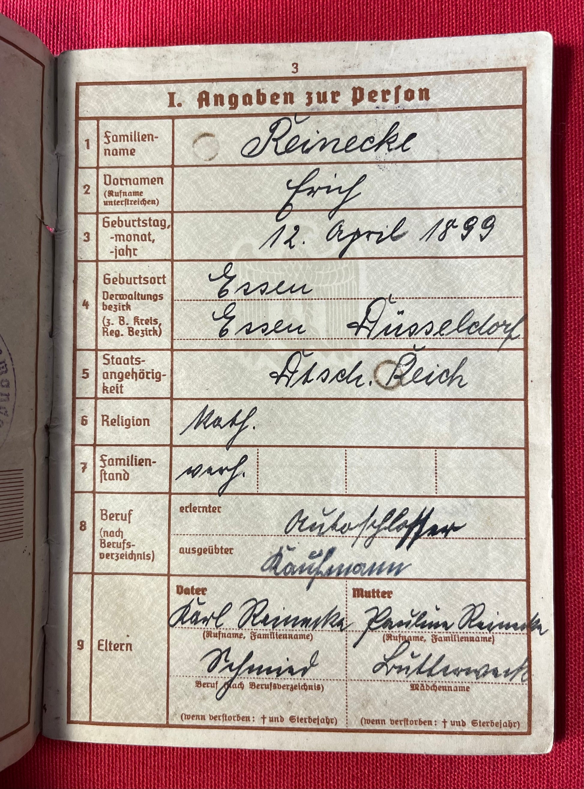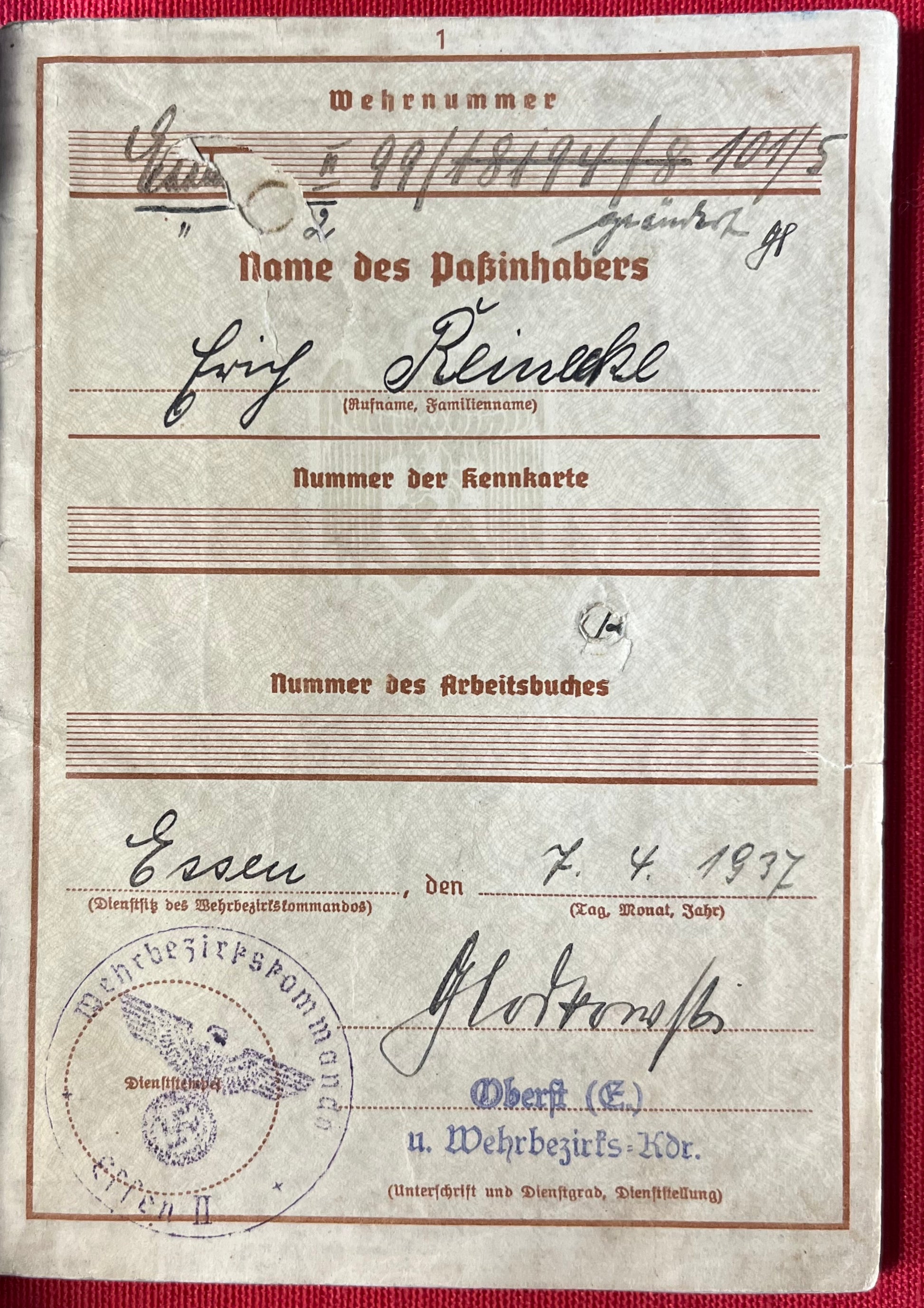 Authentic WW2 German WEHRPAK (Wehrpass) & NSKK (Transportation Workers) Dagger - Erich Reinecke “Bus Driver”of French POWs - During the Battle of France, Flanders & Occupied France Grouping