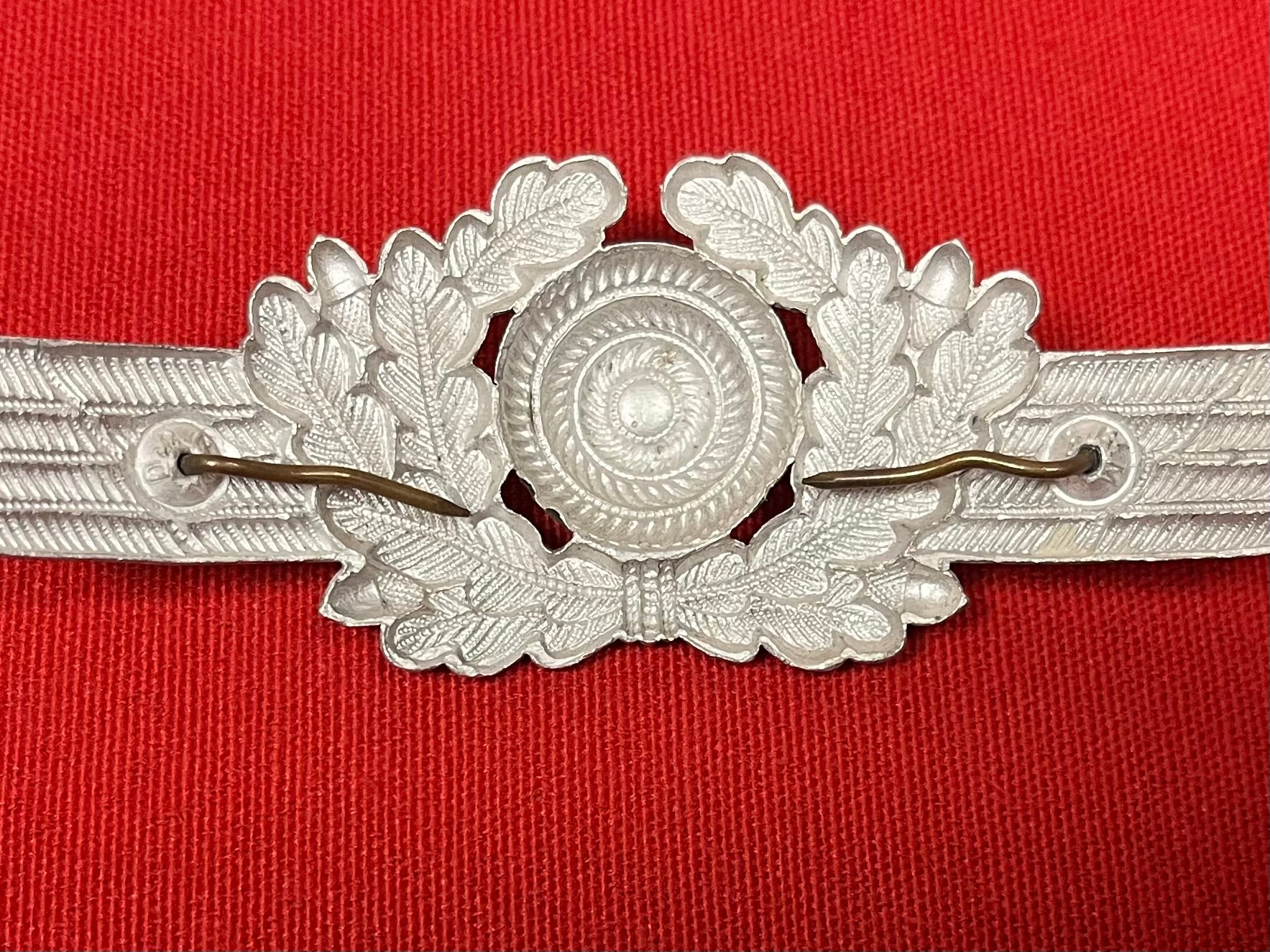 Authentic / WW2 German / Luftwaffe “Airforce” visor cap badge (lower section) for replacement or display / Previously issued / Both prongs still attached / Stamped D.R.G.M / Size 5 6/8 inches / General wear with use and age