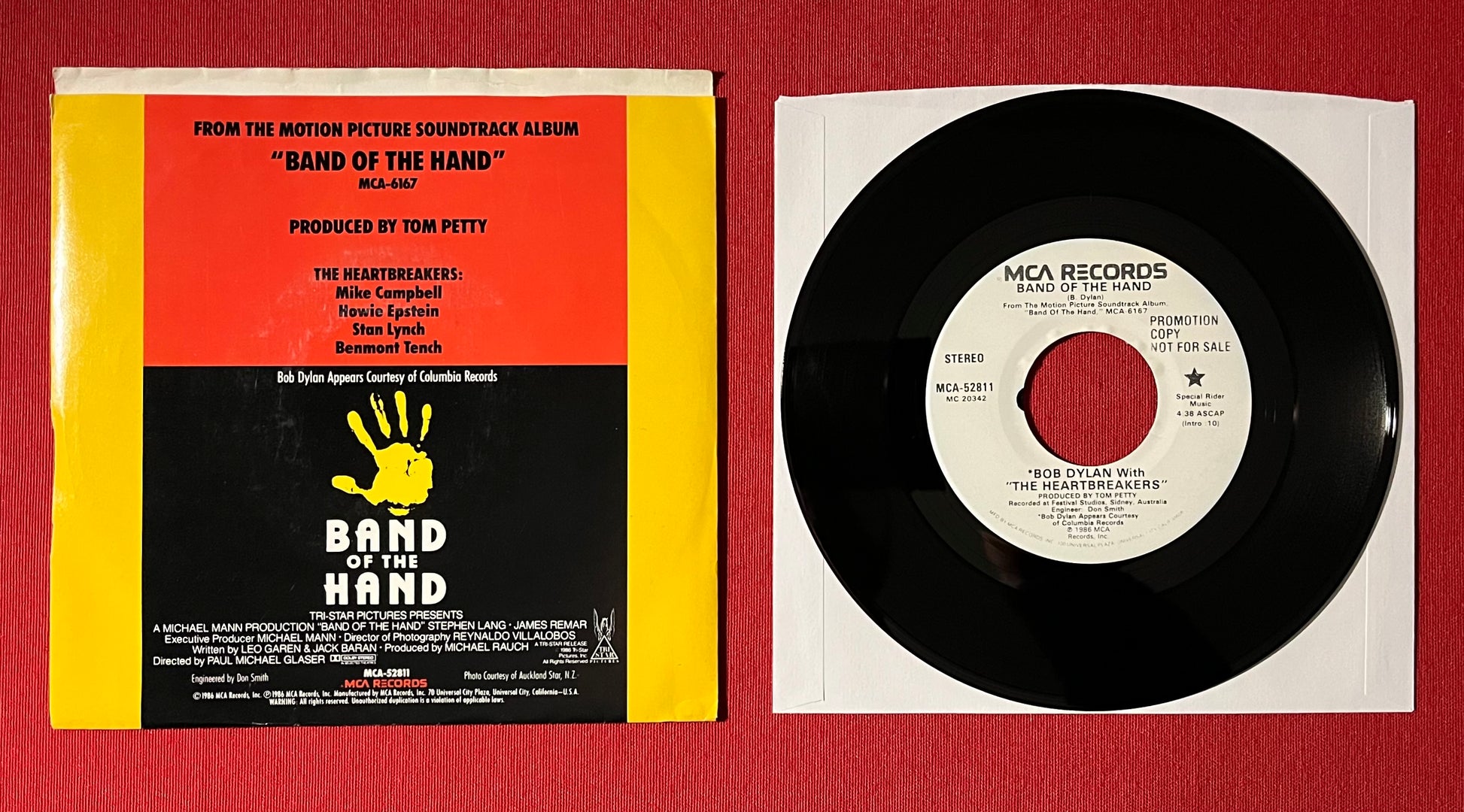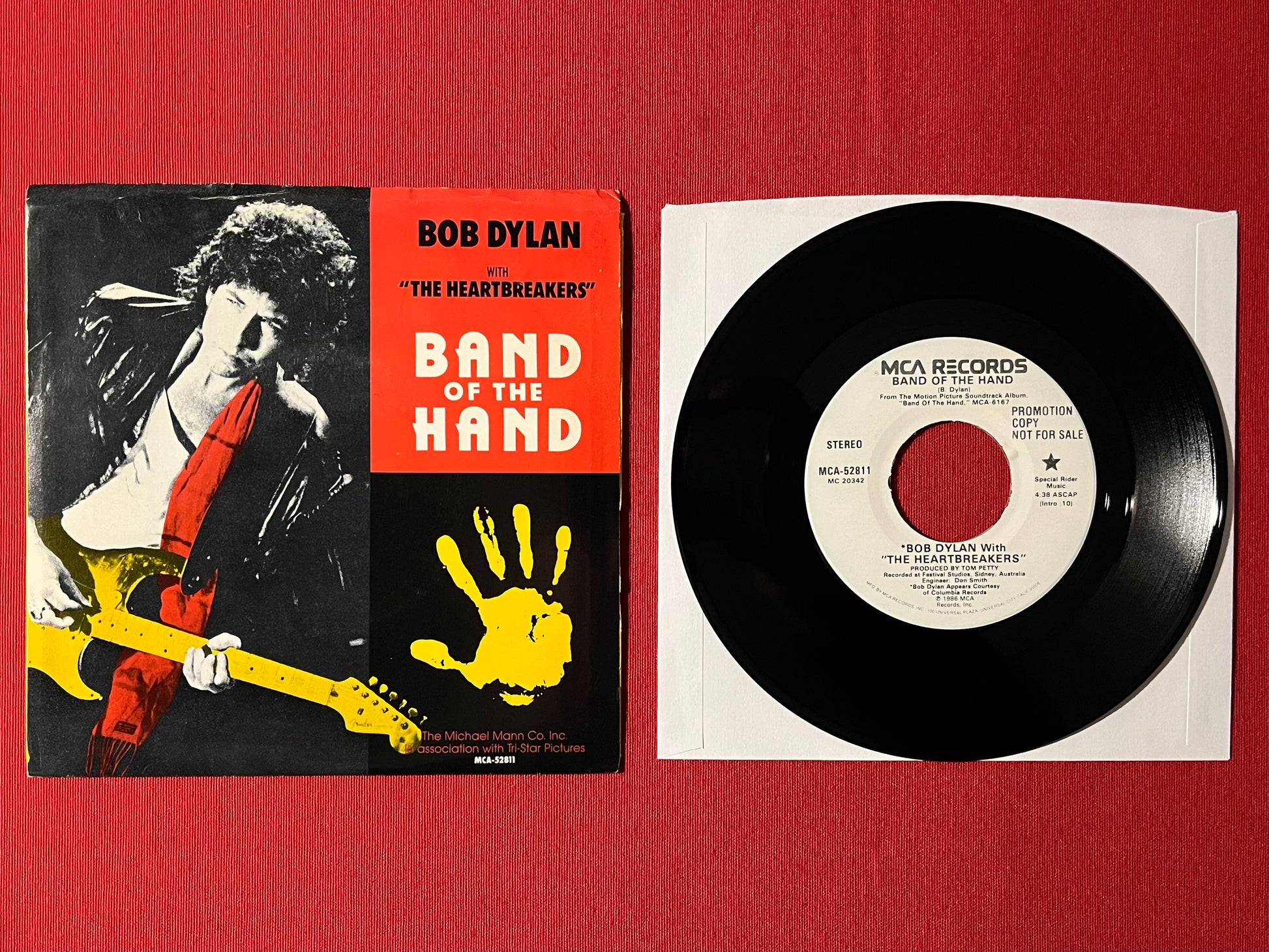 WHITE LABEL / PROMO COPY / 45 RPM / 7 INCH (SCARCE) IN PICTURE SLEEVE / BOB DYLAN WITH THE HEARTBREAKERS (TOM PETTY RELATED) BAND OF THE HAND / RELEASED ON MCA RECORDS - 1986 OG / VG+ OR BETTER