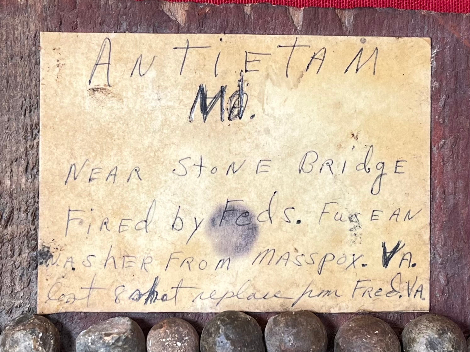 “Eight of the total missing Antietam Battlefield case shot balls were replaced from ones recovered from Fred. VA”
