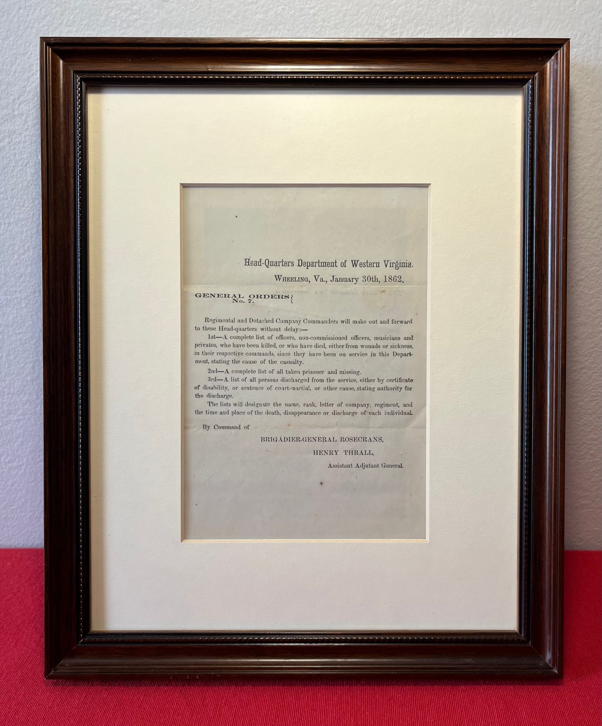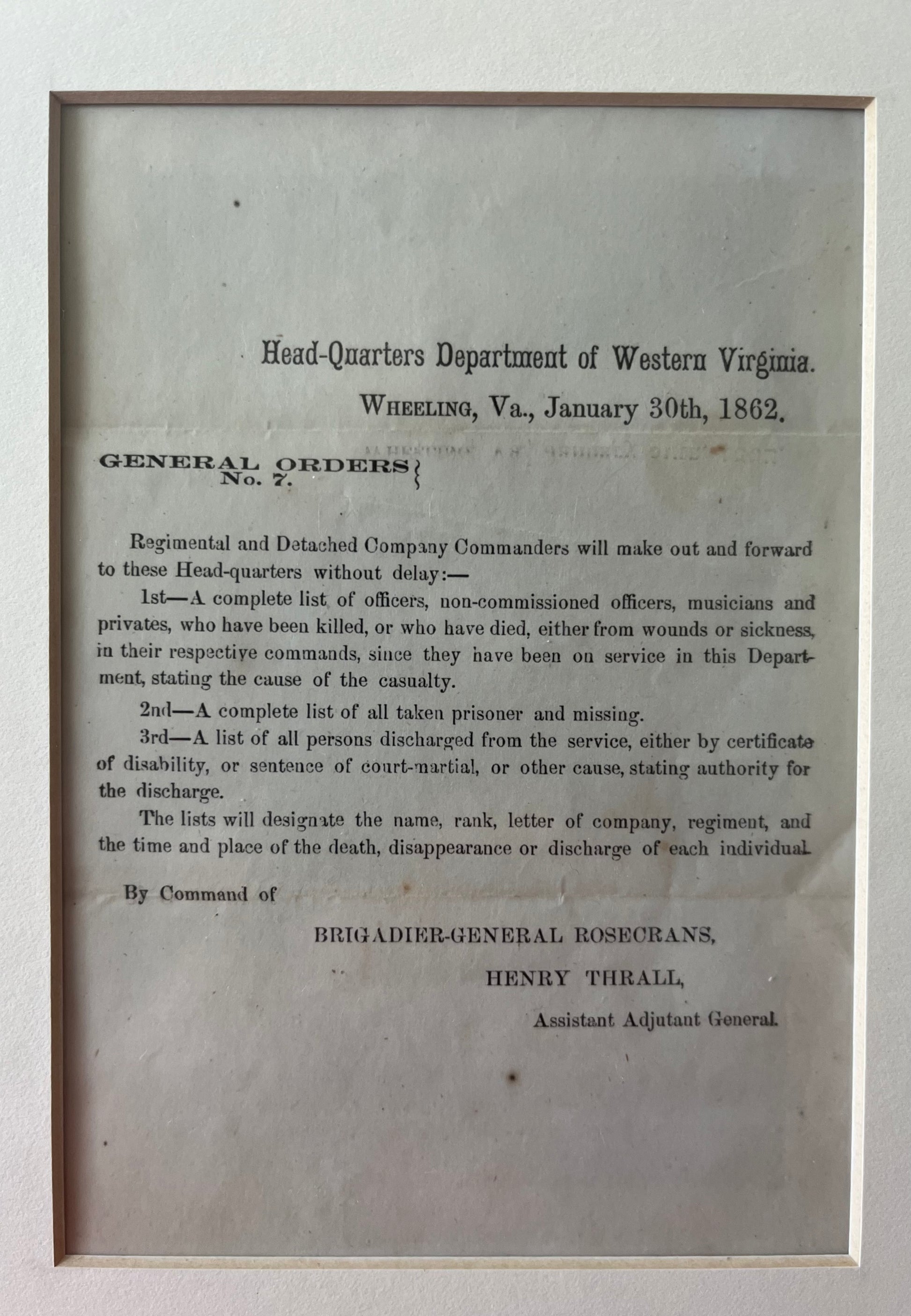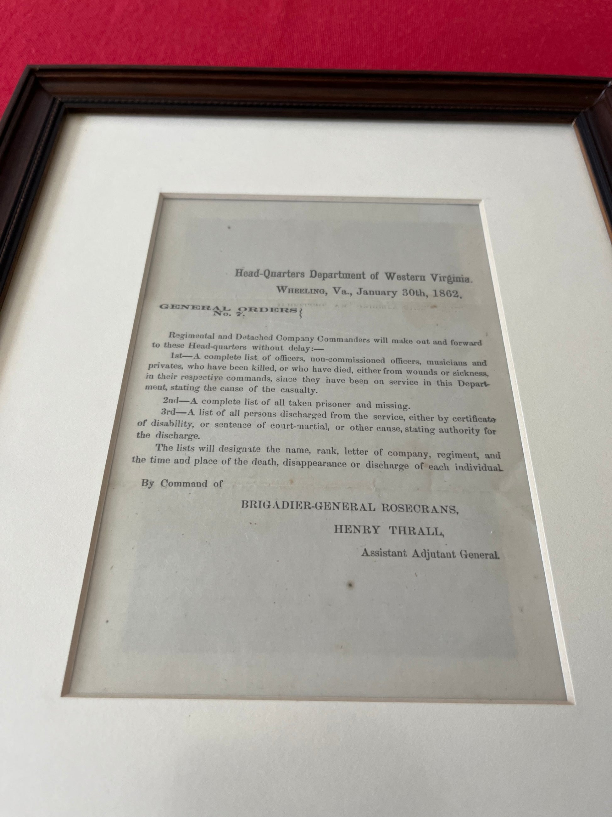 Civil War / General Orders Document / Gen. William Rosecrans / Stones River TN