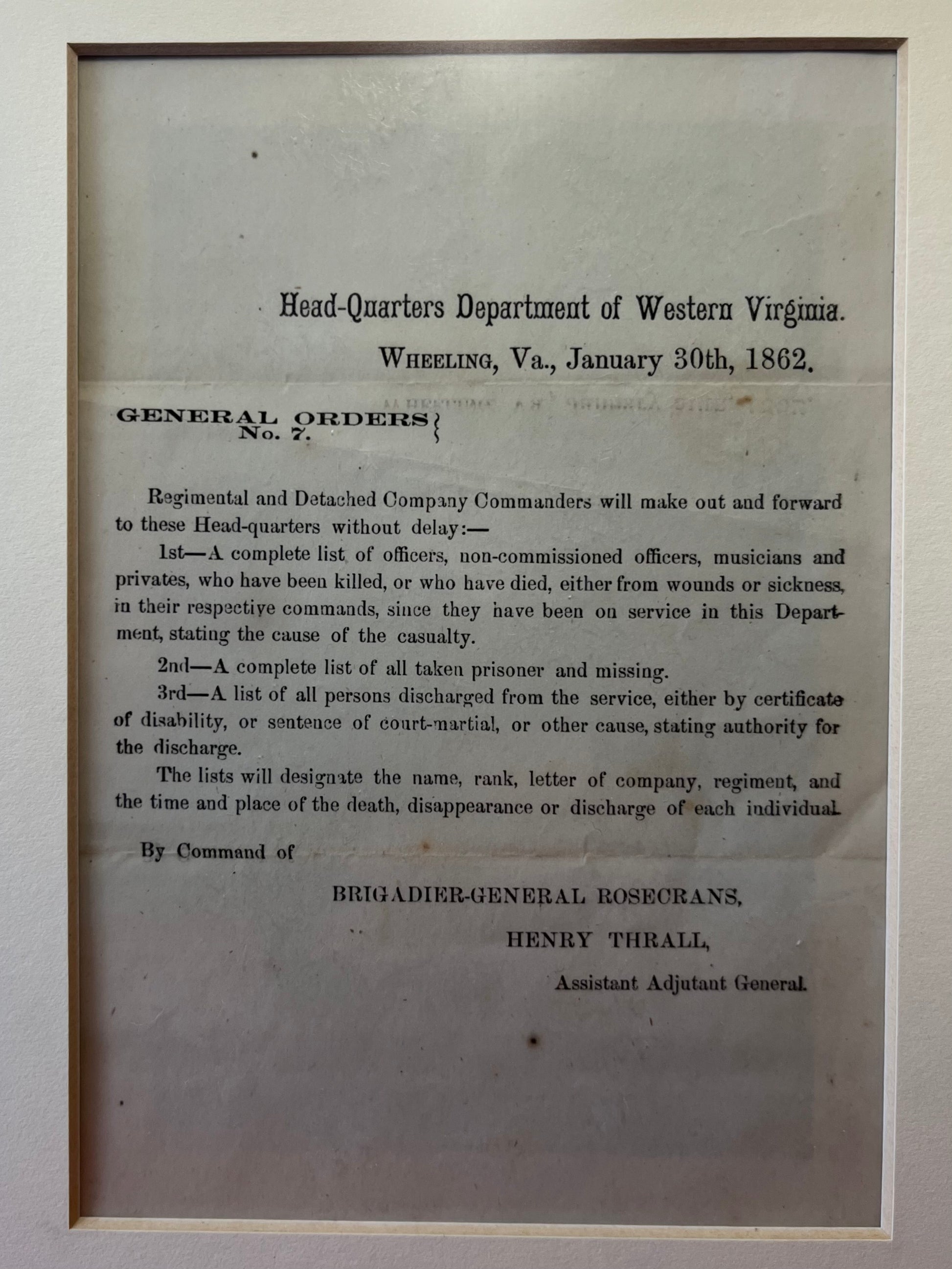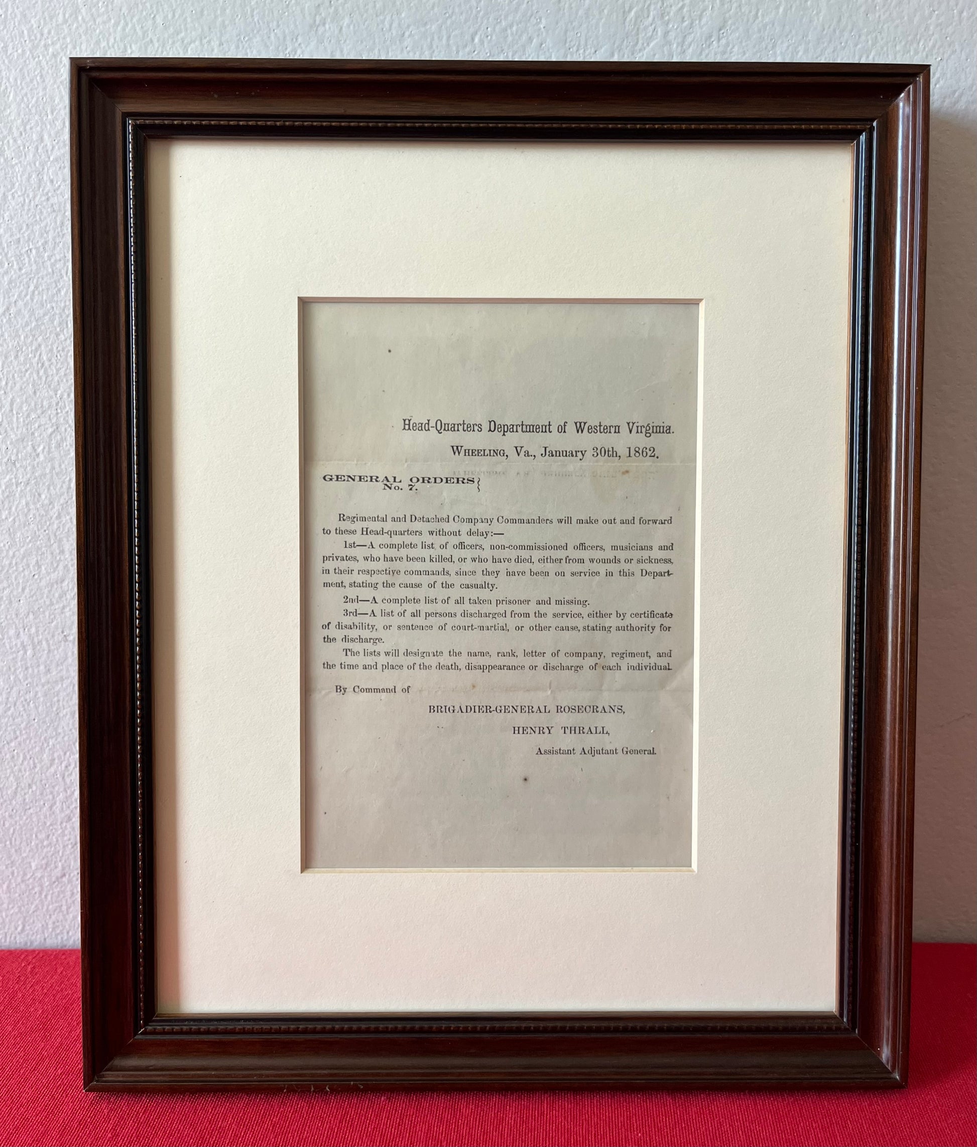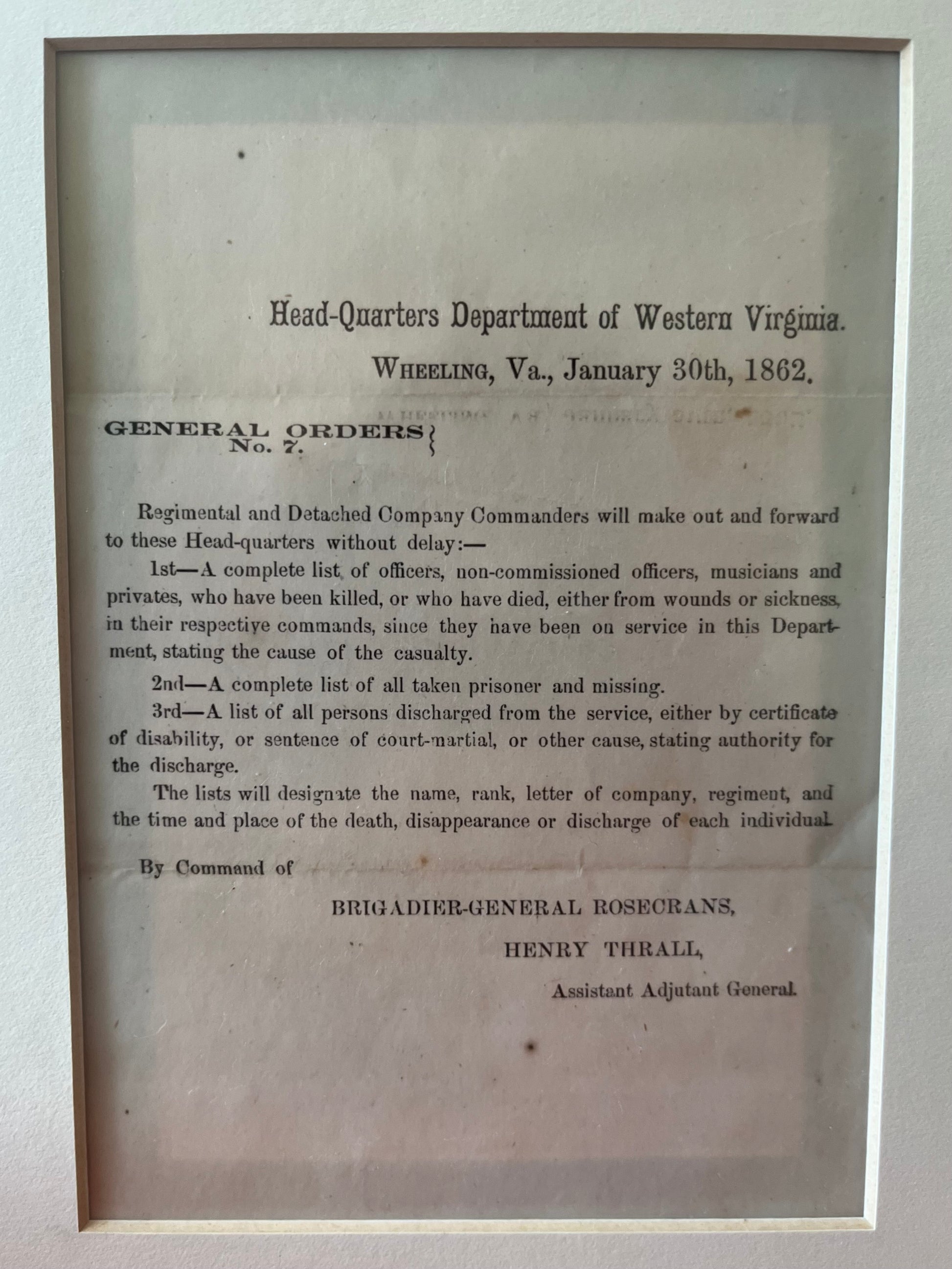 Civil War / General Orders Document / Gen. William Rosecrans / Stones River TN