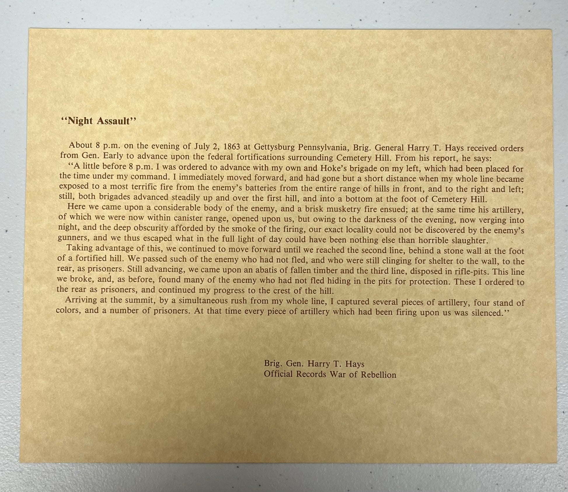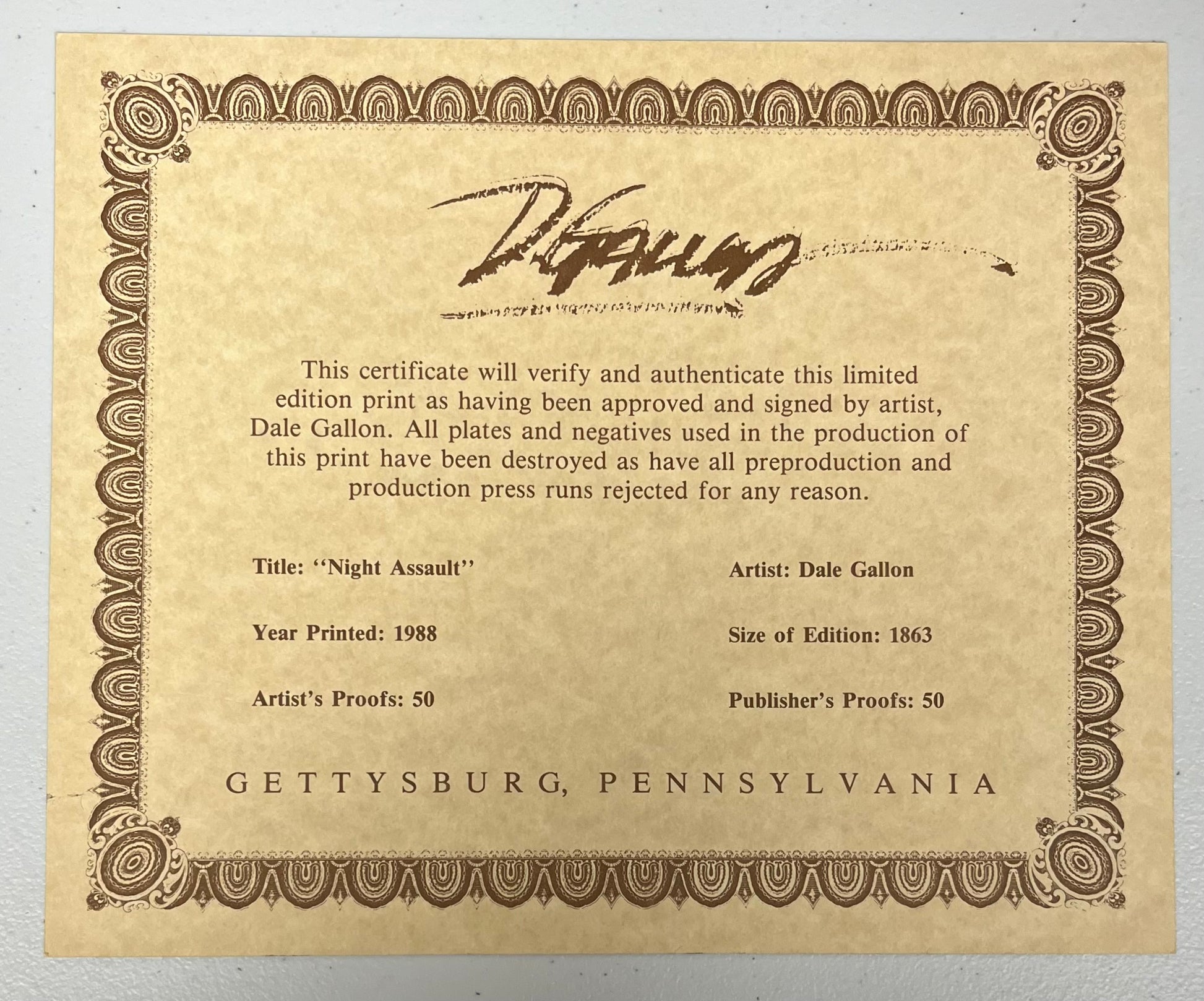 Purchased in Gettysburg, Pa (Label shown on reverse side of framed print)