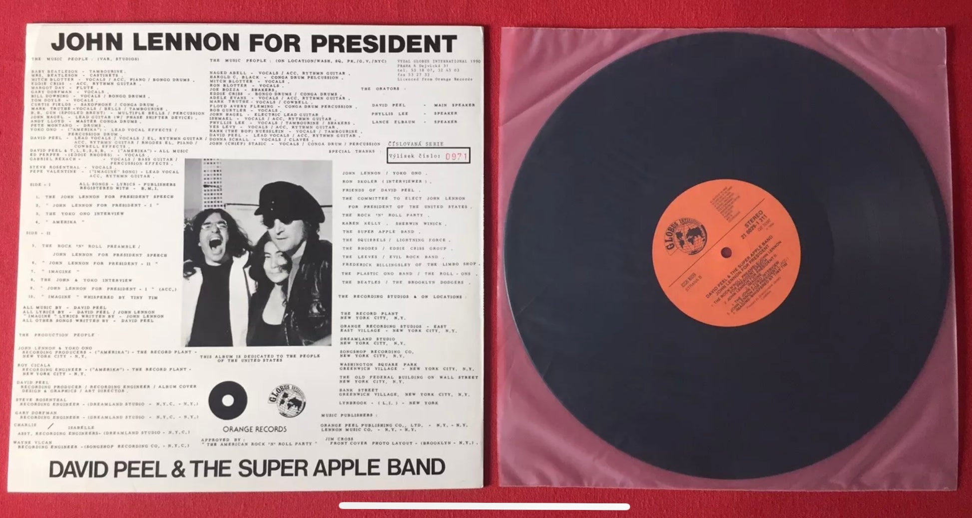 David Peel & The Super Apple Band / John Lennon for President / Czechoslovakia Pressing - Beatles