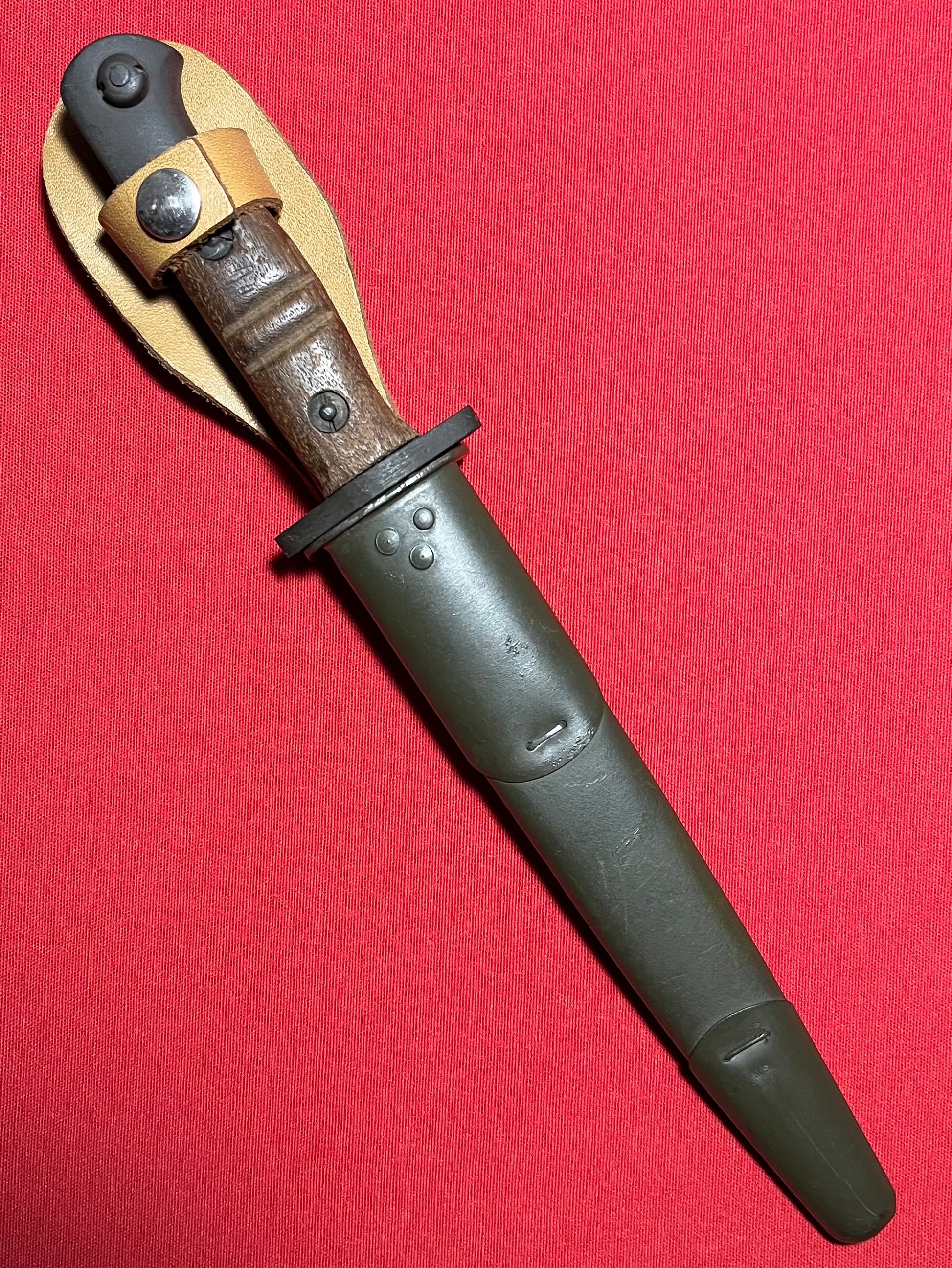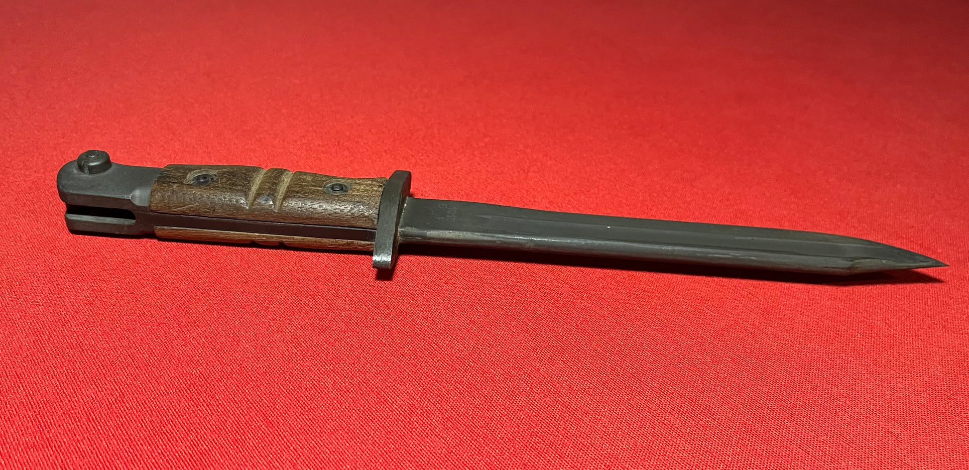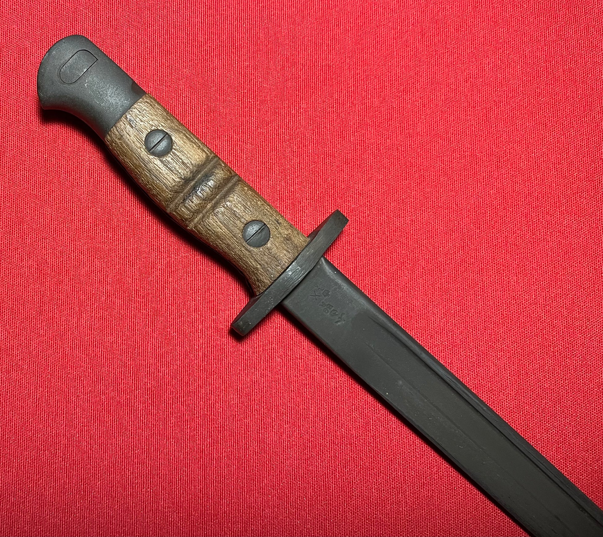 Original British WWI P1913 Enfield Bayonet by Remington with Scabbard / Cutdown for French-Indochina War (French Army Use)