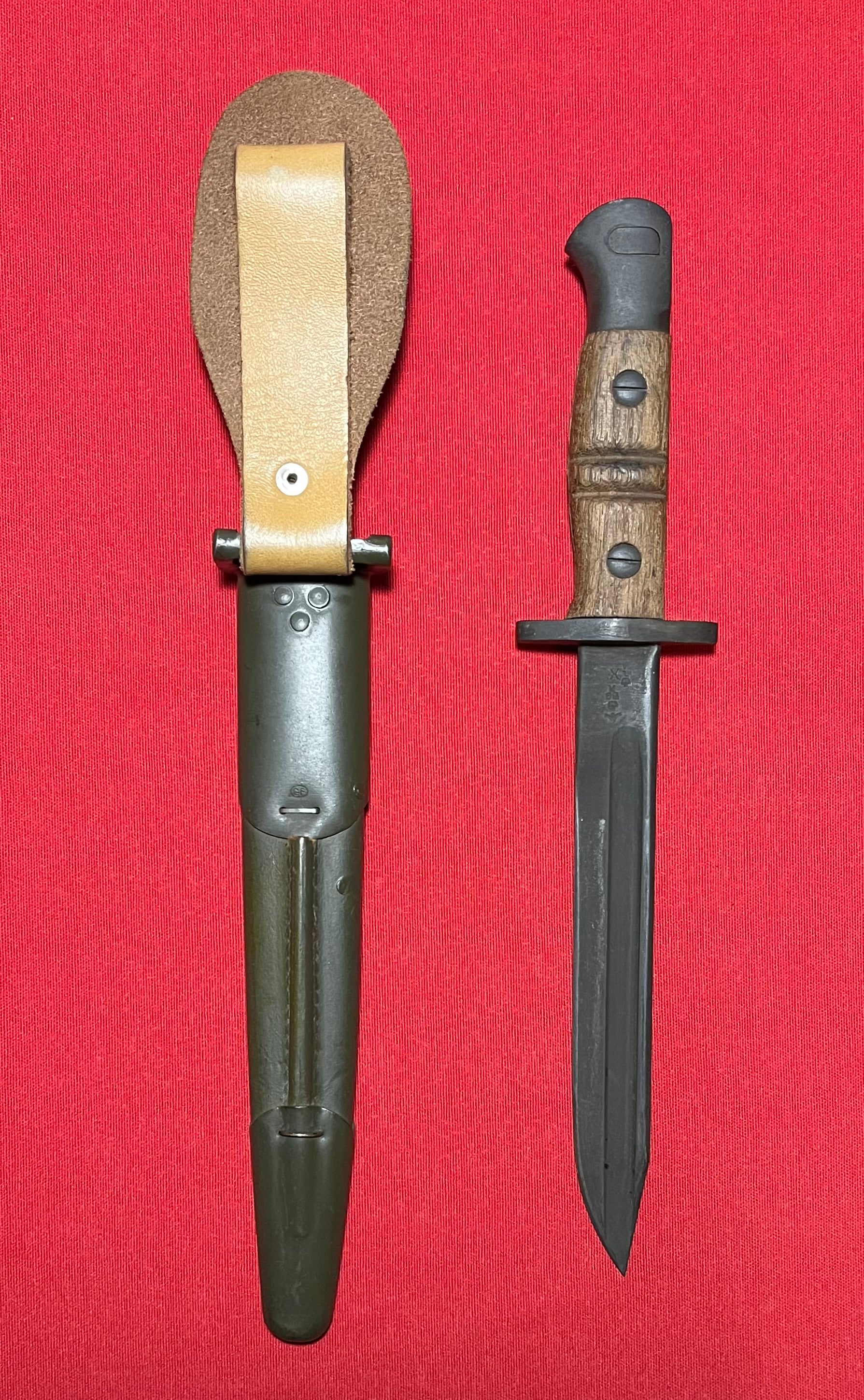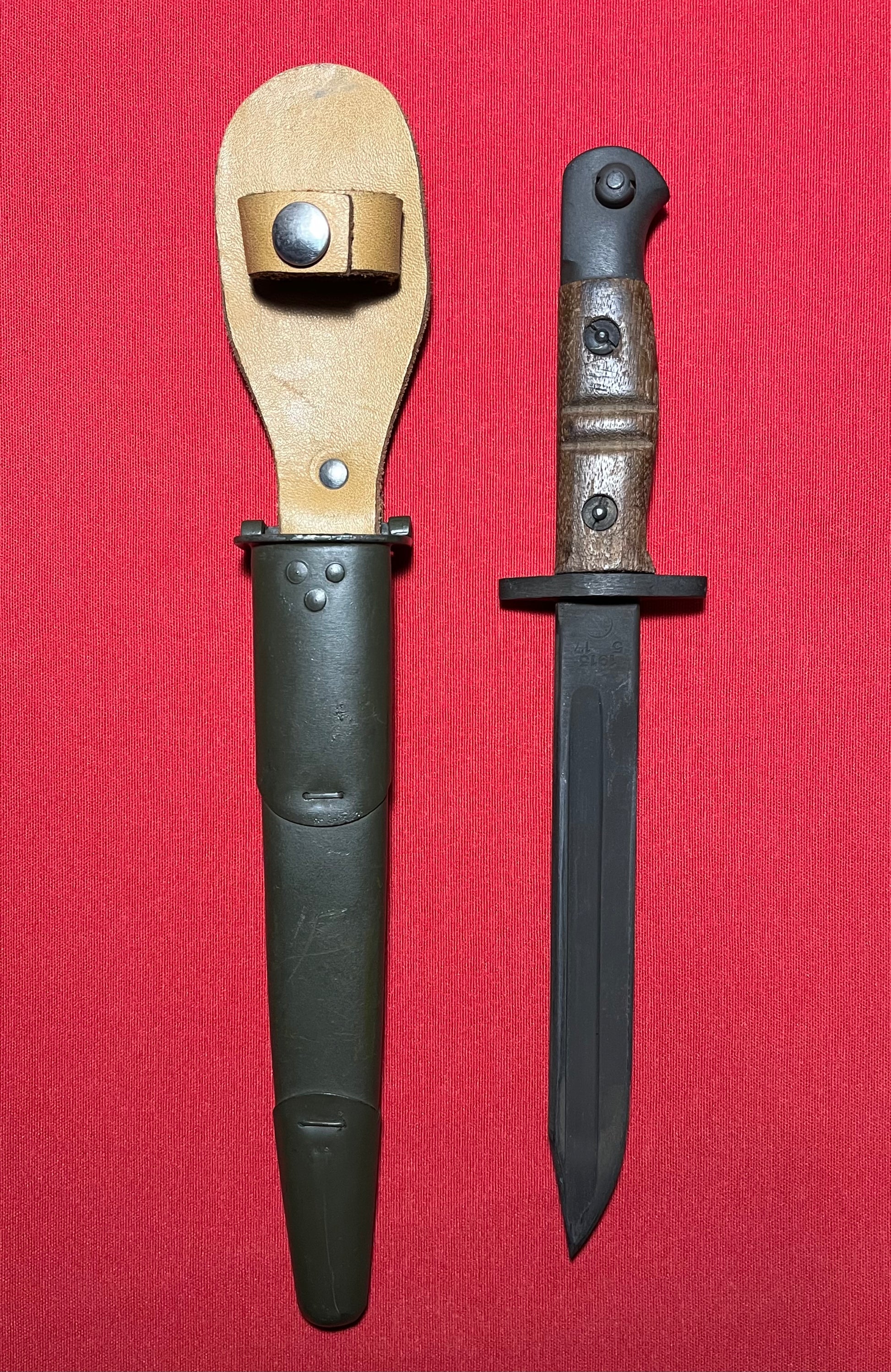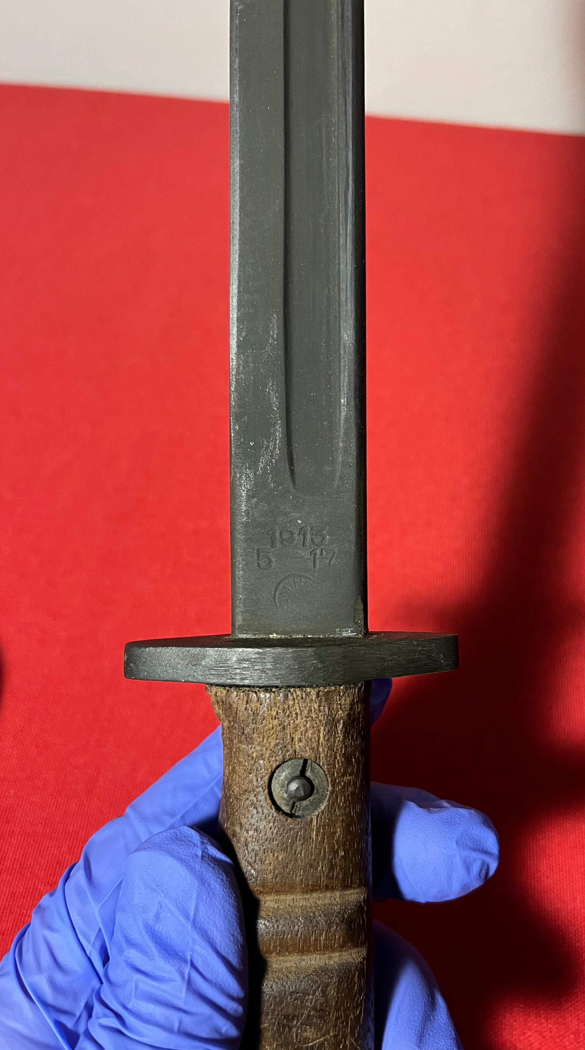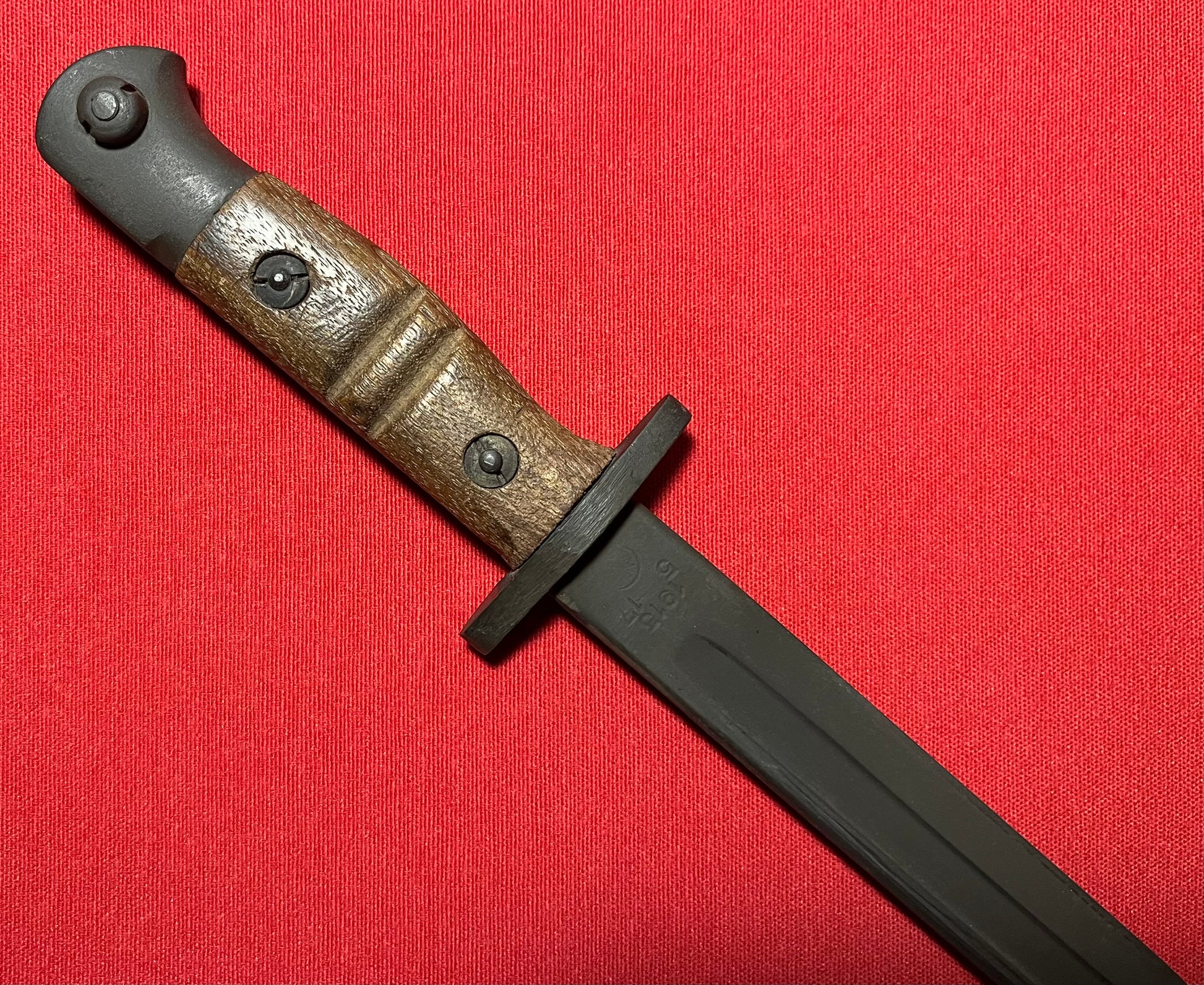 Original British WWI P1913 Enfield Bayonet by Remington with Scabbard / Cutdown for French-Indochina War (French Army Use)