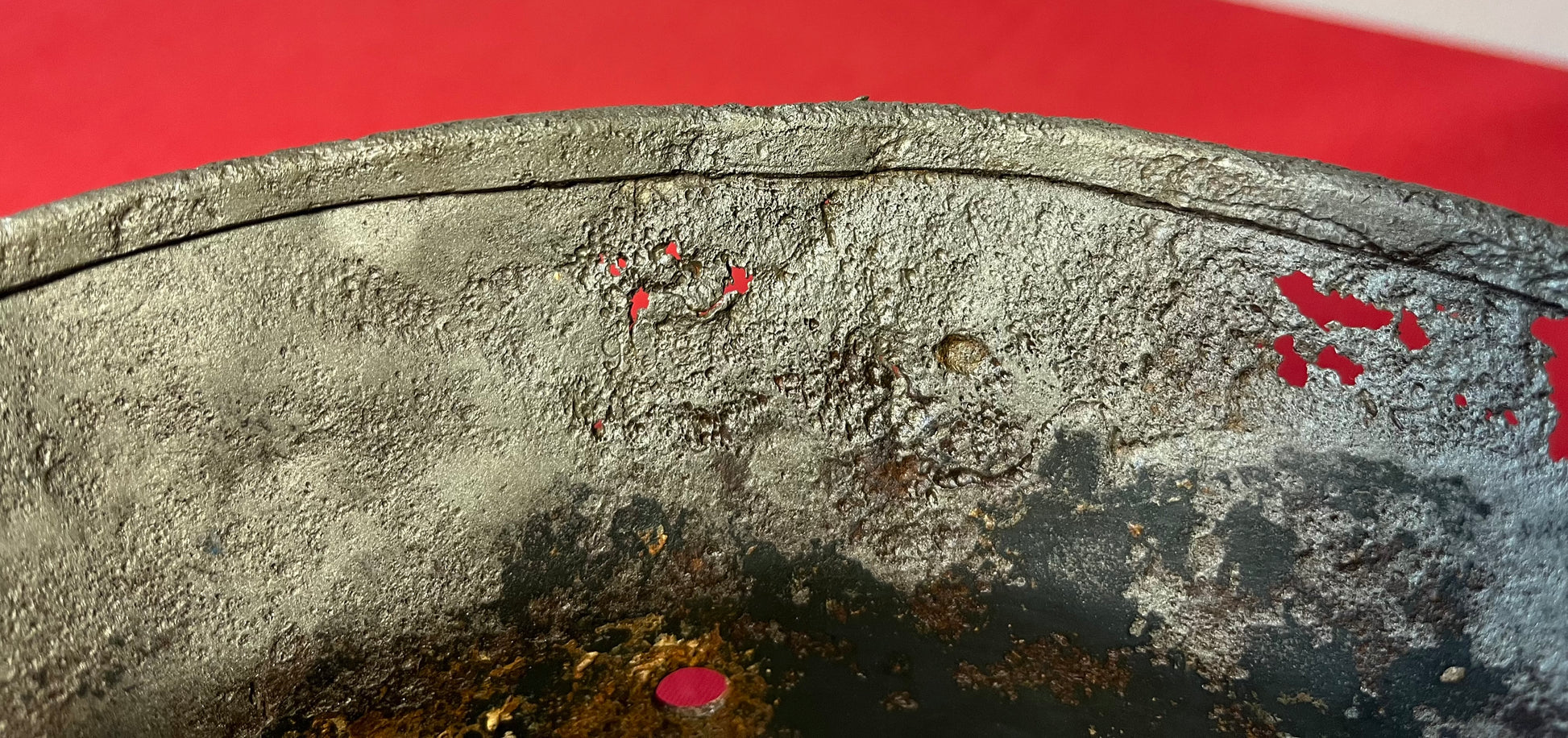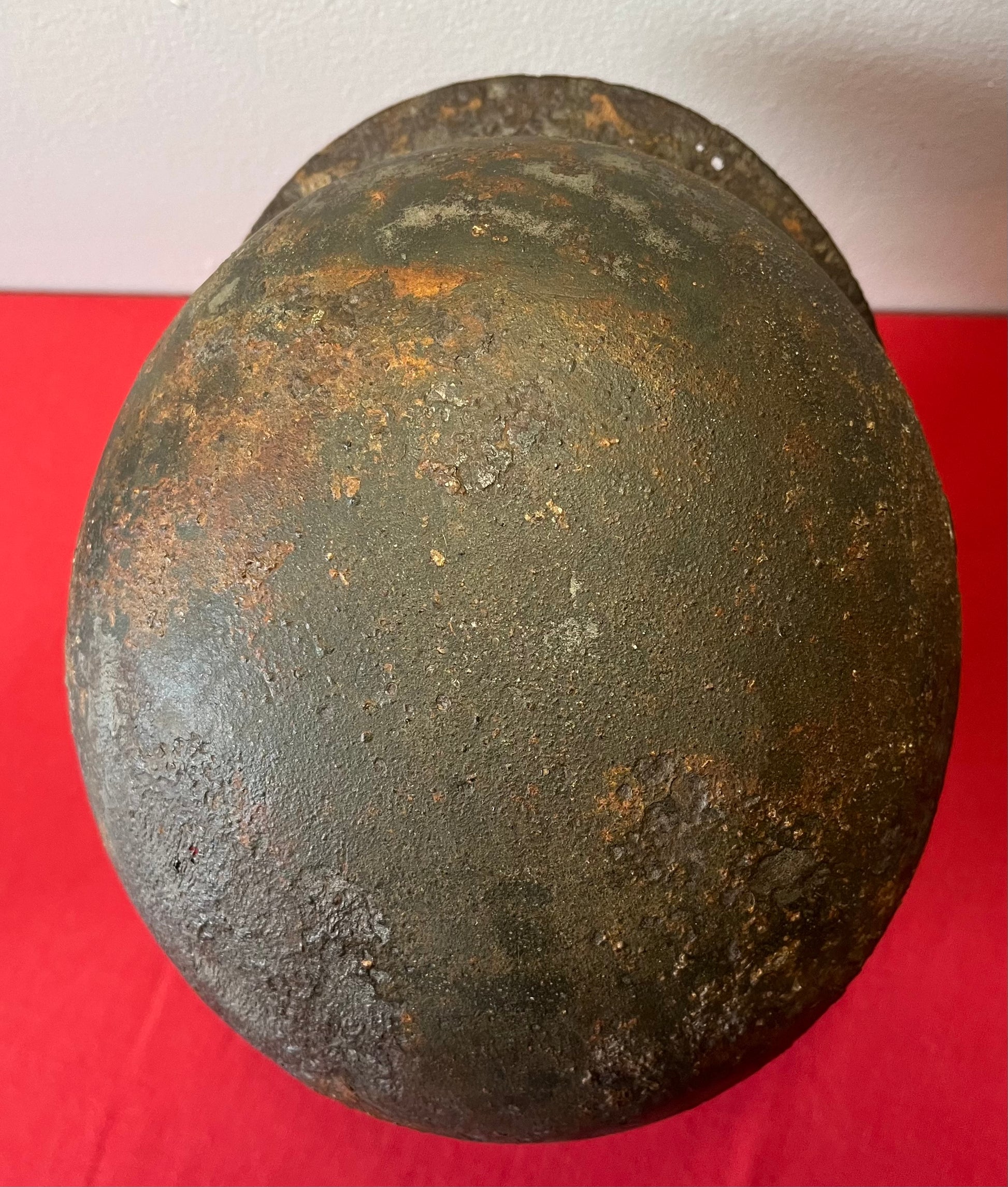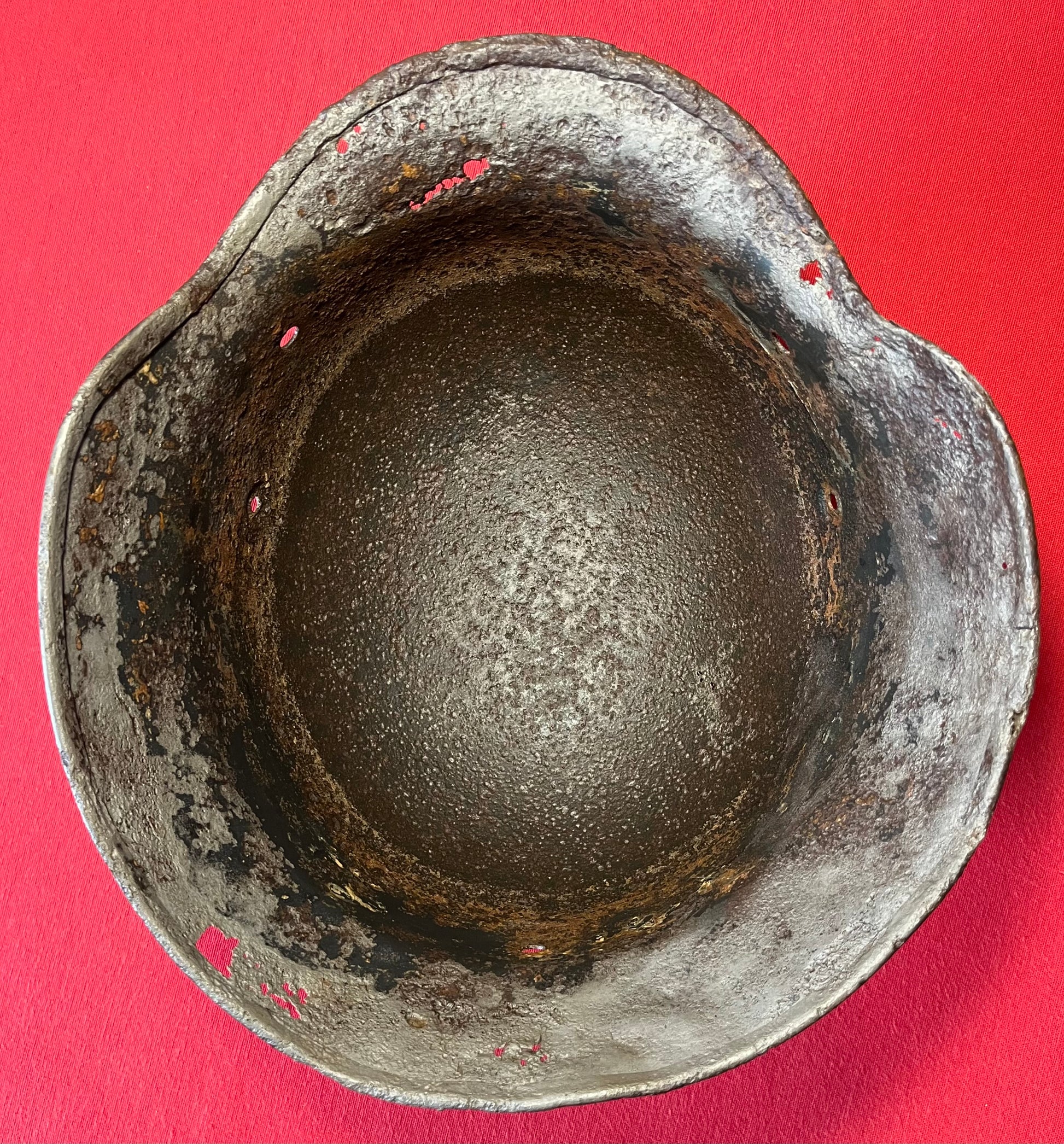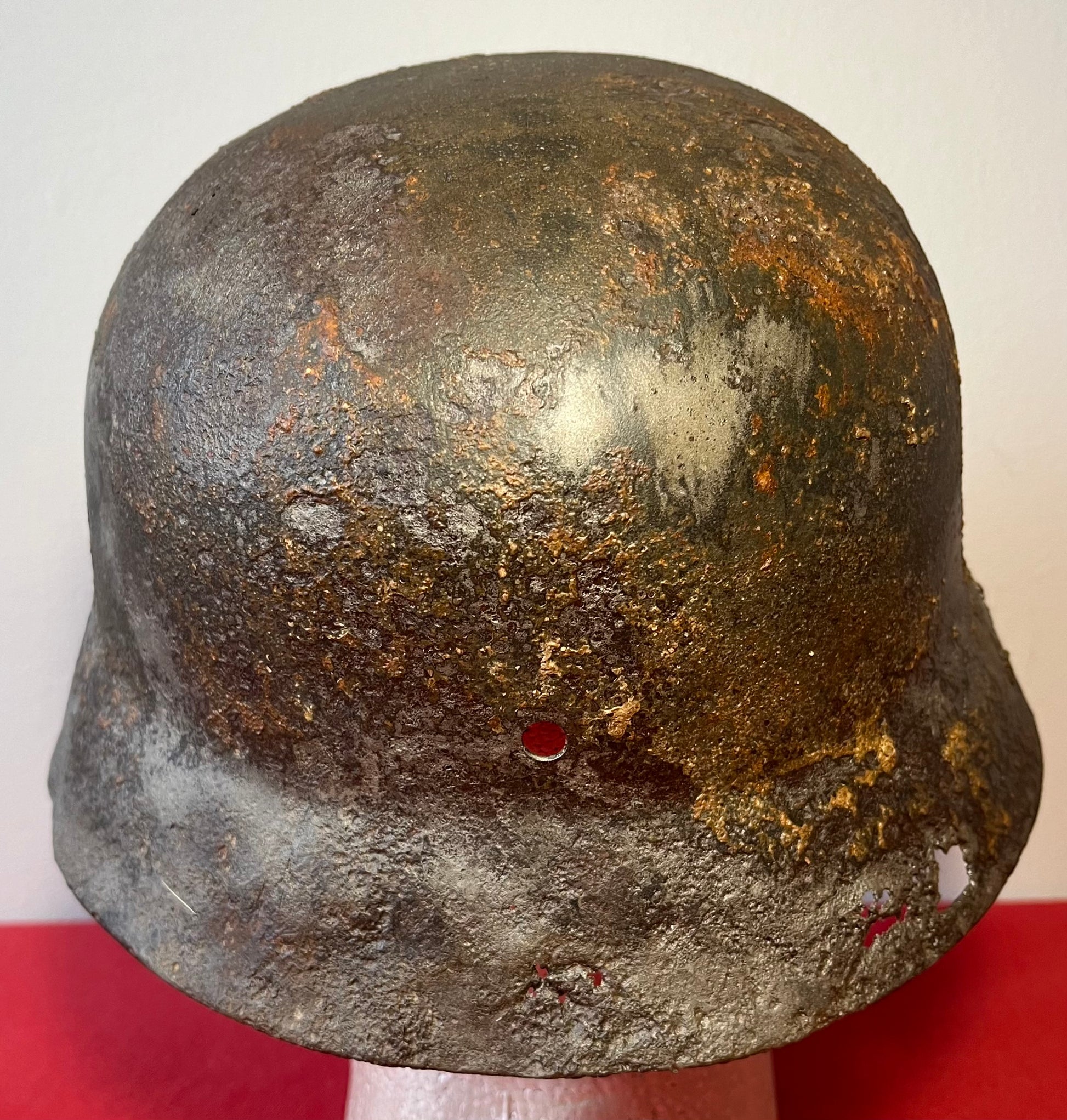 Authentic / WW2 German helmet / Relic condition / Heat stamp numbers still slightly showing inside / Helmet is nice and solid with active rust areas controlled / A couple small holes / No Liner / SS insignia was applied post war for aesthetics