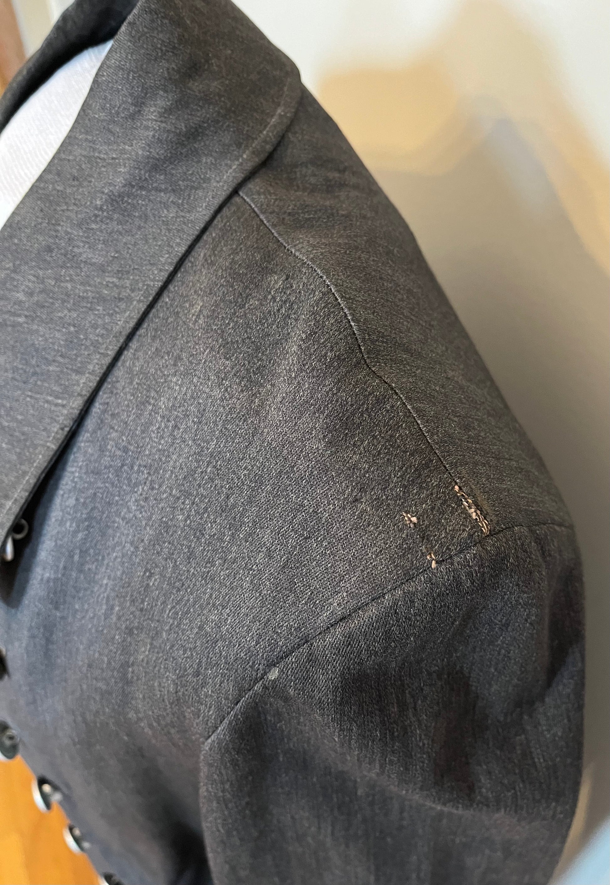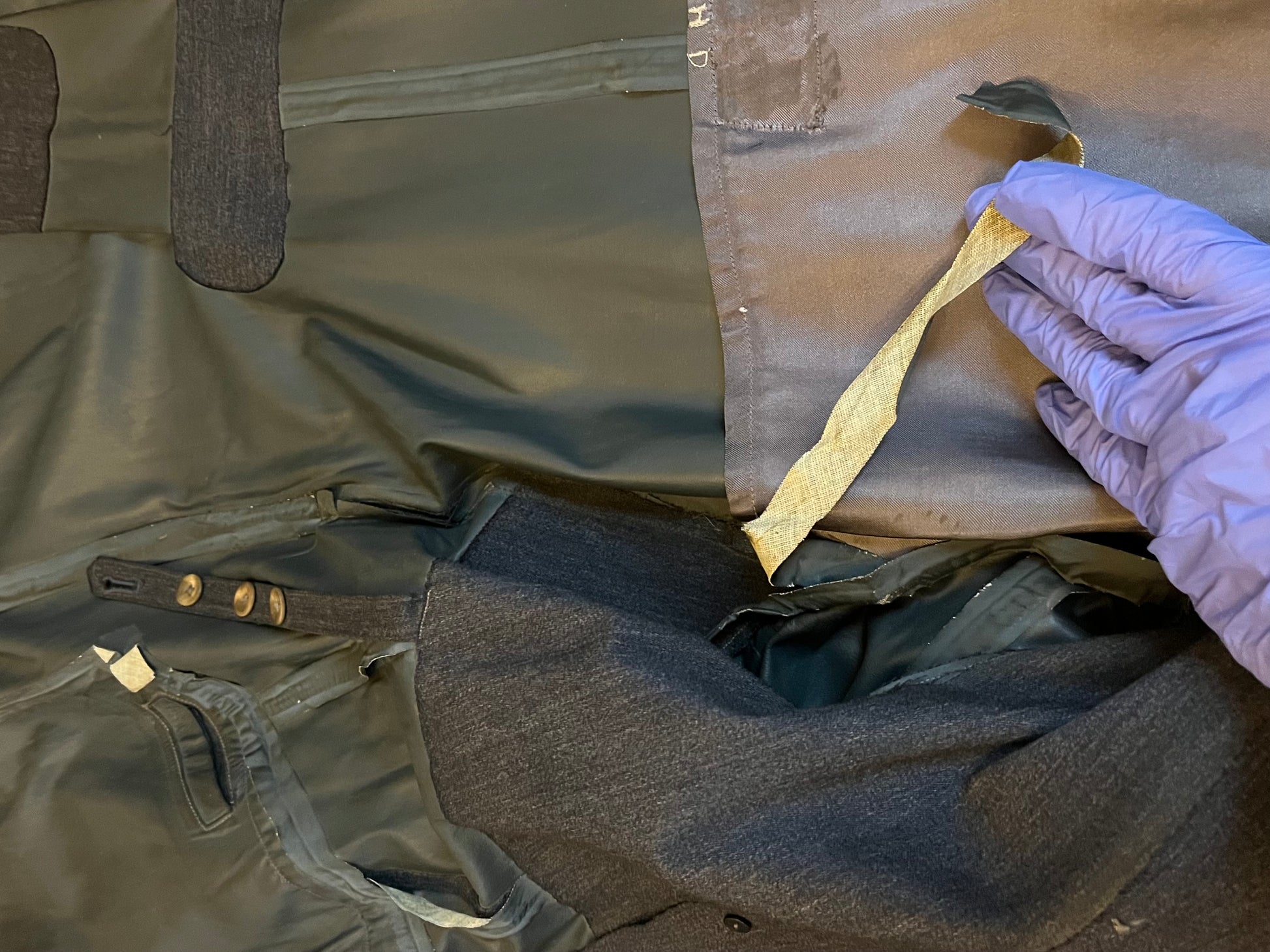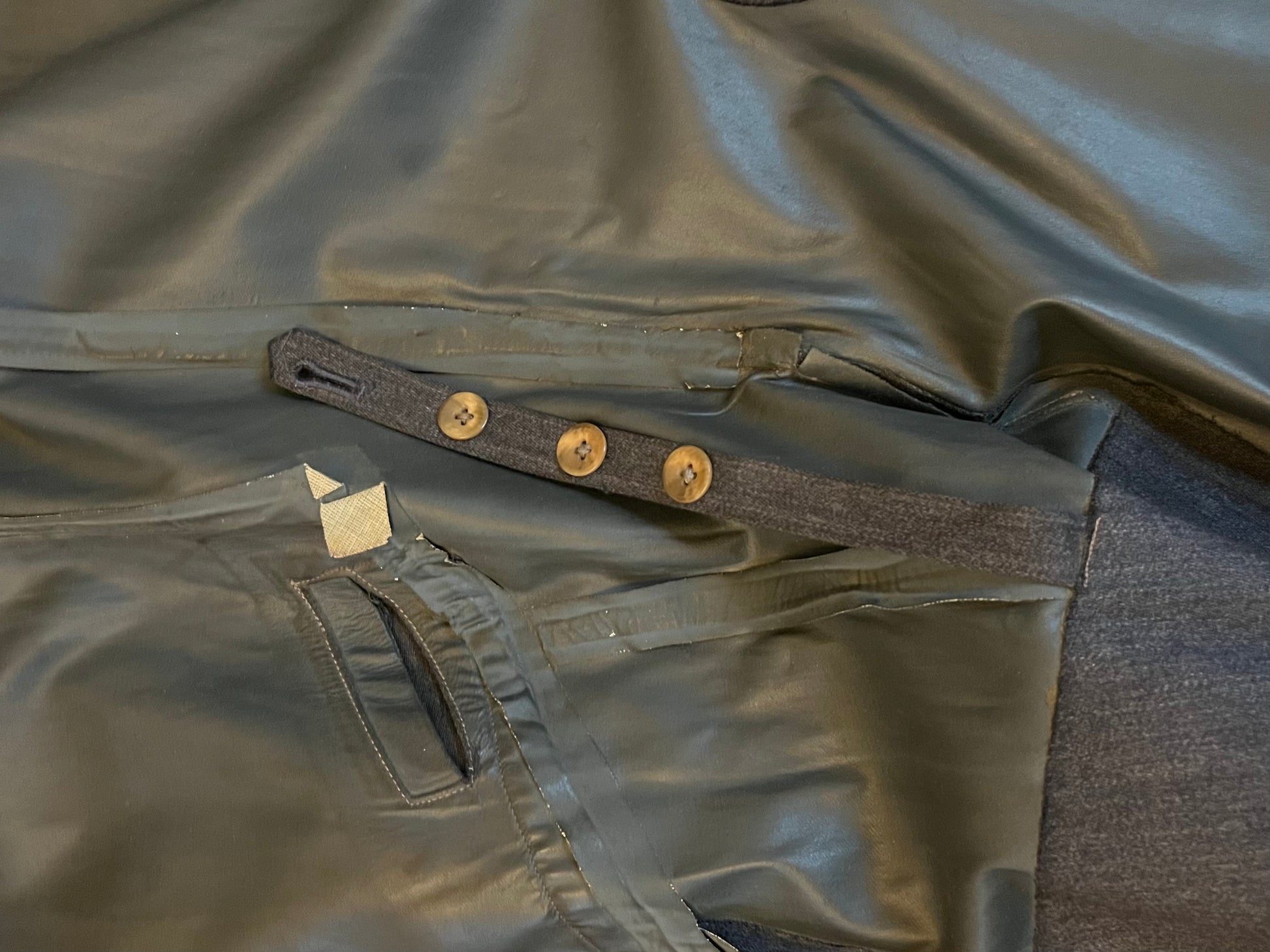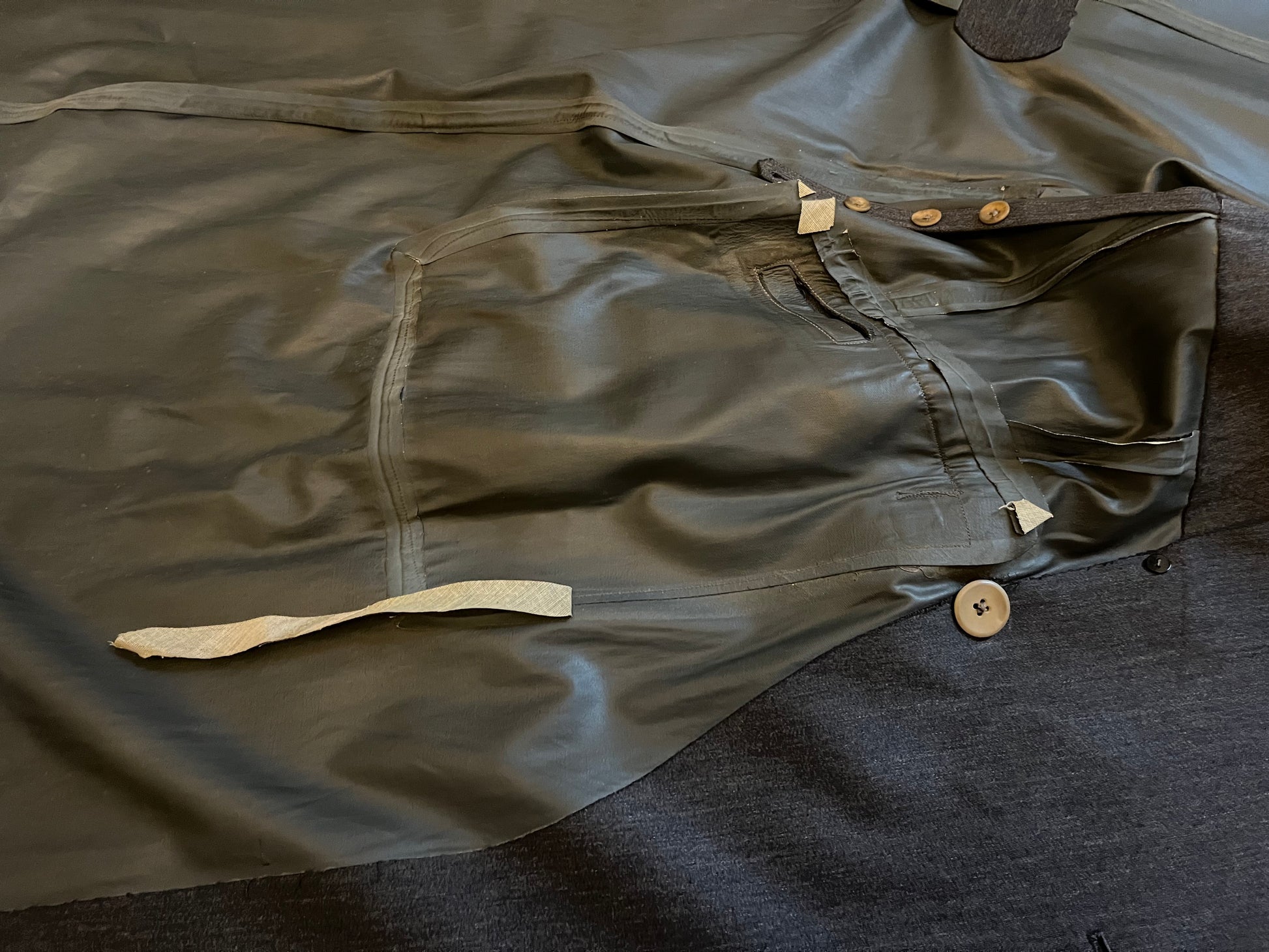Original / WW2 German Luftwaffe (Air Force) Made of a rubberized material / Hand Sewn Initials where the tag once was, "H.D" as well as a name on the reverse side of the inner liner (shown in pictures) The buttons are all present and manufactured by Assmann Sohne Ludenscheid / Size - shoulder to shoulder seam 18 Inches / 52 Inches long / Arm 26 Inches / Chest 20 Inches "across" Condition - Inner liner has two waterproof strips hanging by a couple inches where the glue has release and a small wear spot on the right arm / The presence of existing shoulder boards are visible by some threads left around both shoulders / 100% Authenticity Guarantee / Please inquire with any questions