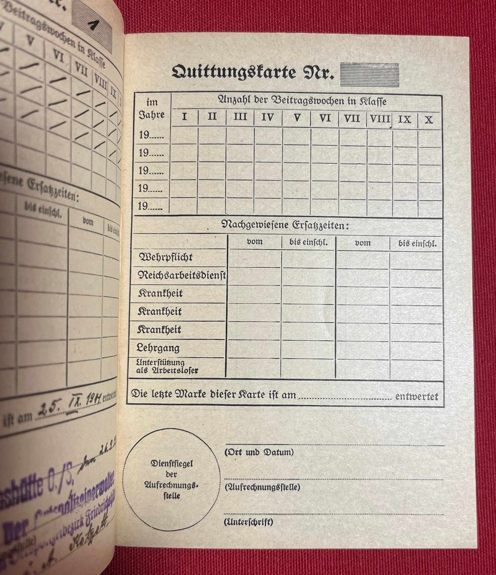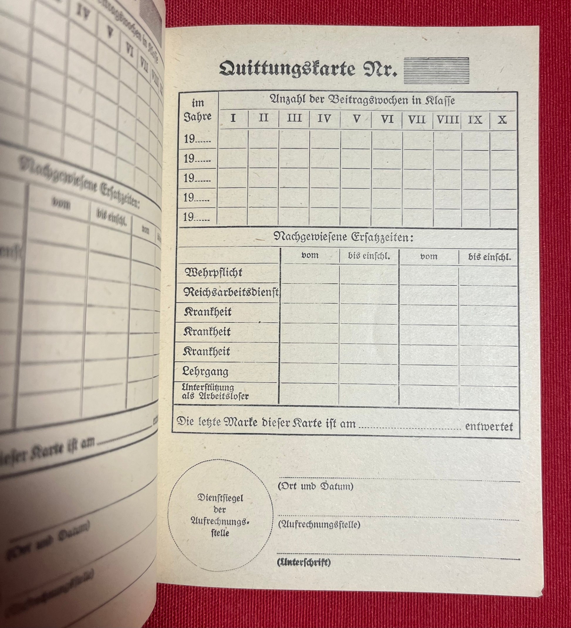 Original / WW2 Era German / This book allows German veteran's proof of collection (Benefits collected or owed) Book size is 5.75 x 4 / Picture size 3 x 2 inches / Group comes in protective plastic sleeve as show in photos