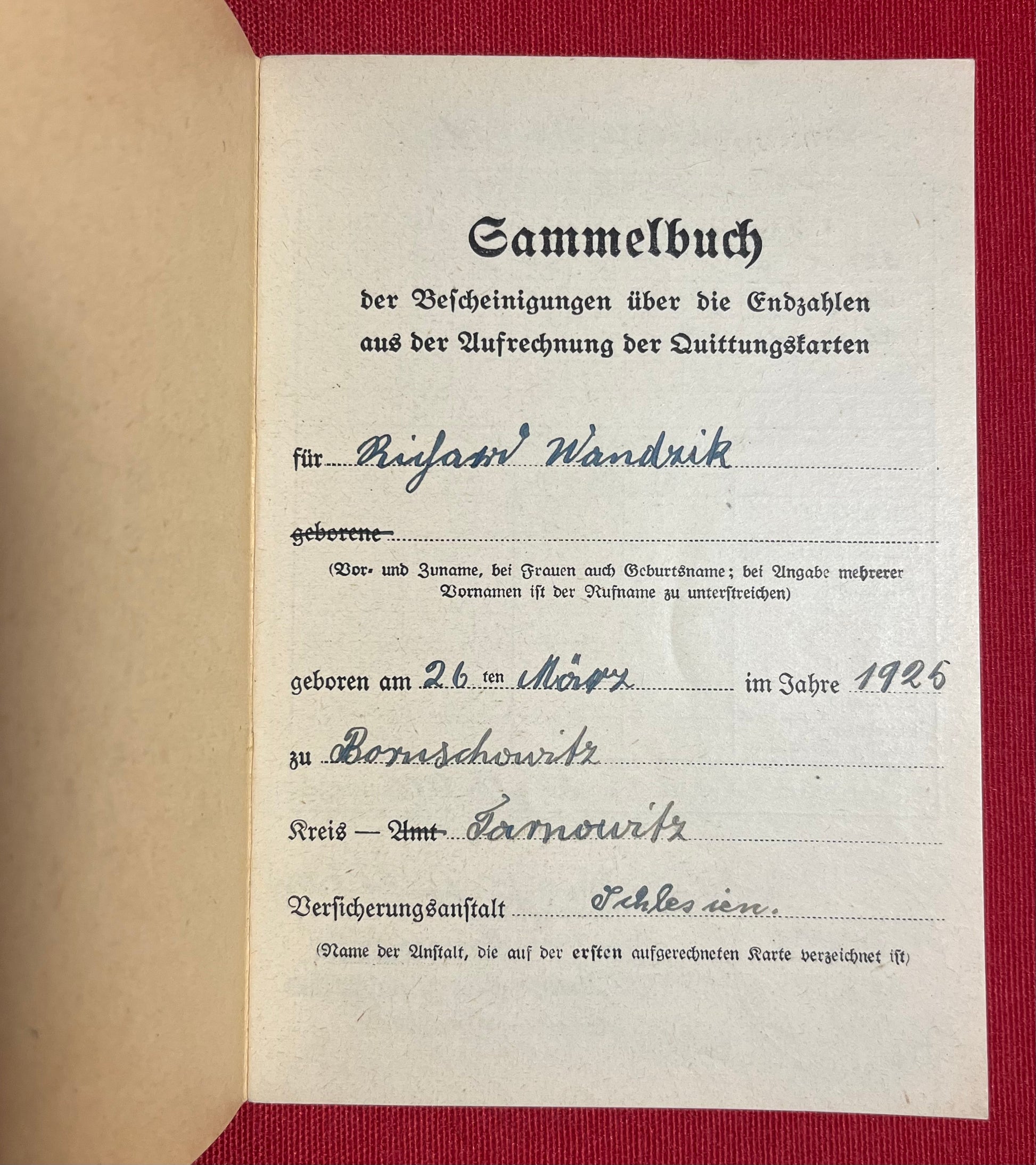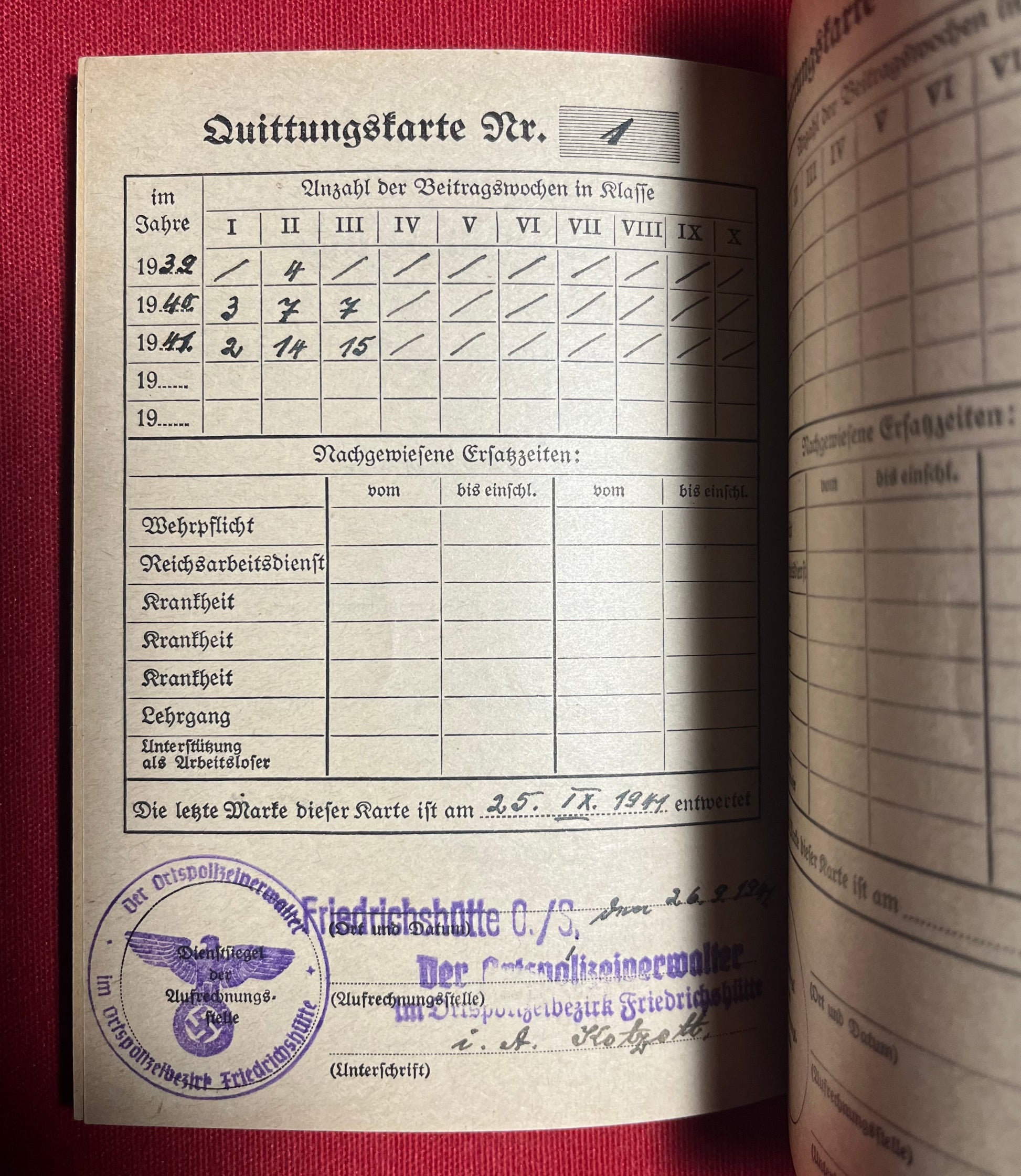 Original WW2 German Soldier's Disability Insurance Book & Photograph