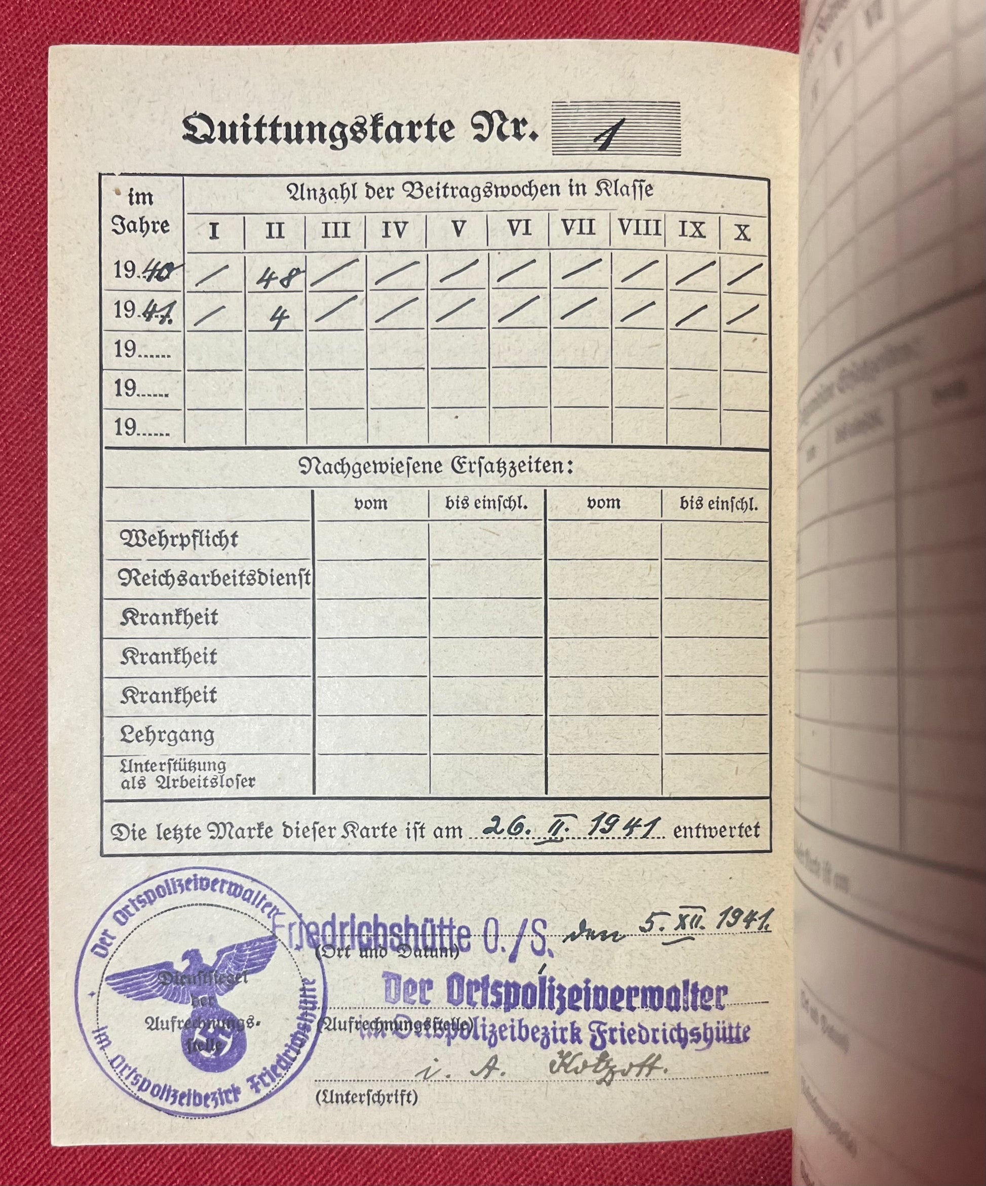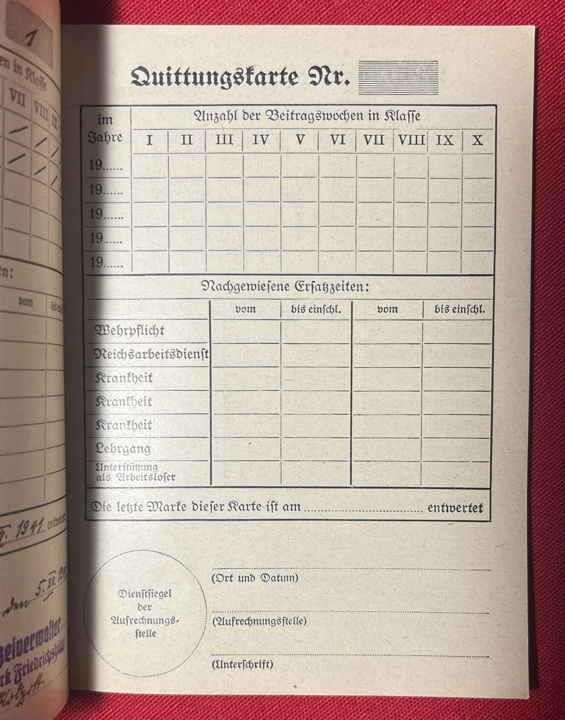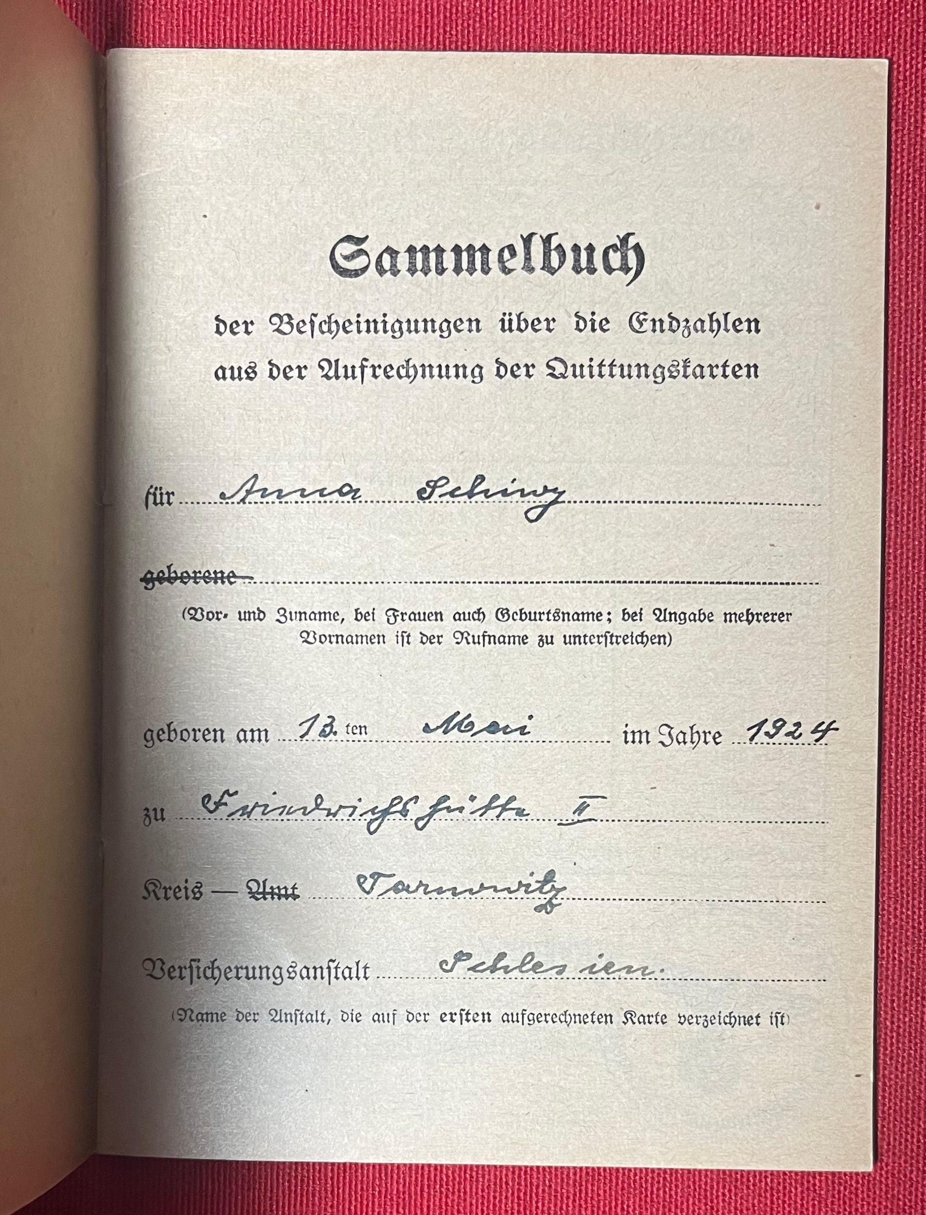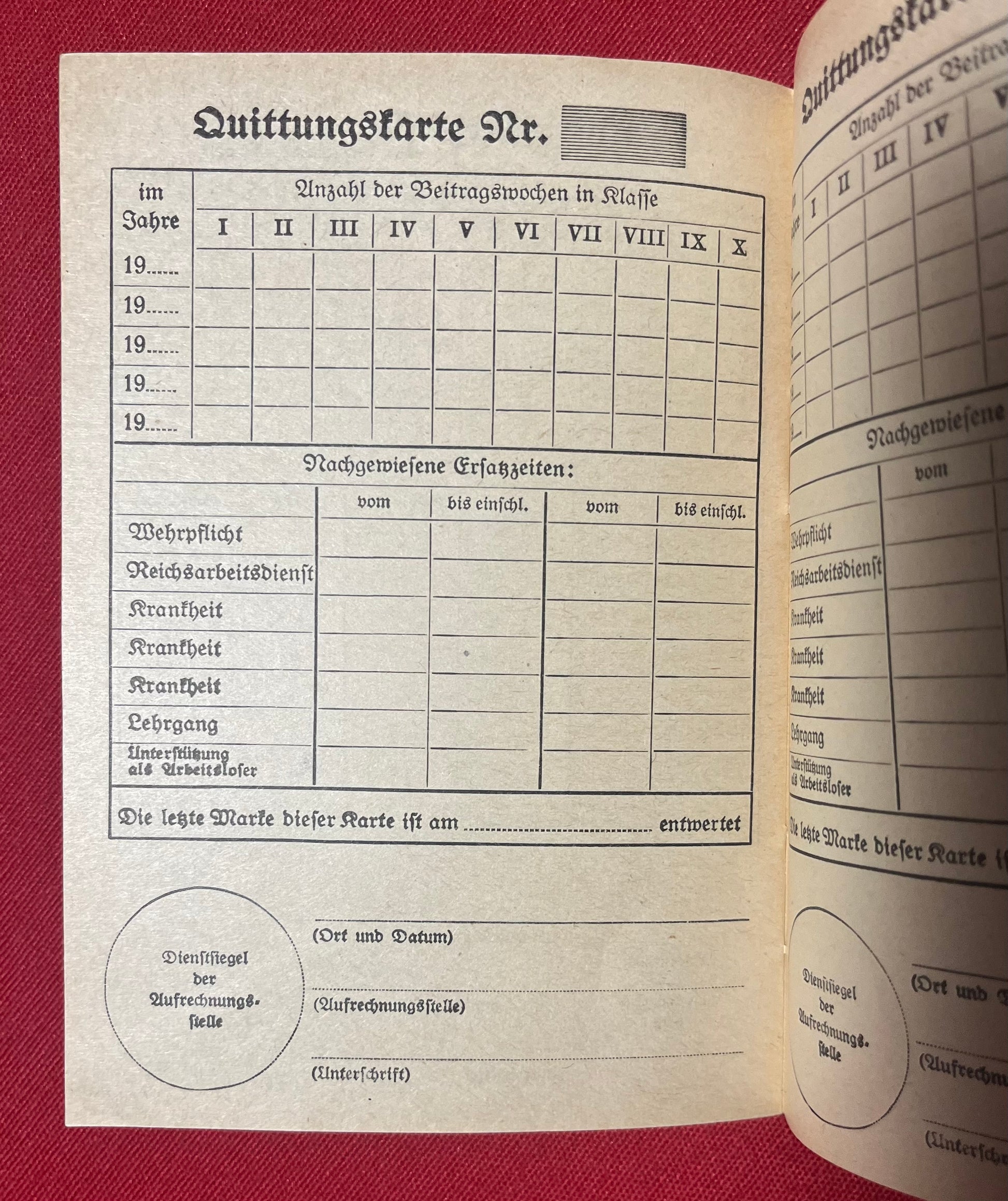 Original / WW2 Era German / This book allows German veteran's proof of collection (Benefits collected or owed) Book size is 5.75 x 4 / Picture size 3 x 2 inches / Group comes in protective plastic sleeve as shown in photos