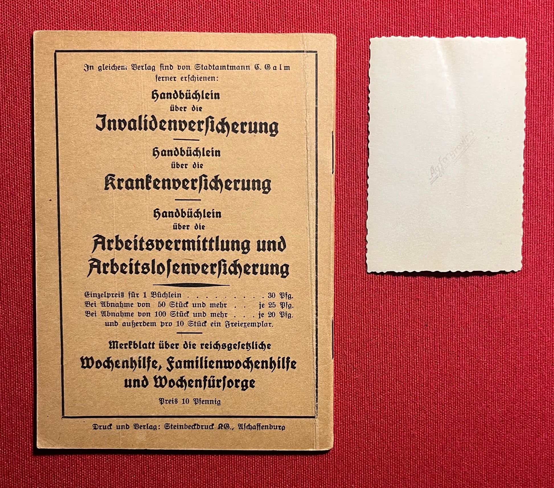 Original WW2 German Soldier's Disability Insurance Book & Photograph