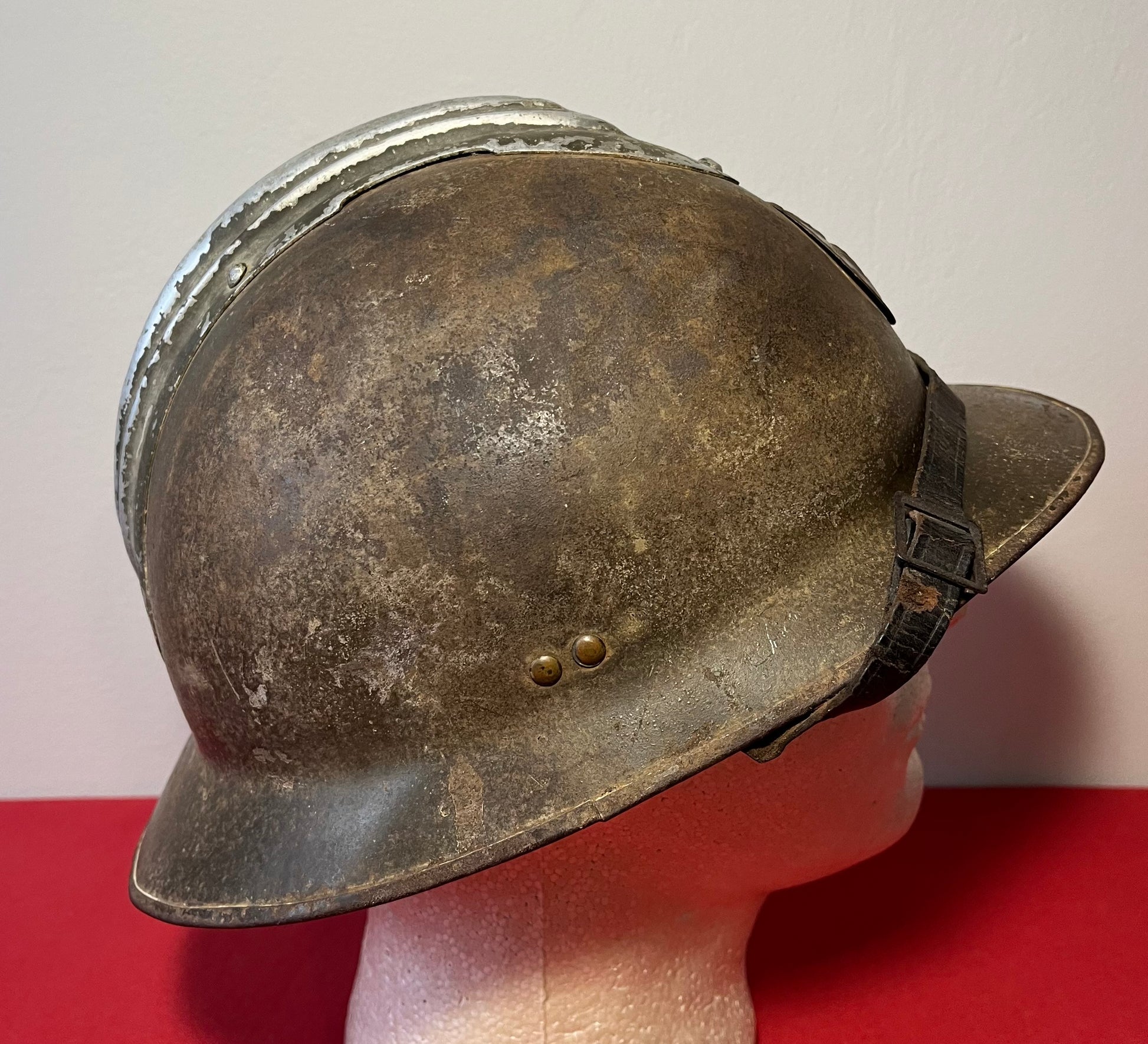 In 1926 the Adrian helmet was modified by being constructed of stronger steel and simplified by having the main part of the helmet stamped from one piece of metal, and therefore without the joining rim around the helmet that characterizes the M15. (WW1 era) The large ventilation hole under the comb, which had been a weak point of the old design, was also replaced with a series of small holes. The M26 helmet continued in use with the French Army until after World War II and was also used by the French police up to the 1970s.