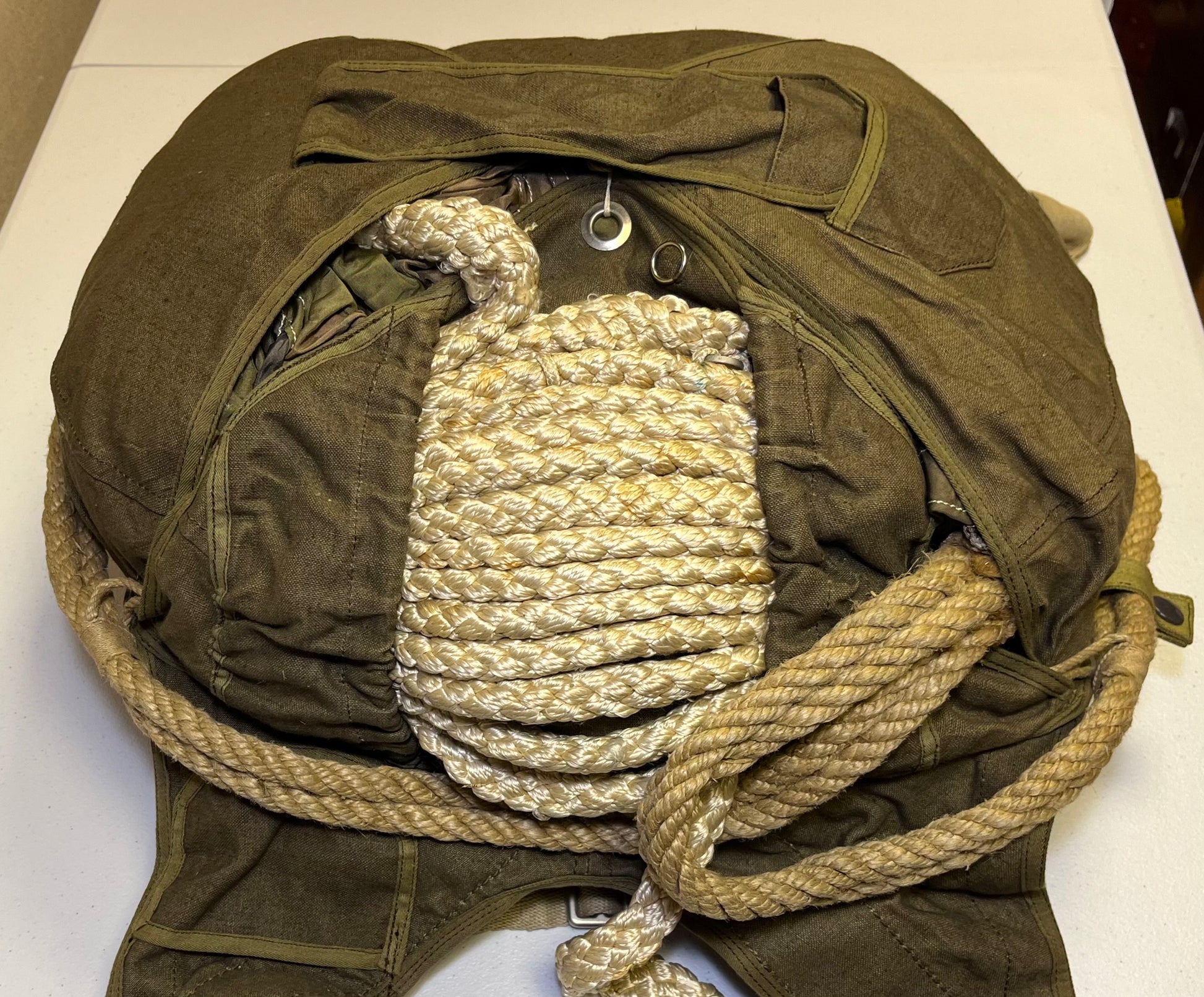 Original WWII German RZ20 Luftwaffe Fallschirmjäger (Paratrooper) Parachute & Bag Complete Set