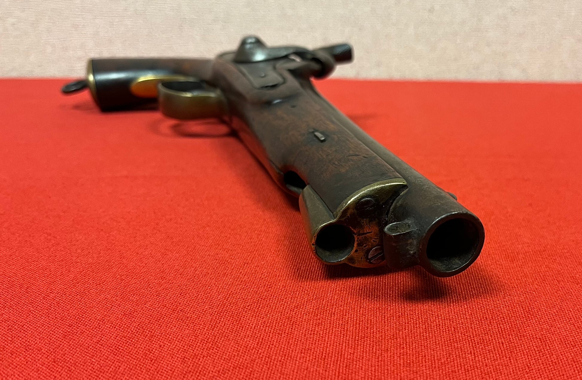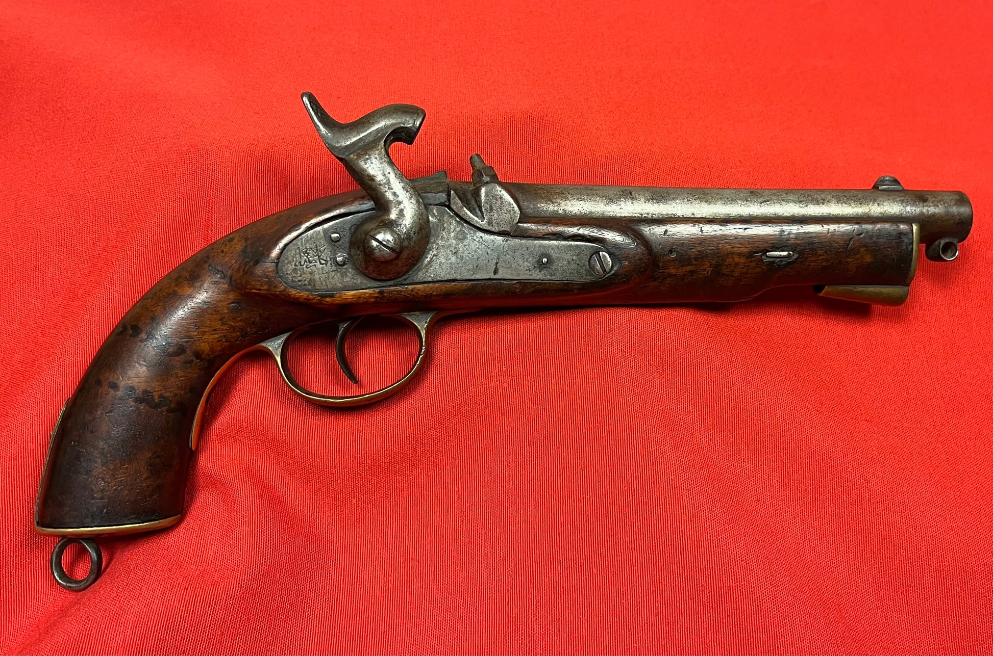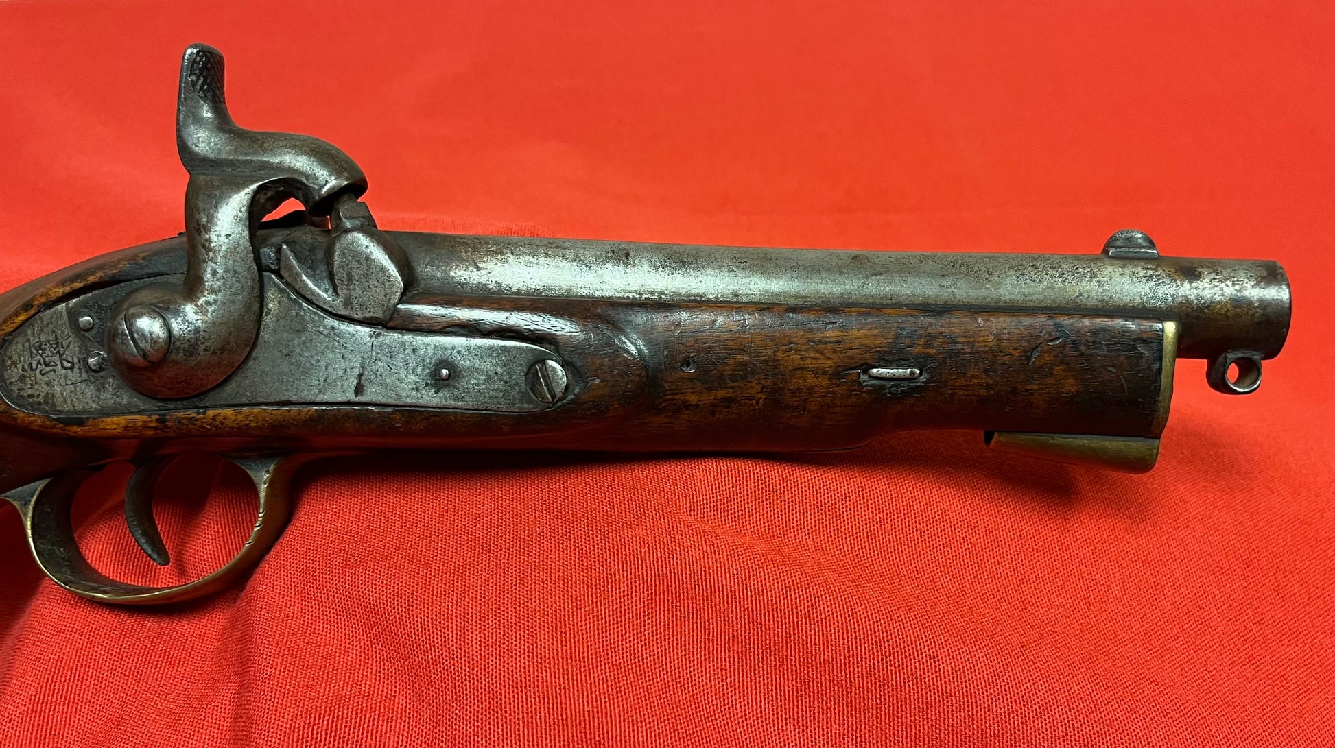 British Indian cavalry issue (Great Mutiny Era) Original and complete / Working order / 14” Overall length with an 8” smoothbore barrel / Lock-plate has writing / Untouched condition / Reverse side has some field repair “brass staple” Amazing piece with great patina / Ready for display