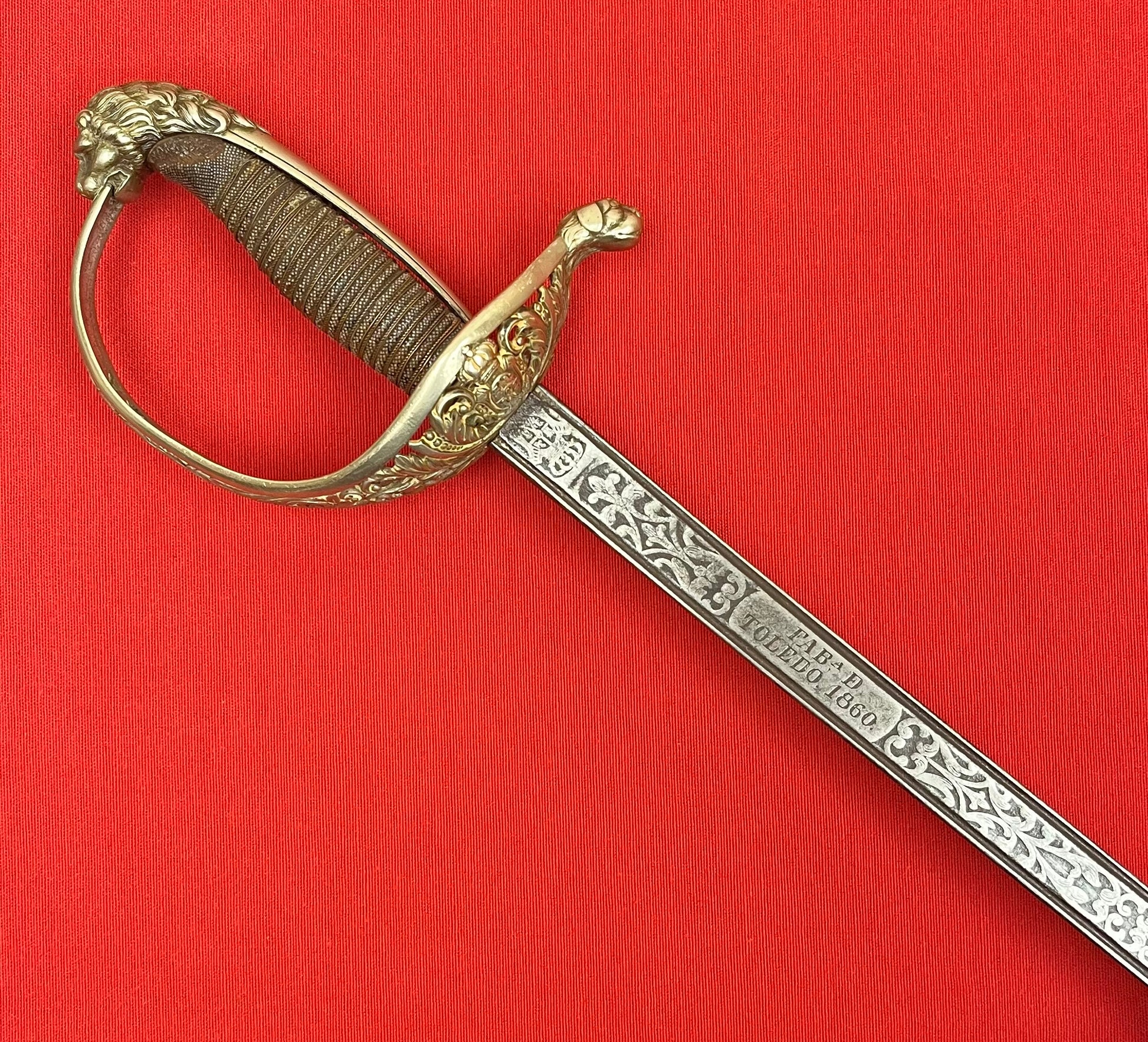 Pre-Spanish American War Spanish Officer’s (High Ranking) Silver Hilted Lions Head Sword Toledo Dated 1860