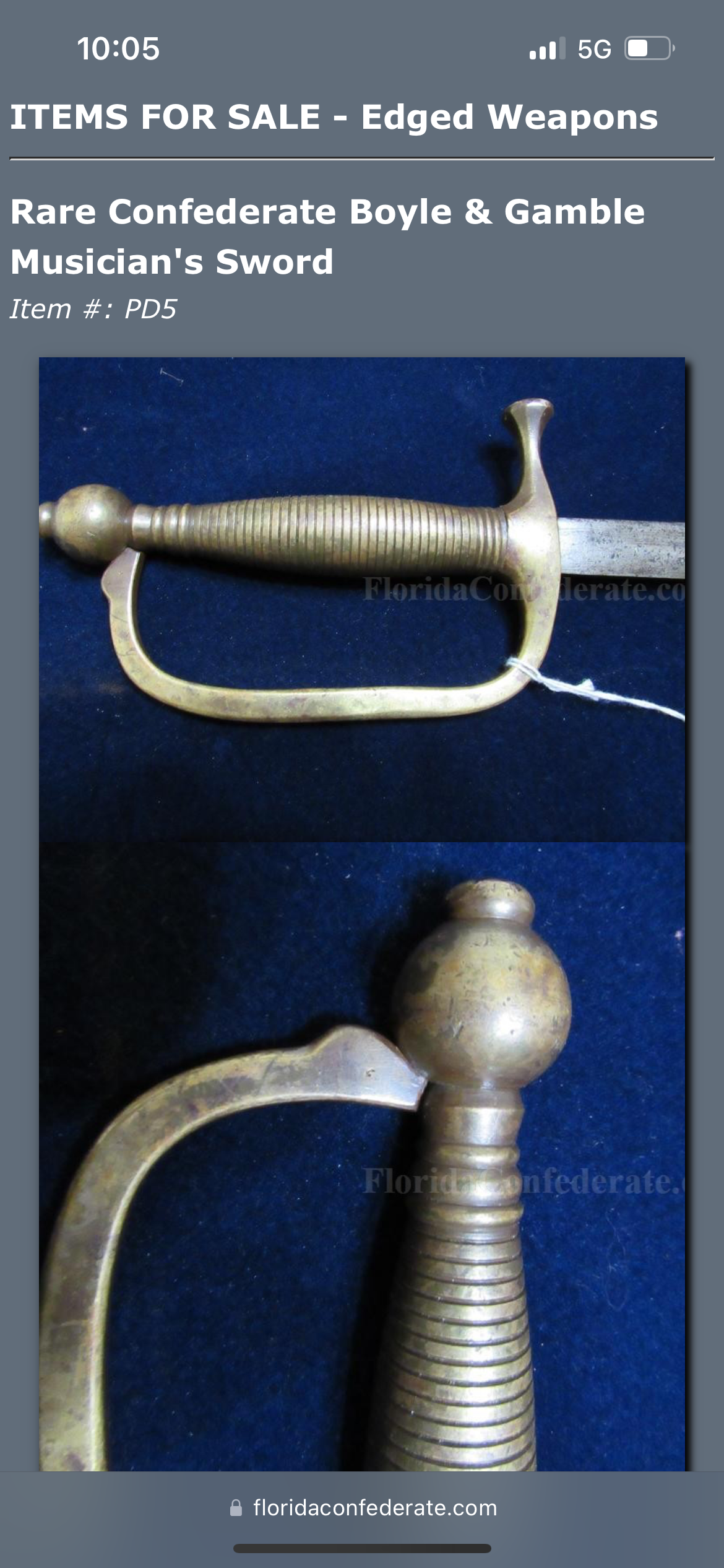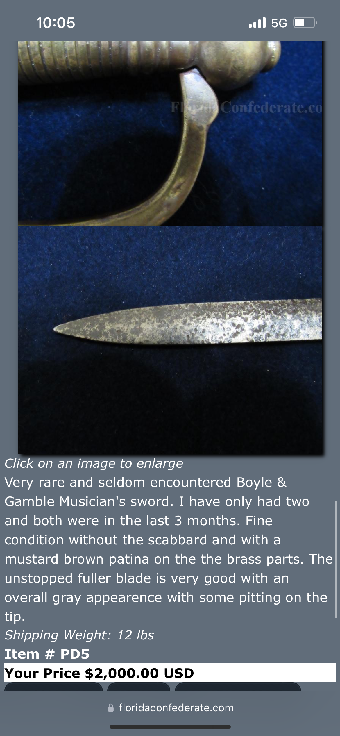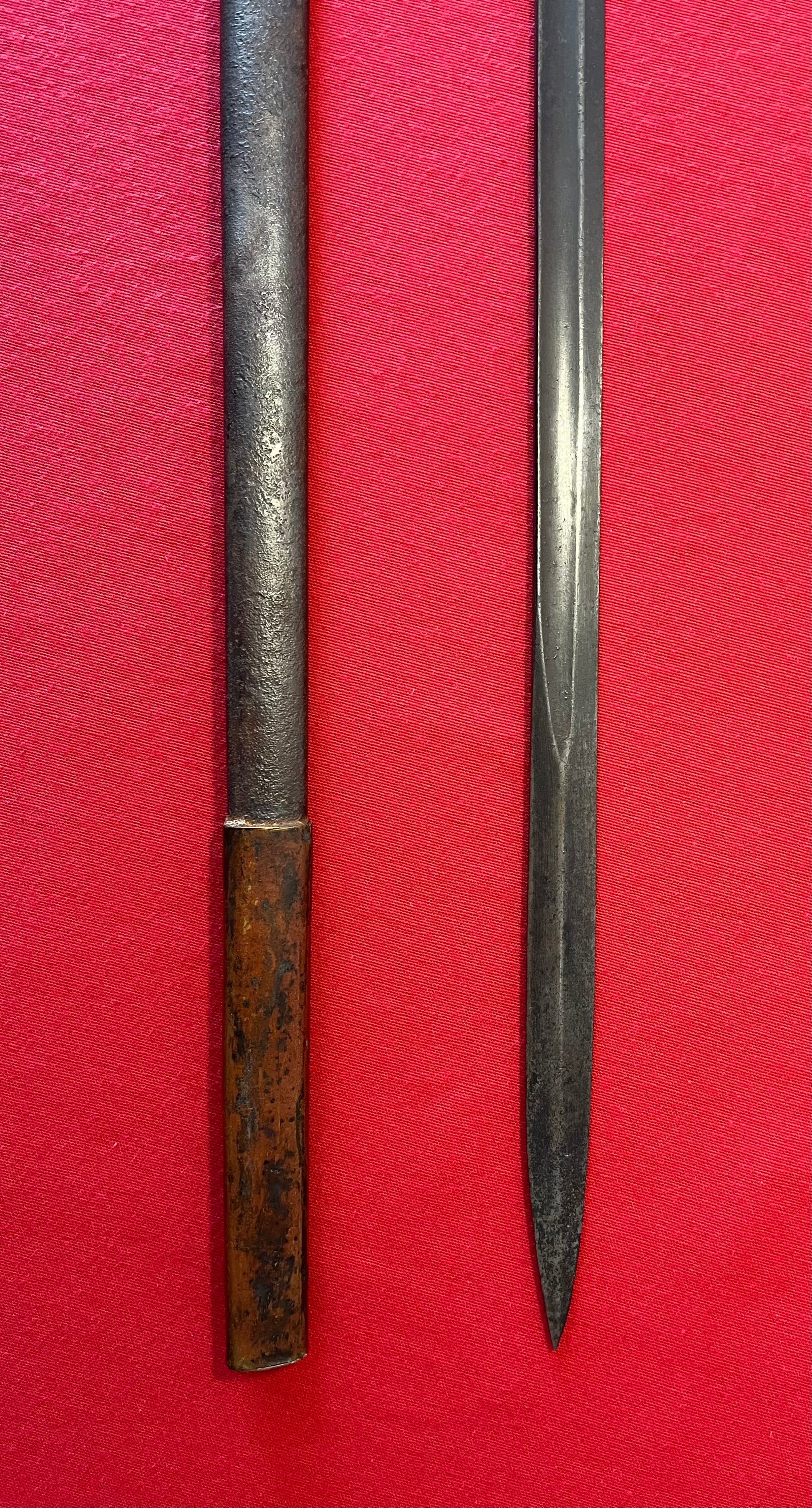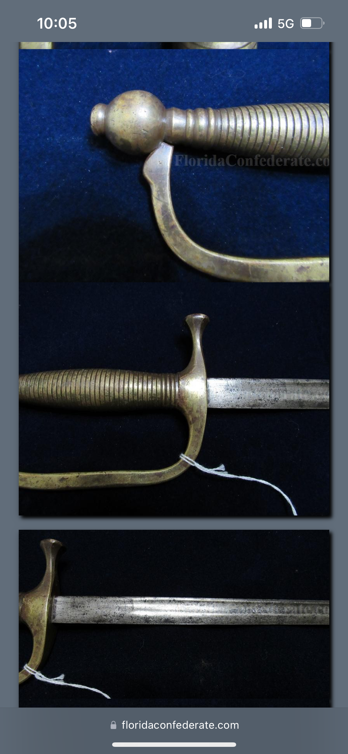 The sword has an overall length of 34 Inches / Blade length of 28 Inches / Scabbard length of 32 Inches / The scabbard has light traces of leather still present within its copper fittings which is customary for confederate swords to have / The sword blade has a wonderful dark patina with an unstopped fuller also corroborating its confederate production / Listed in the pictures is another online listing with no scabbard for an interested buyer's reference (Which ours has)
