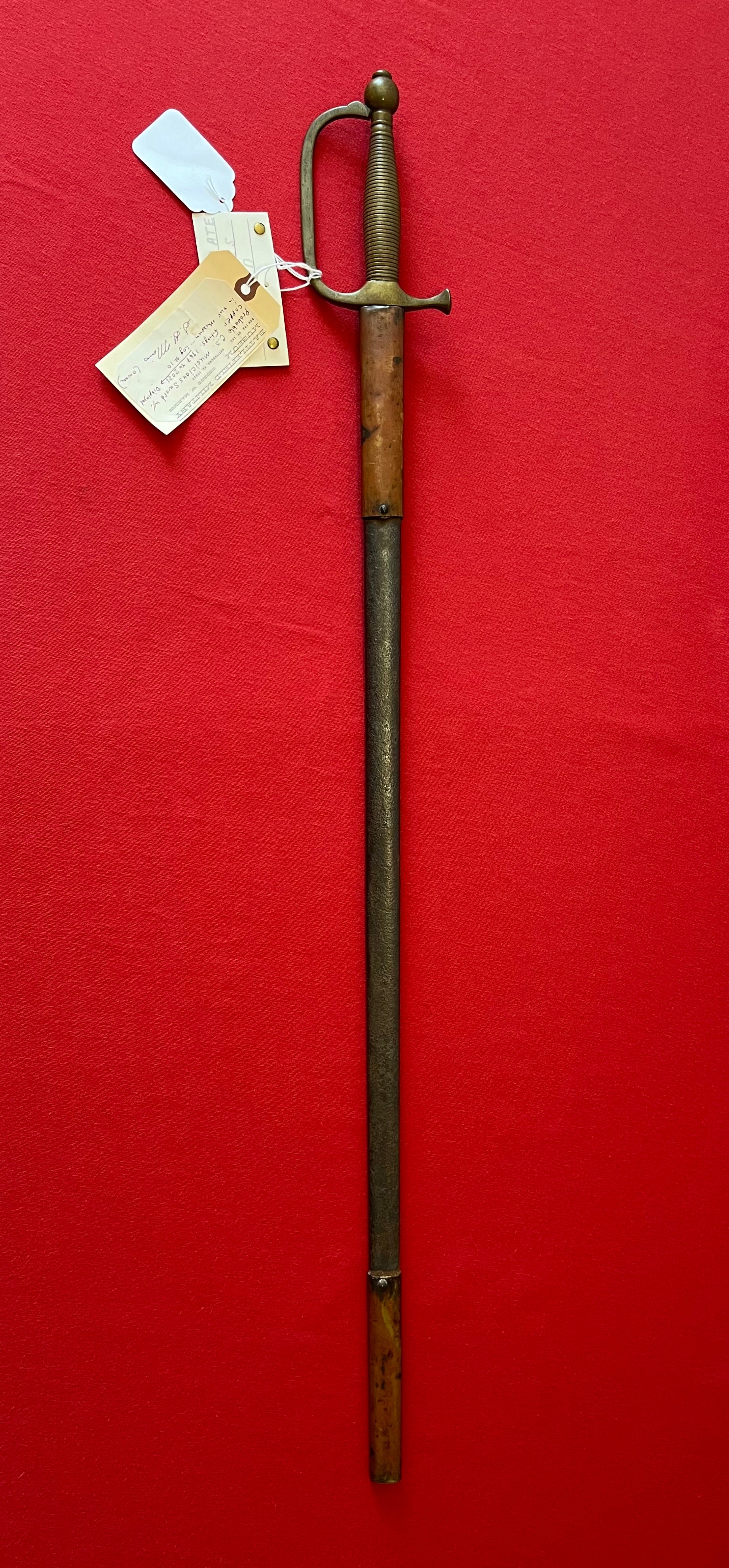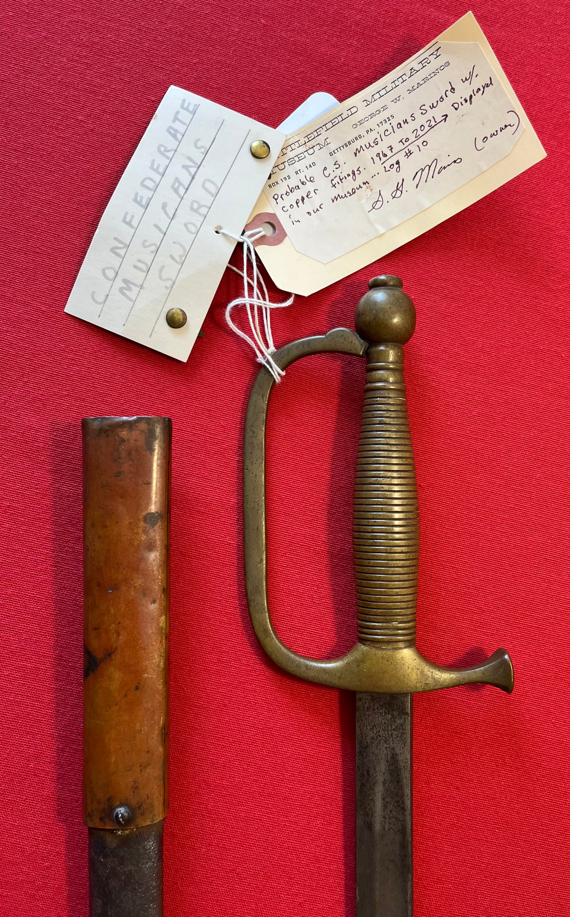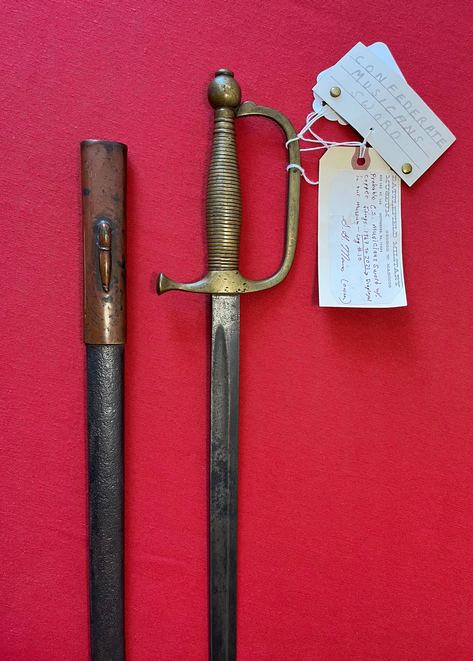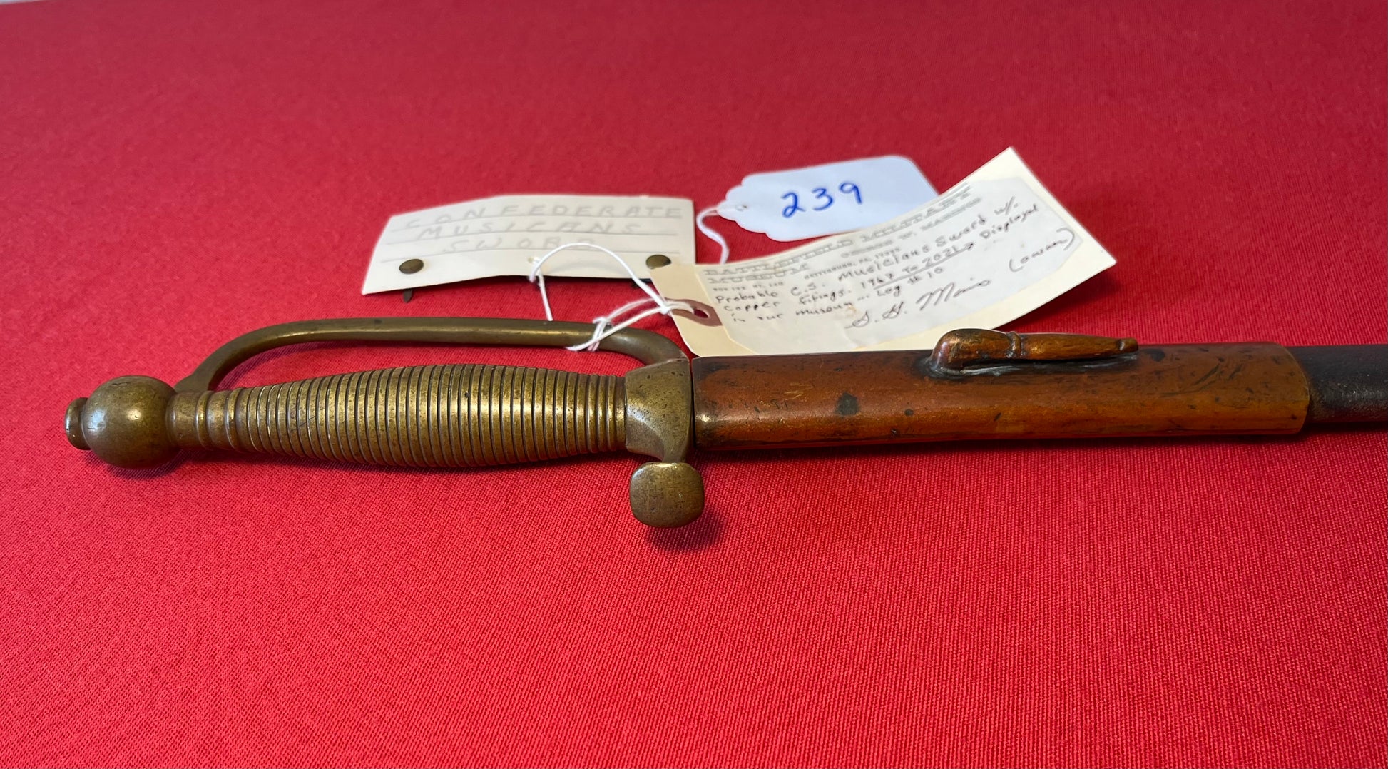 From the Battlefield Military Museum in Gettysburg, Pa / This sword was purchased from the auction house charged with the liquidation sale / Auction flyer and tag included in purchase (showing the item number with its classification in the flyer) The sword still retains both of its original museum tags / This sword was displayed in the museum from 1967 to 2021 as the tag indicates and is signed by the museum owner George Marinos / I personally purchased this sword at that sale on Saturday, October the 5th 2024