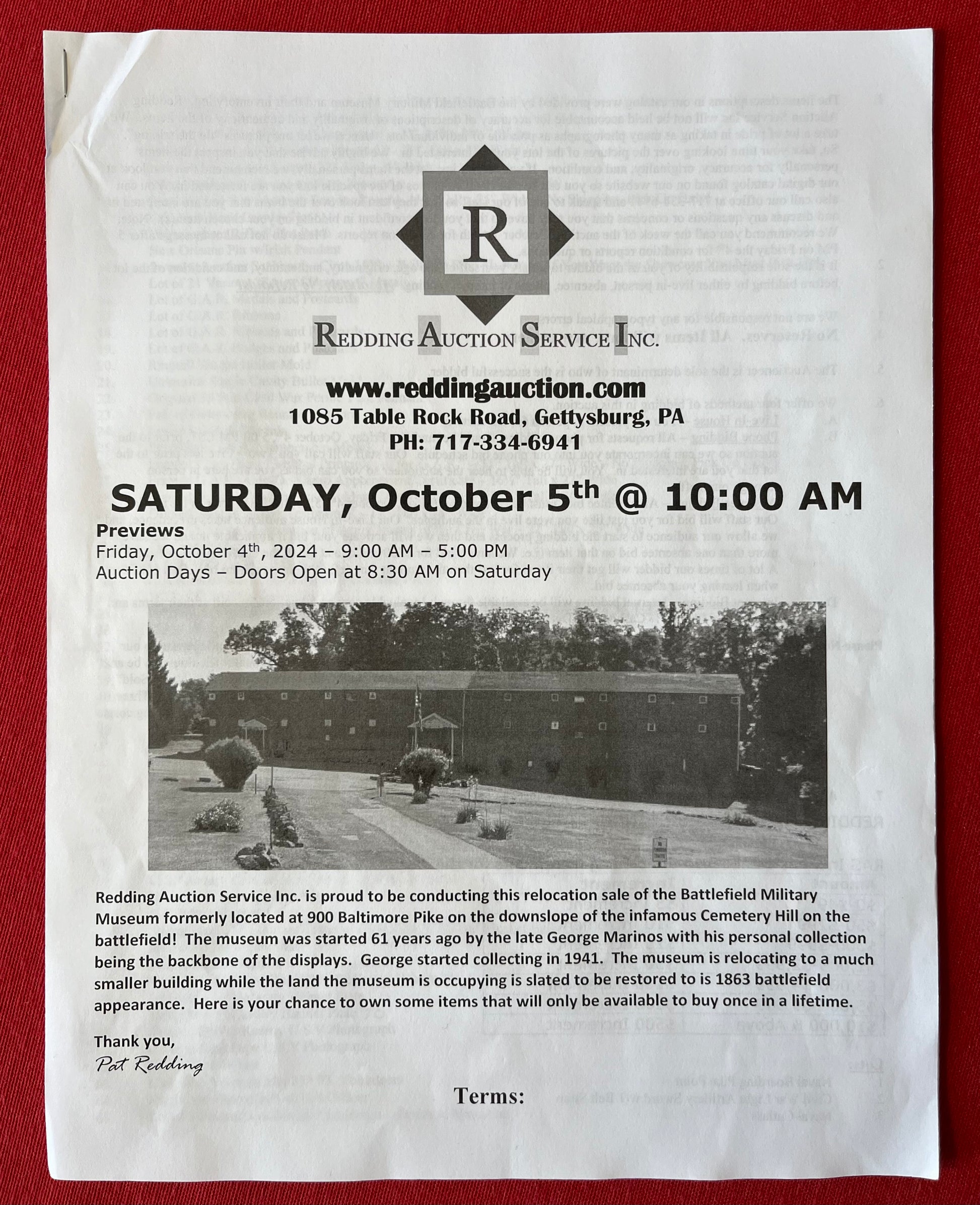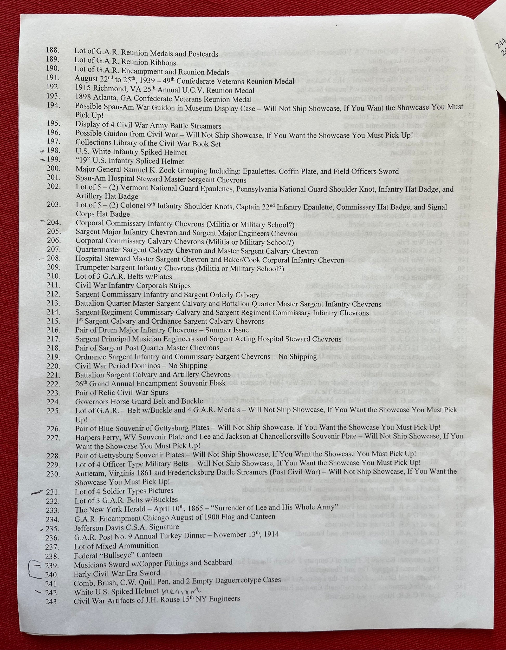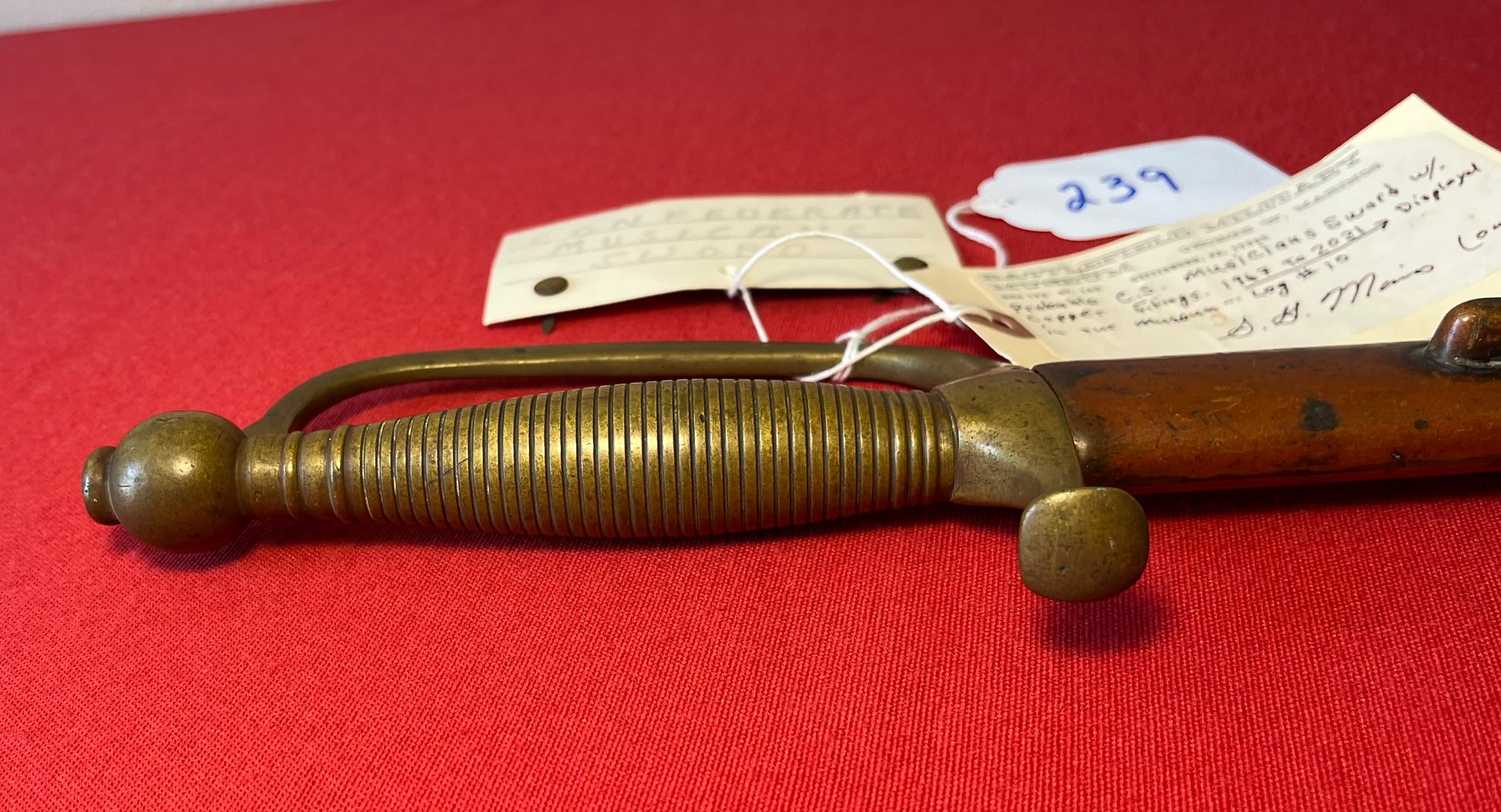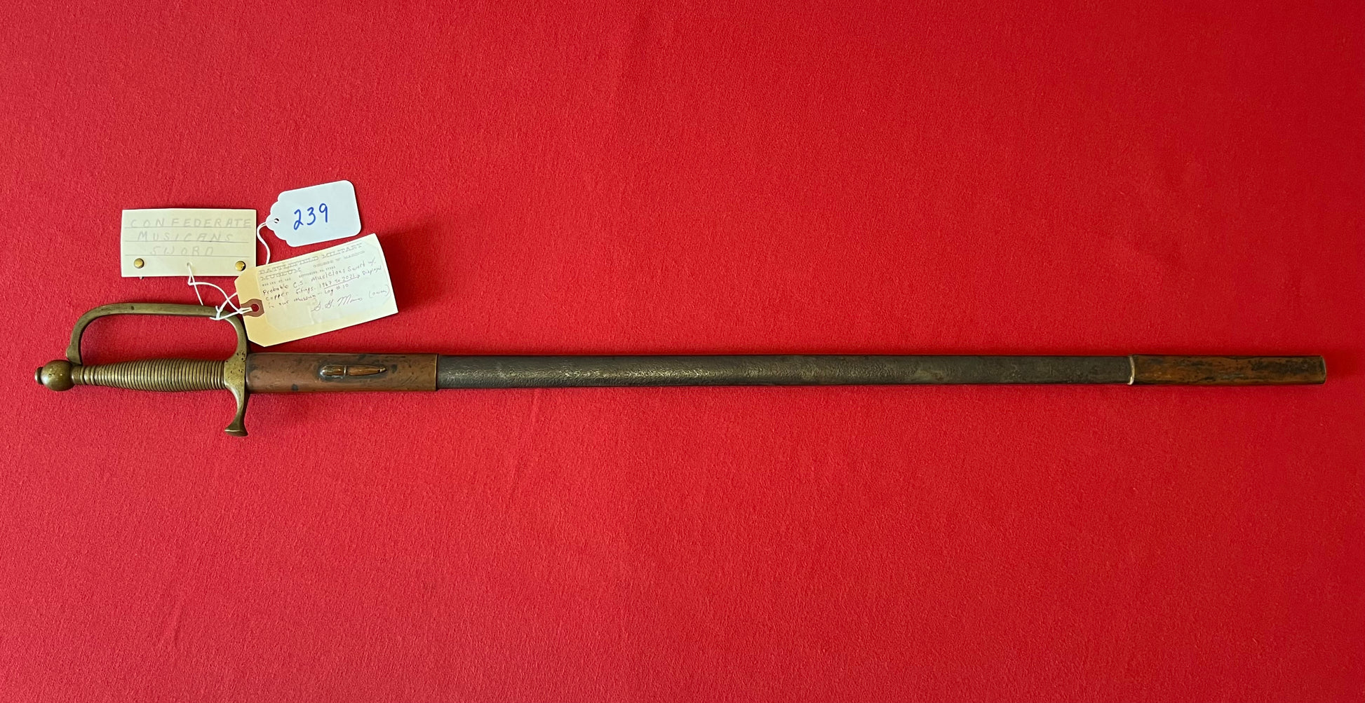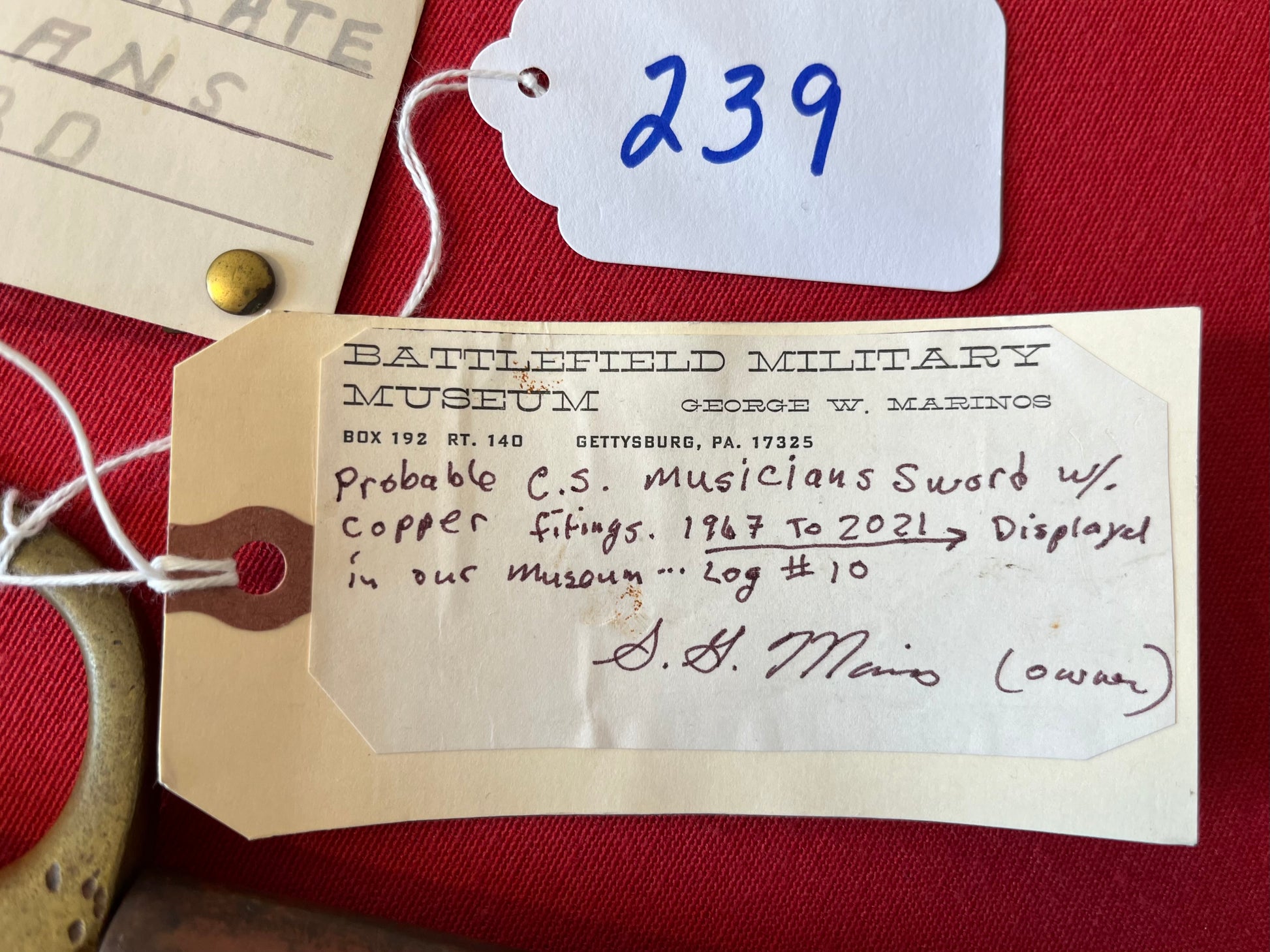 From the Battlefield Military Museum in Gettysburg, Pa / This sword was purchased from the auction house charged with the liquidation sale / Auction flyer and tag included in purchase (showing the item number with its classification in the flyer) The sword still retains both of its original museum tags / This sword was displayed in the museum from 1967 to 2021 as the tag indicates and is signed by the museum owner George Marinos / I personally purchased this sword at that sale on Saturday, October the 5th 2024