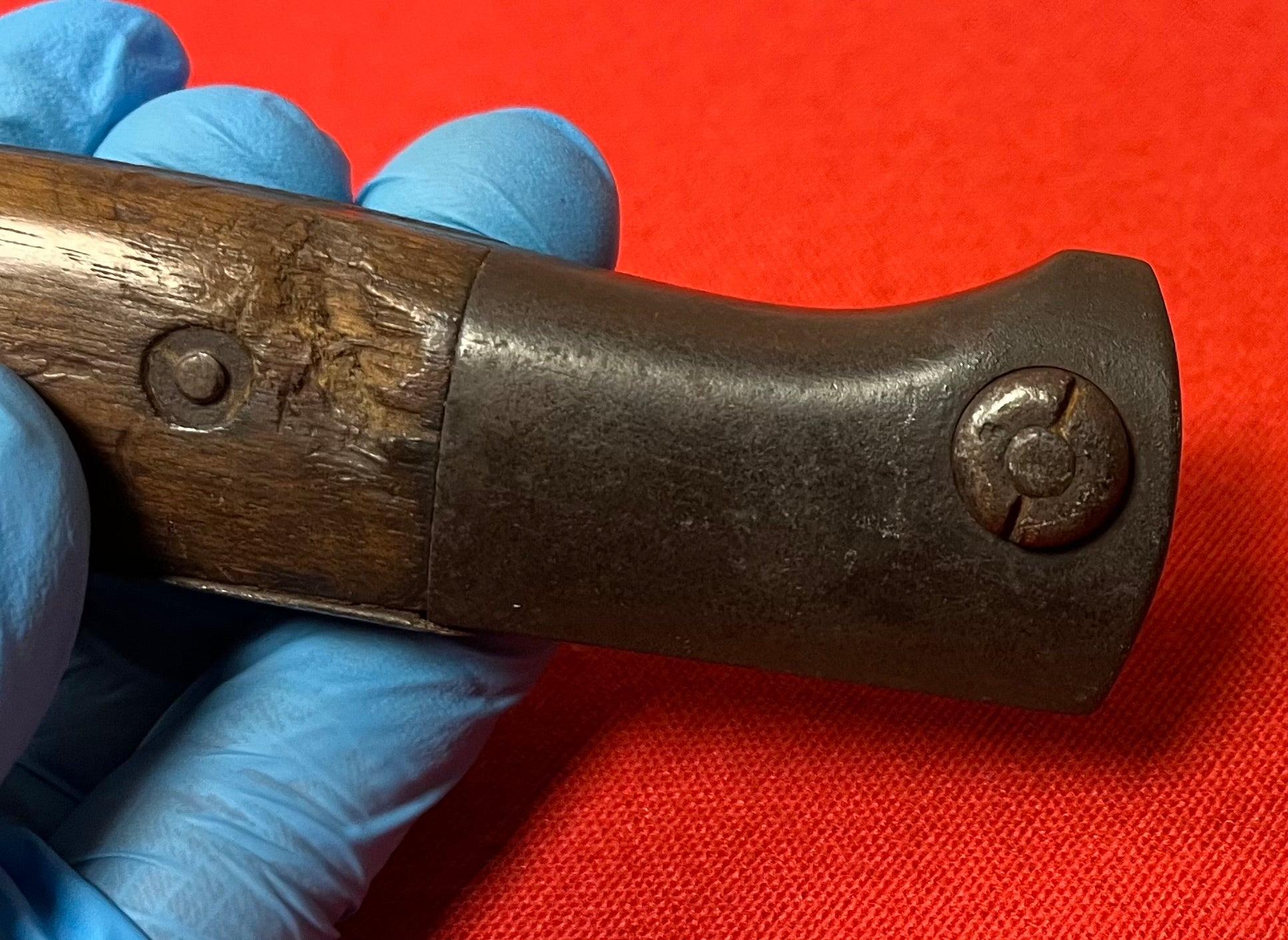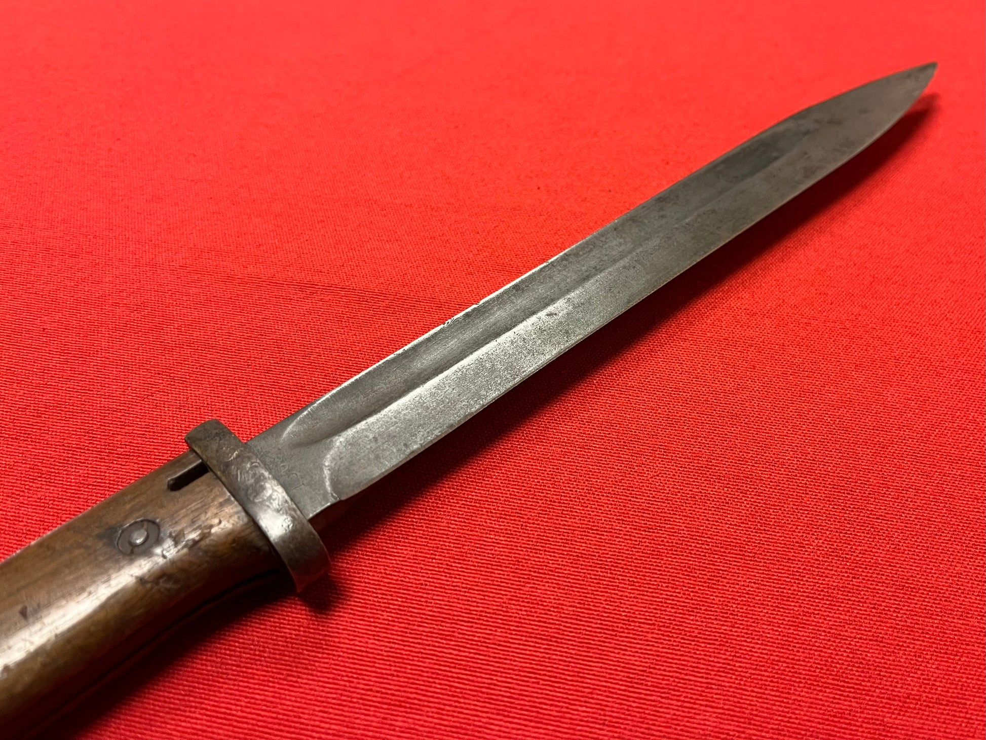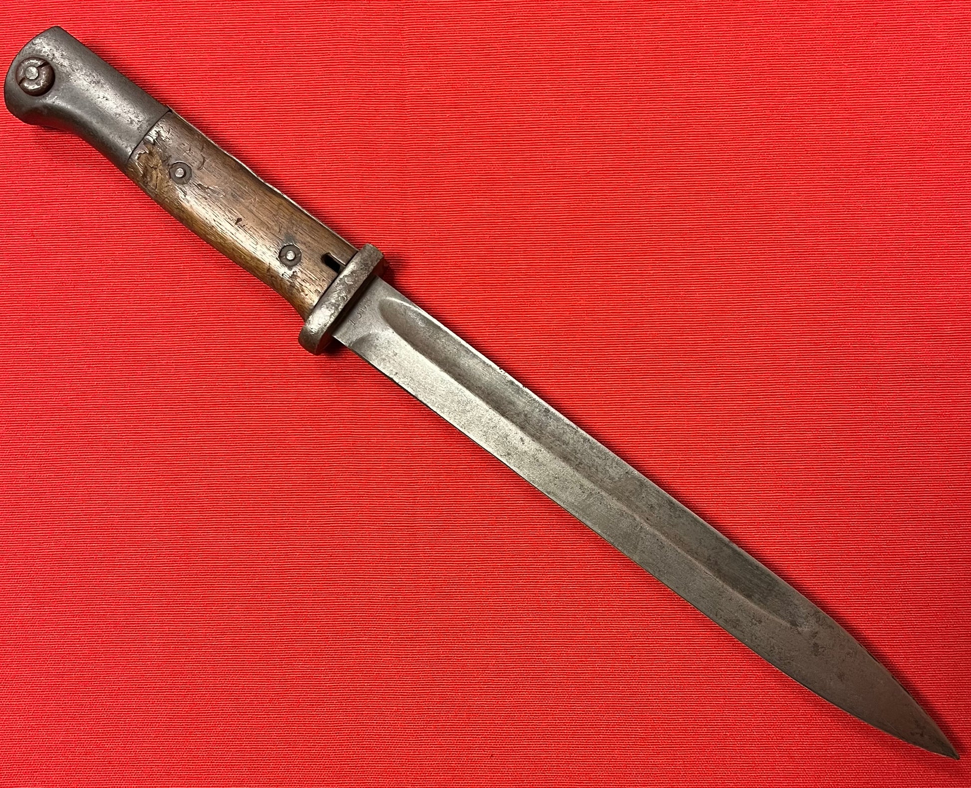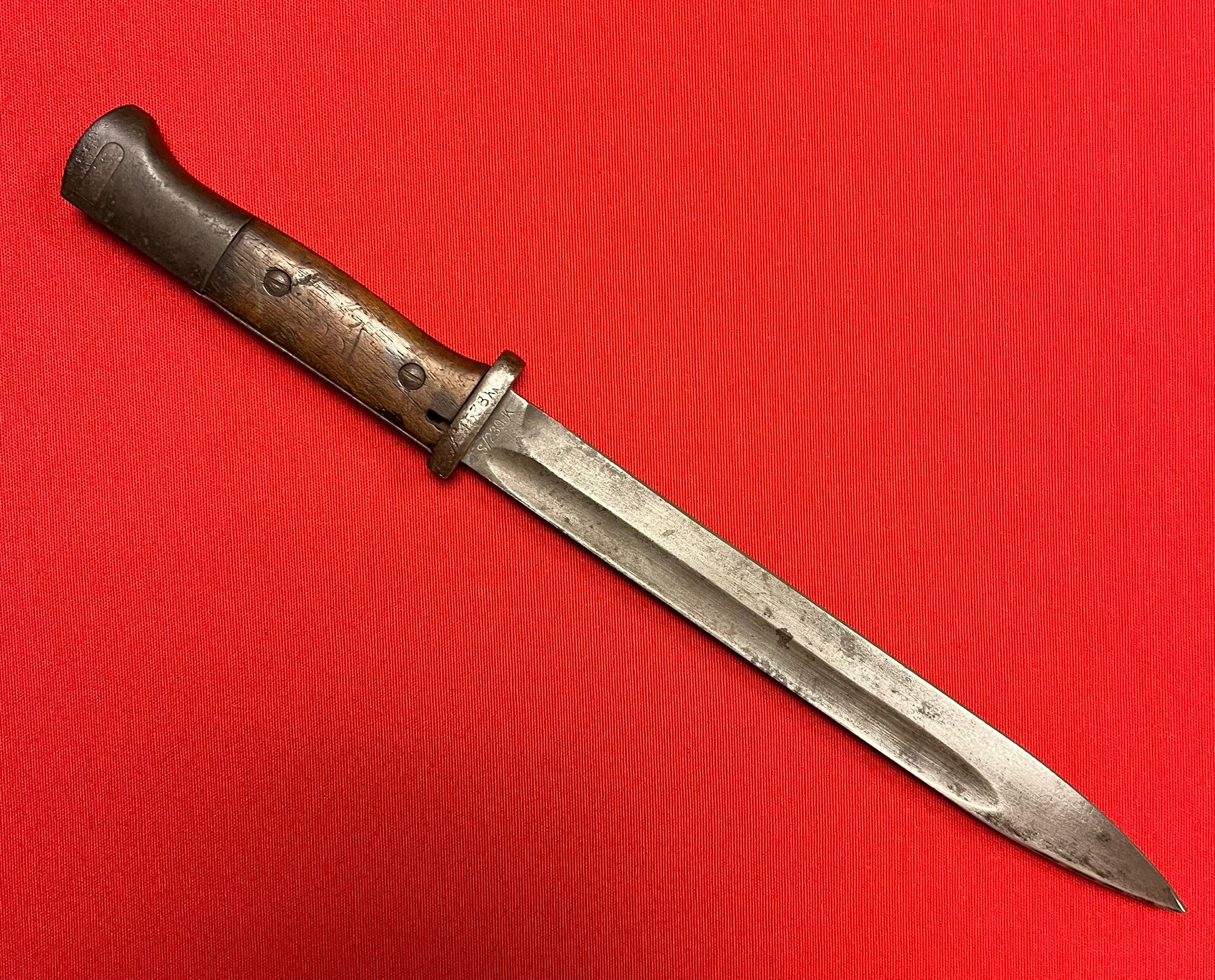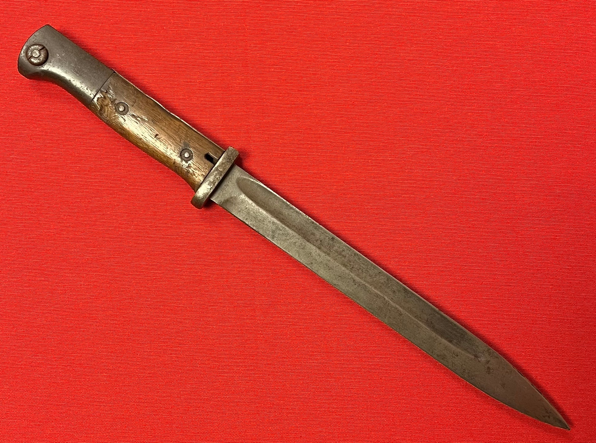 Very Scarce… (Kreigsmarine) German “Navy” K98 bayonet / Early war / Kreigsmarime number NI538K "NORDSEE" indicating that it was issued to navy personnel at Marinestation Nordsee / Numbered S/239K (below) on ricasso as well as 1363 on the reverse / Two WaA stamps on the pommel, button, and spine / Blade length is 9 6/8 inches / Overall length is 15 inches / Scabbard is missing / Blade has a sharpe edge / Wooden grips show some wear / Piece is optional and hard to find