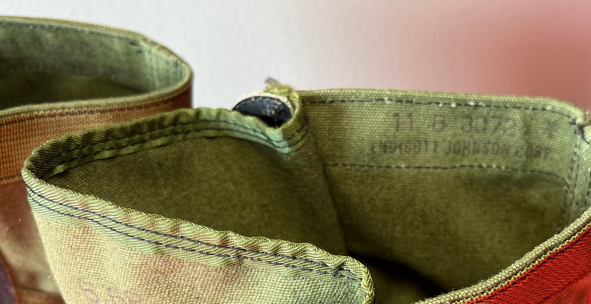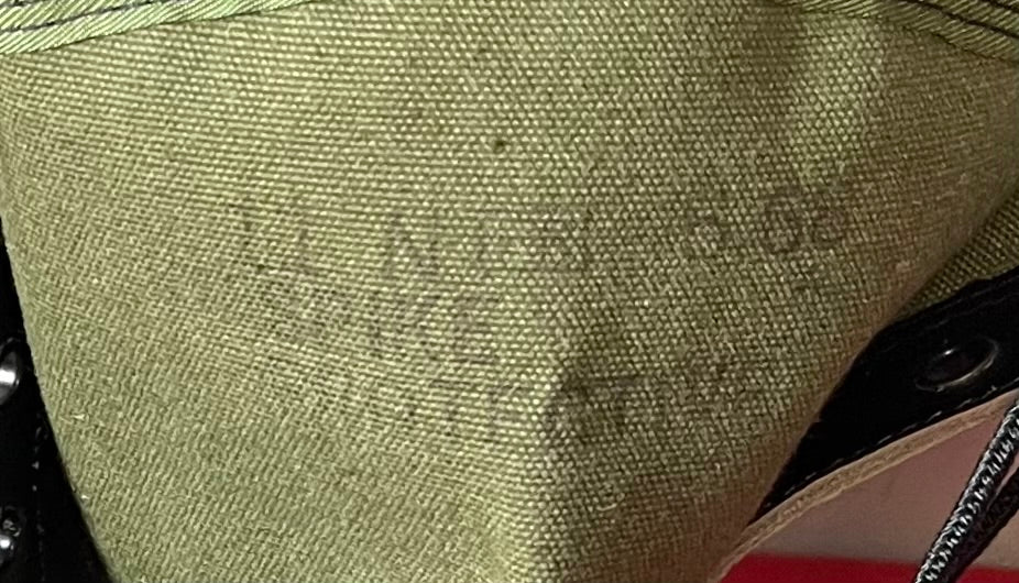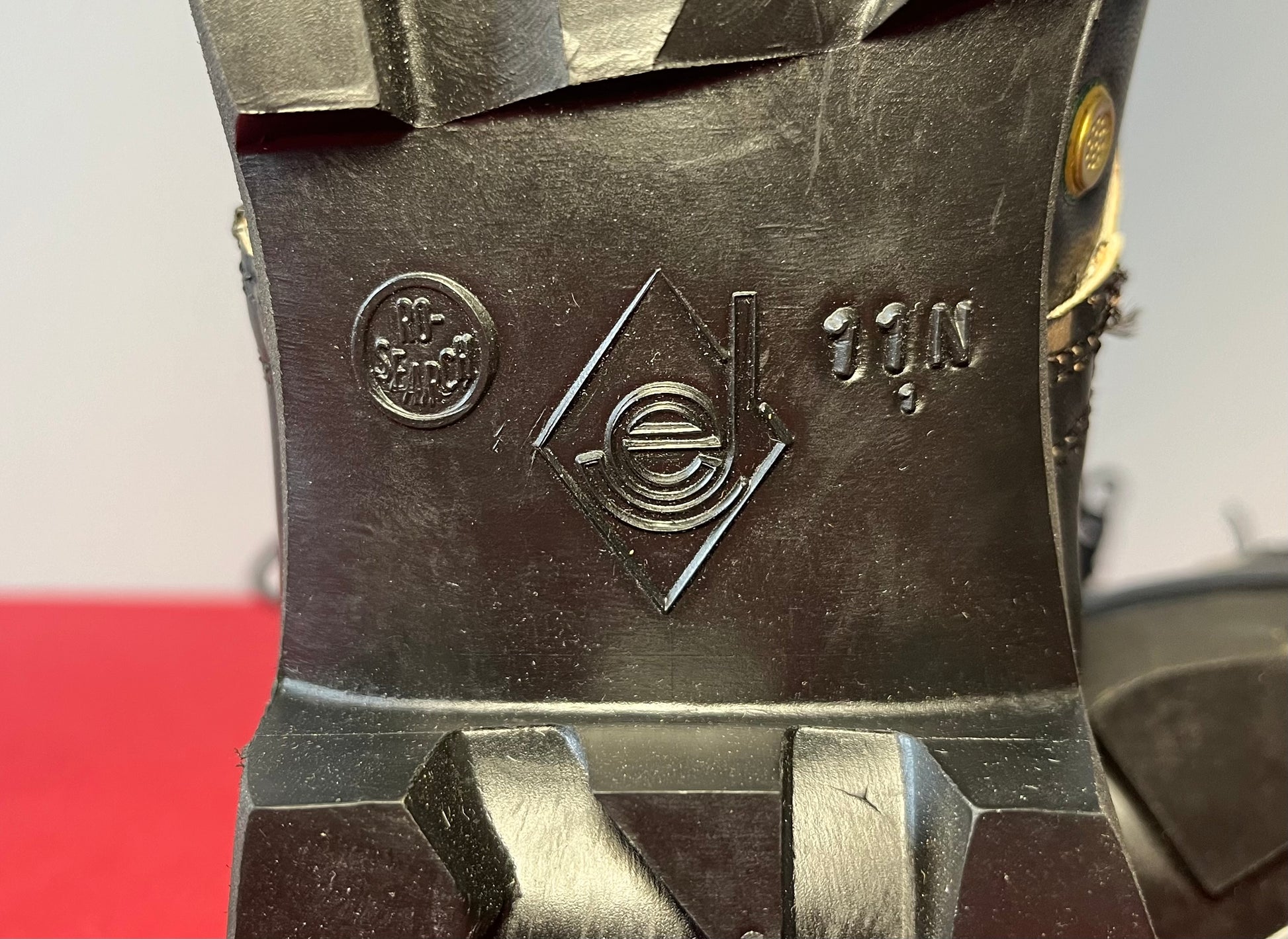 Authentic / N.O.S. / Government issued tag still in place / Size 11 B / Spike protective sole / Manufactured by Indicott Johnson Corp.