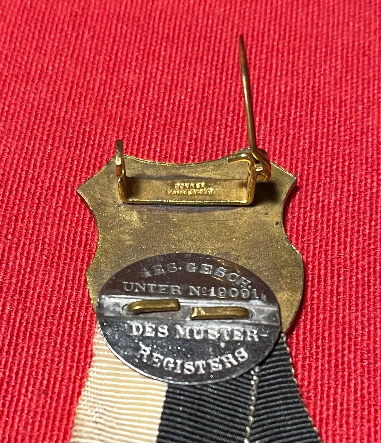 WW1 Prussian Kriegerverband Veterans Badge, Prussian National Warrior League. Maker marked reverse, Ges Gesch No. 19091
