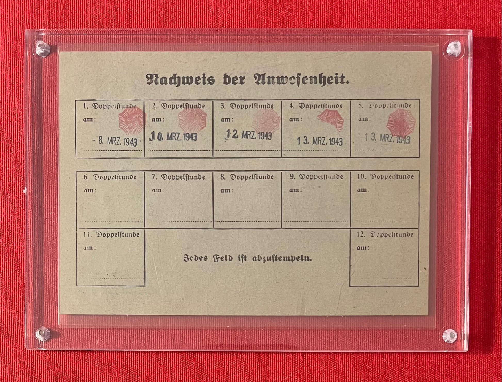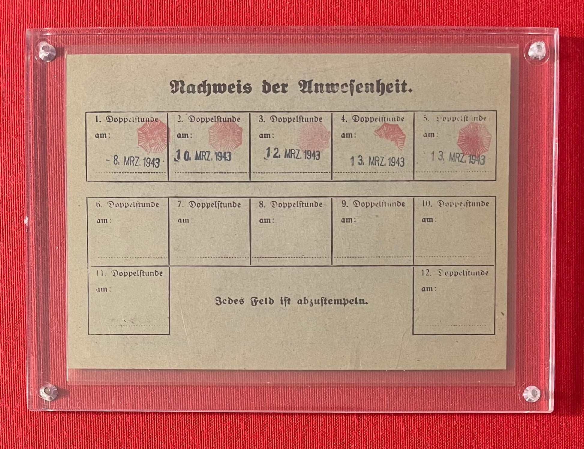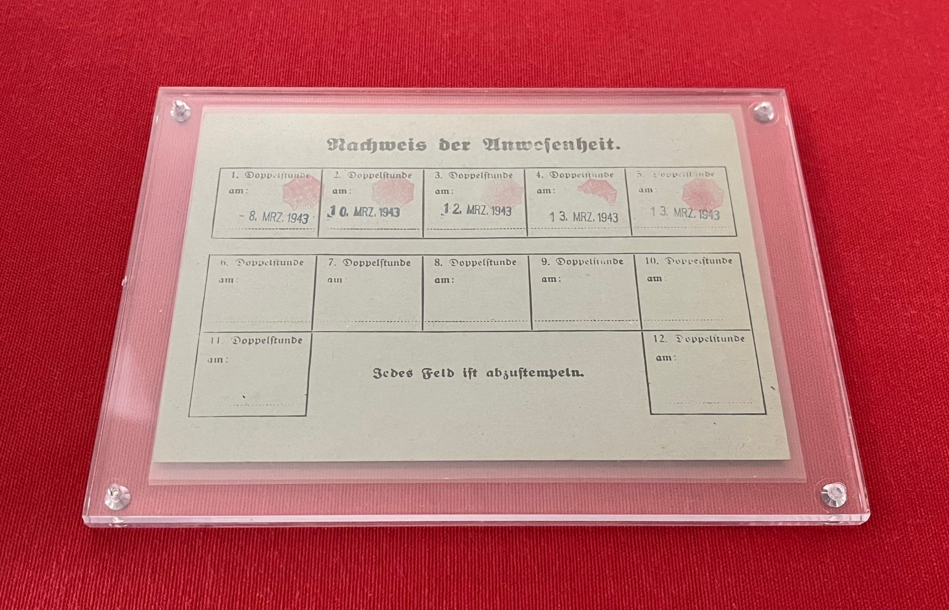 WW2 German 1943 NSDAP (Nazi Party)Training Course Certification Card