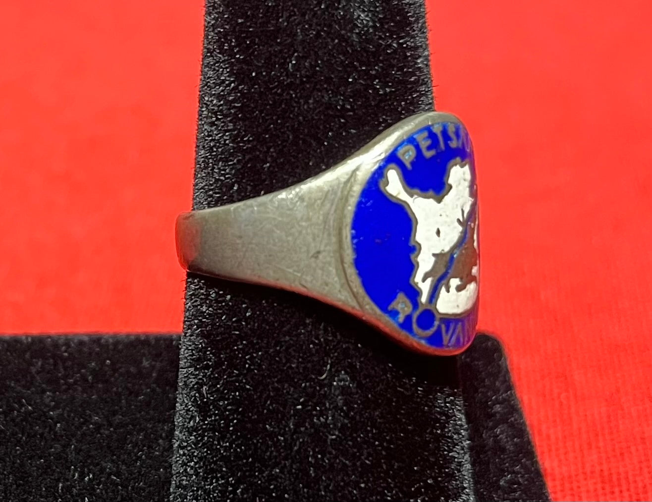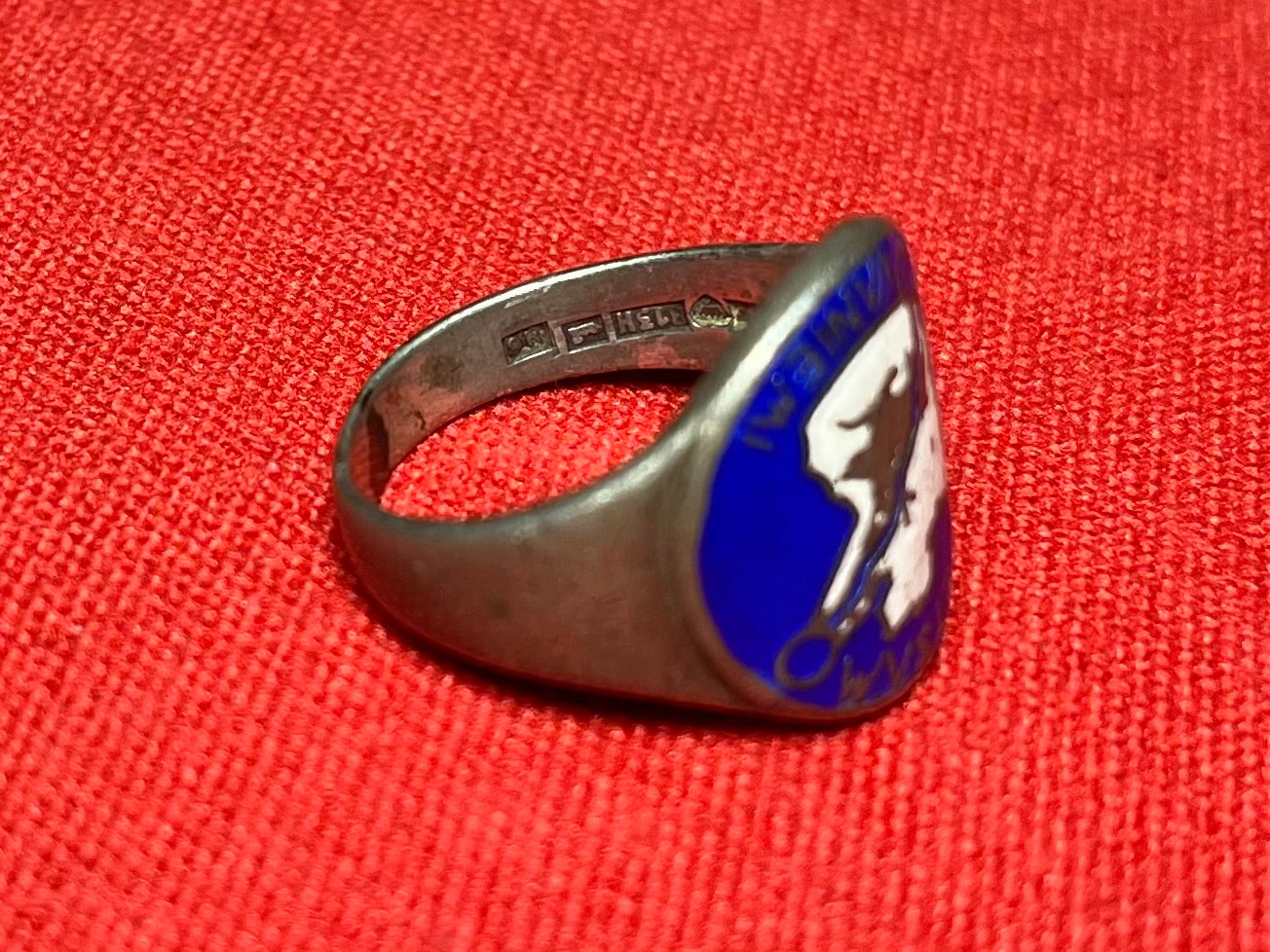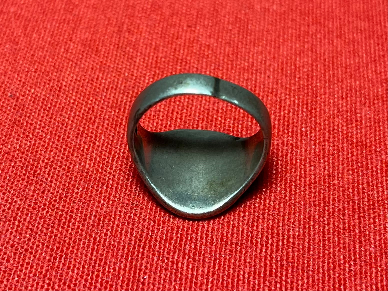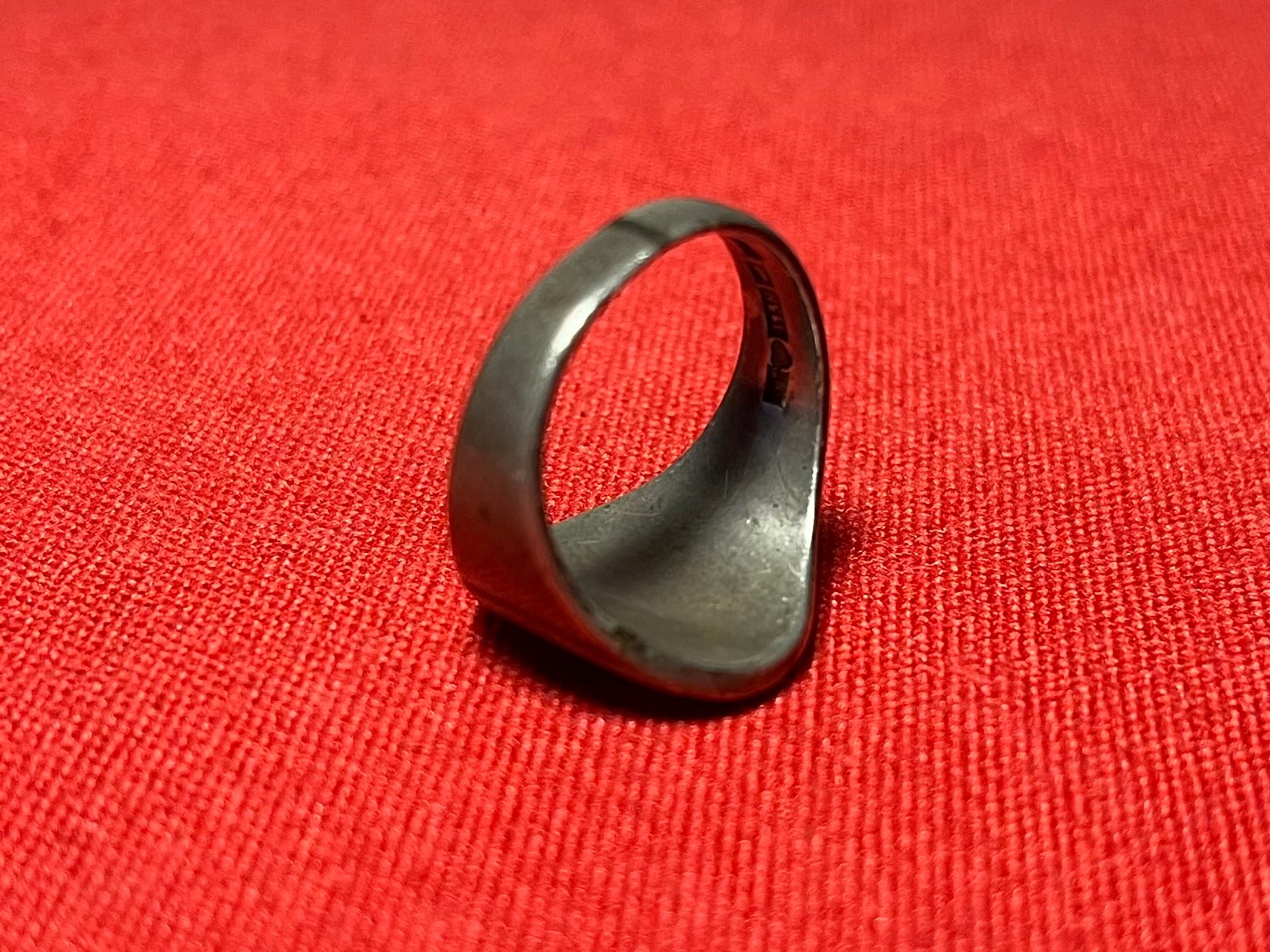 This ring was given to soldiers involved in the 820 km winter march from Petsamo to Rovaniemi in Lapland (Finland) which took place from October 25th through December 2nd, 1941 / German "allies" ring / Finnish hallmarks inside of ring / Blue enamel face / Ring is constructed of silver / General wear with age / Size of ring is 10.25 |