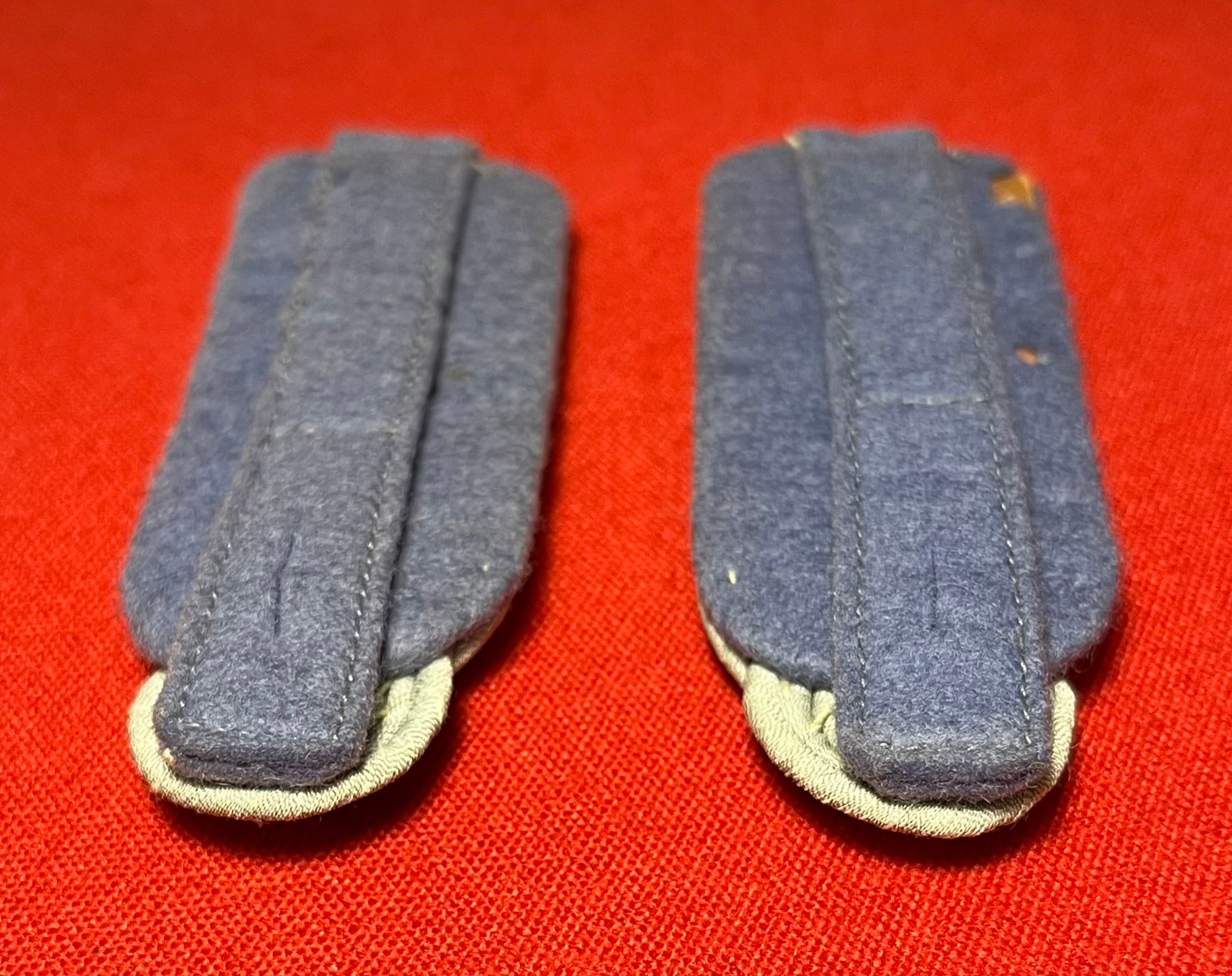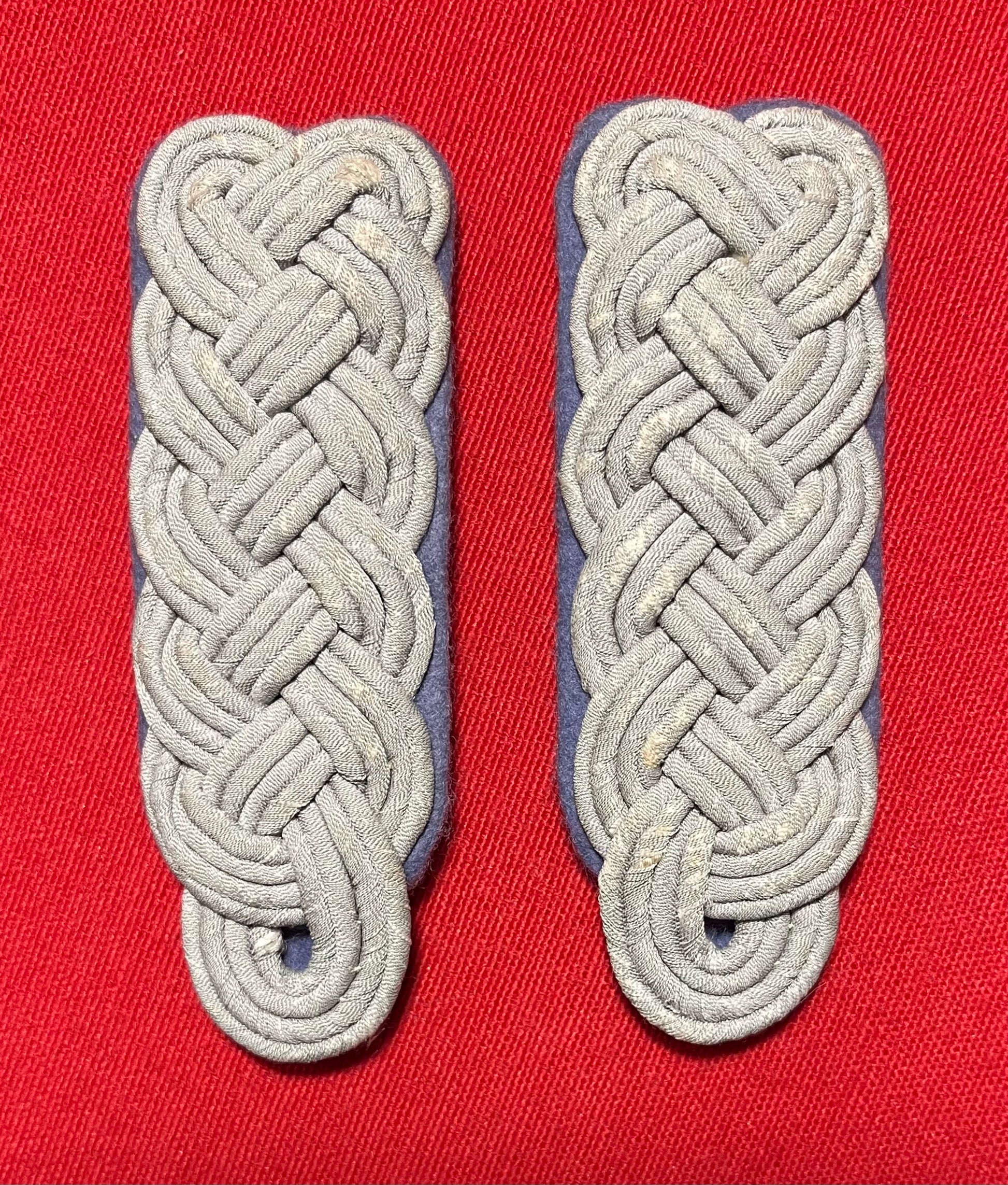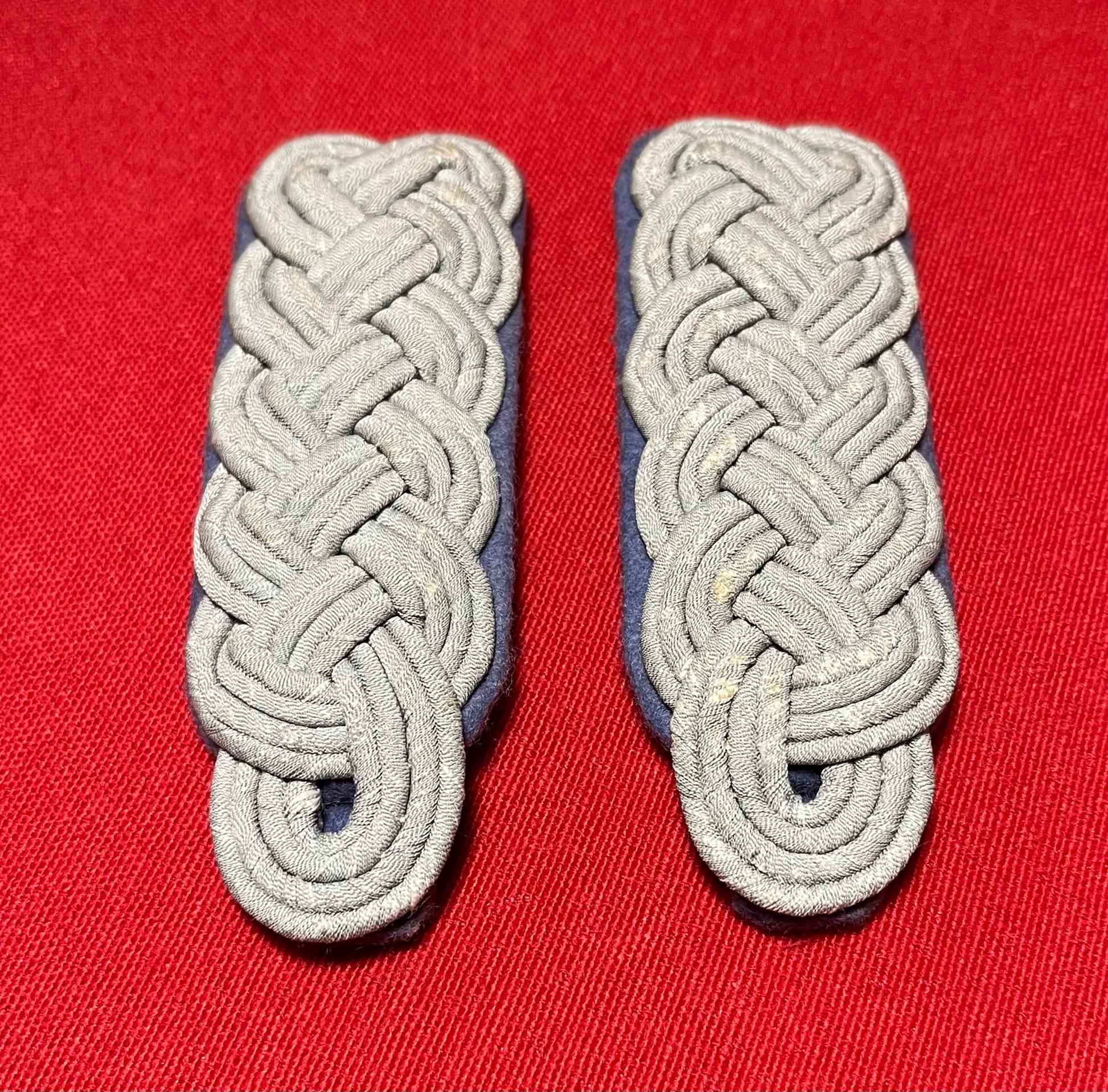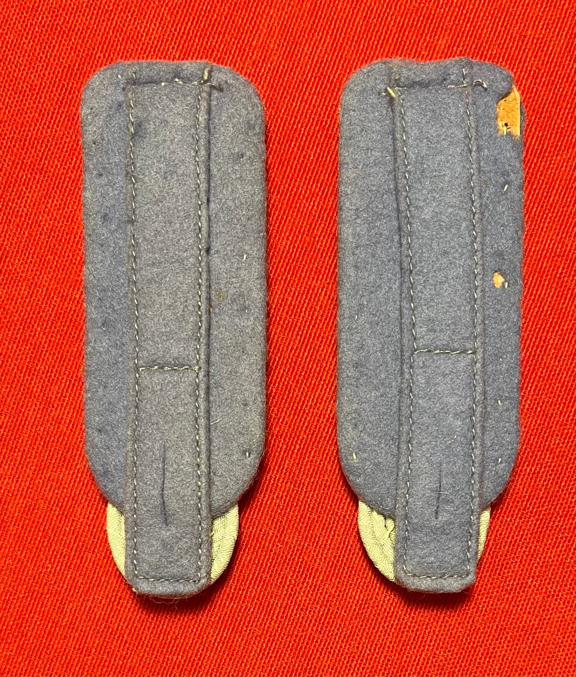 Authentic pair of Heer "Army" rank of (Major) Transportation Officer's (light blue) shoulder boards. Often confused with the (darker blue) for medical. These matching shoulder boards are in nice overall condition with some minimal wear including three small spots on the underside where fabric is missing / 4 x 1 3/8 inches in size / Authenticitty guaranteed