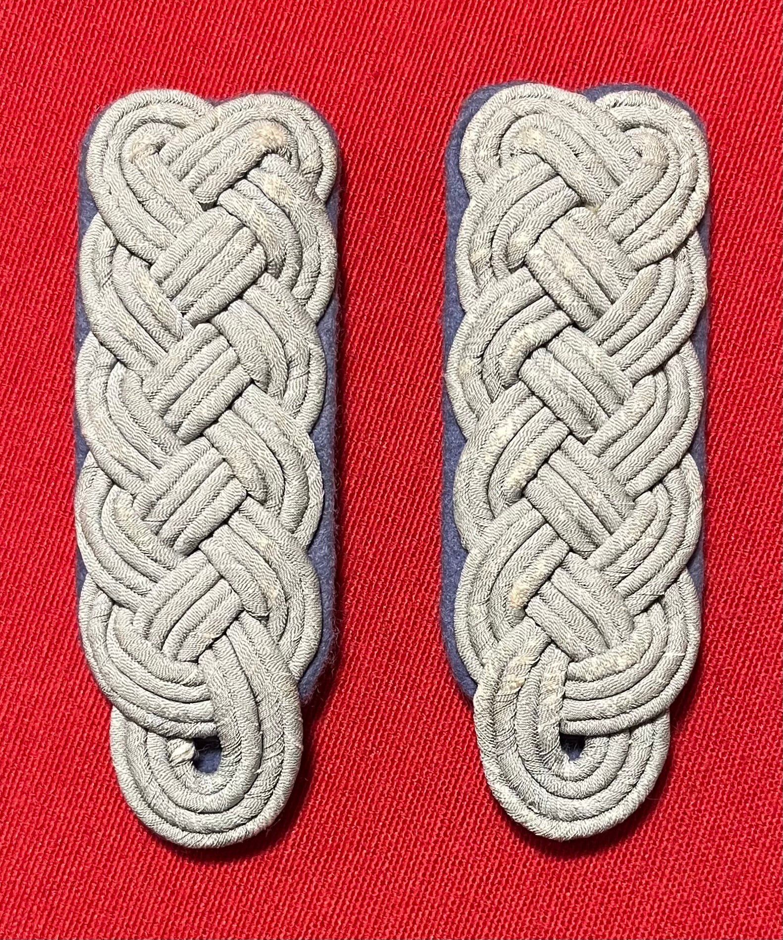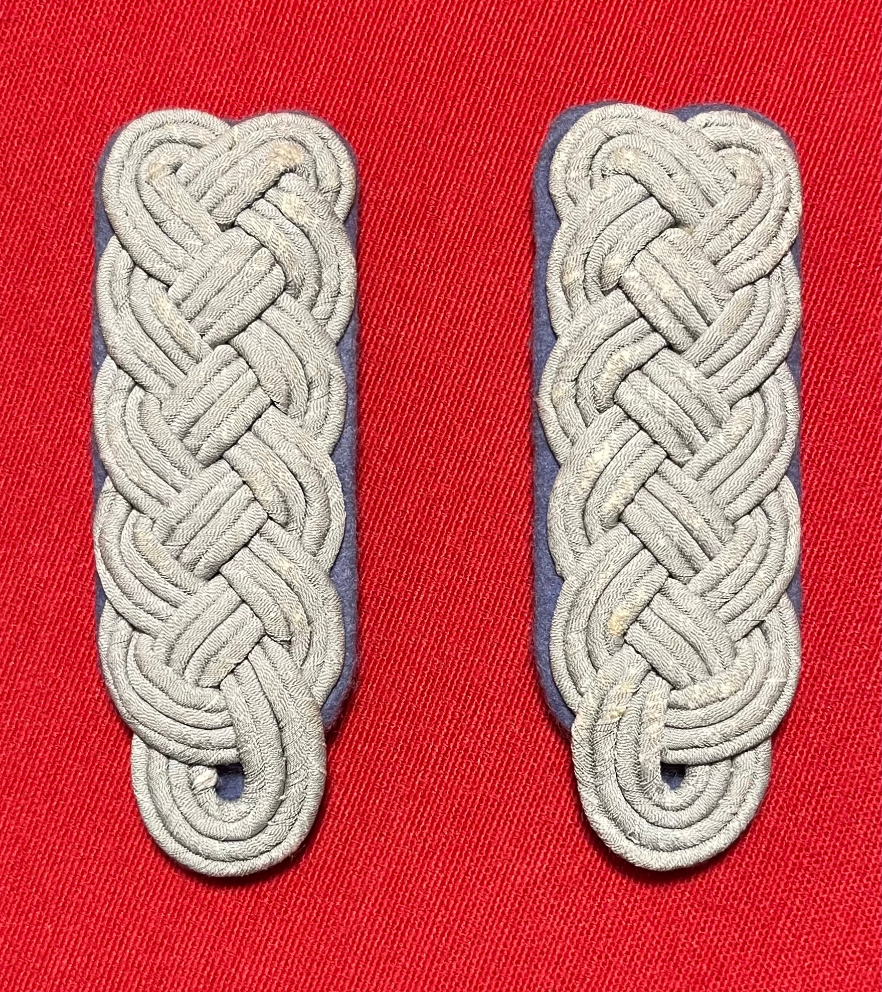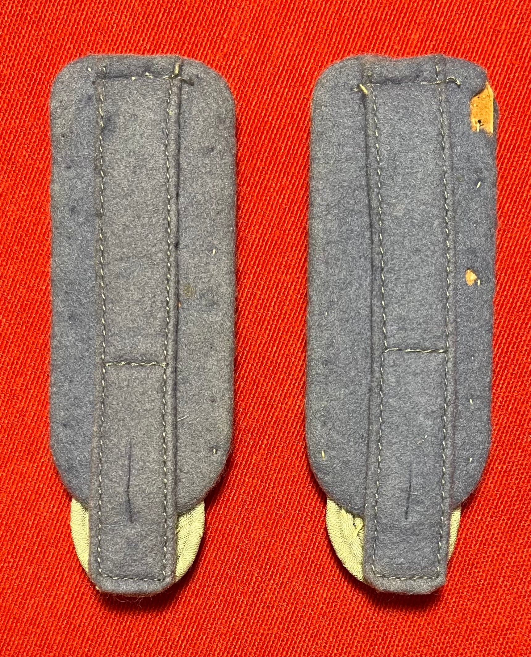 Authentic pair of Heer "Army" rank of (Major) Transportation Officer's (light blue) shoulder boards. Often confused with the (darker blue) for medical. These matching shoulder boards are in nice overall condition with some minimal wear including three small spots on the underside where fabric is missing / 4 x 1 3/8 inches in size / Authenticitty guaranteed