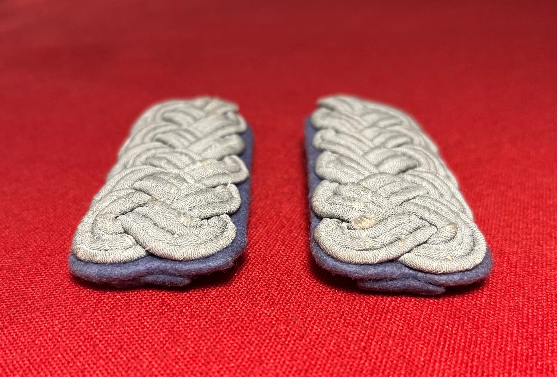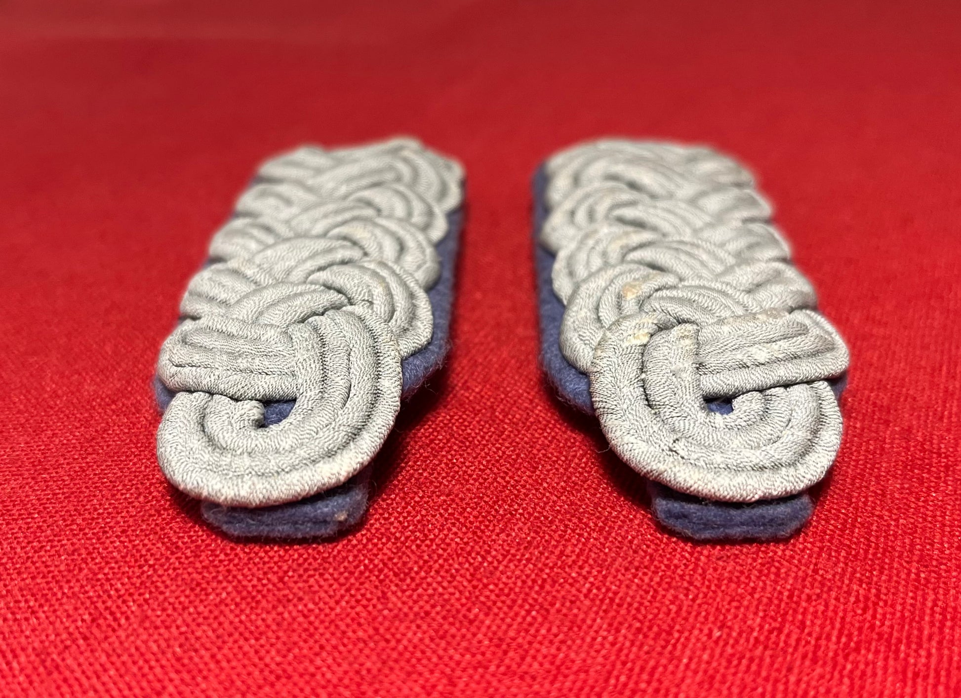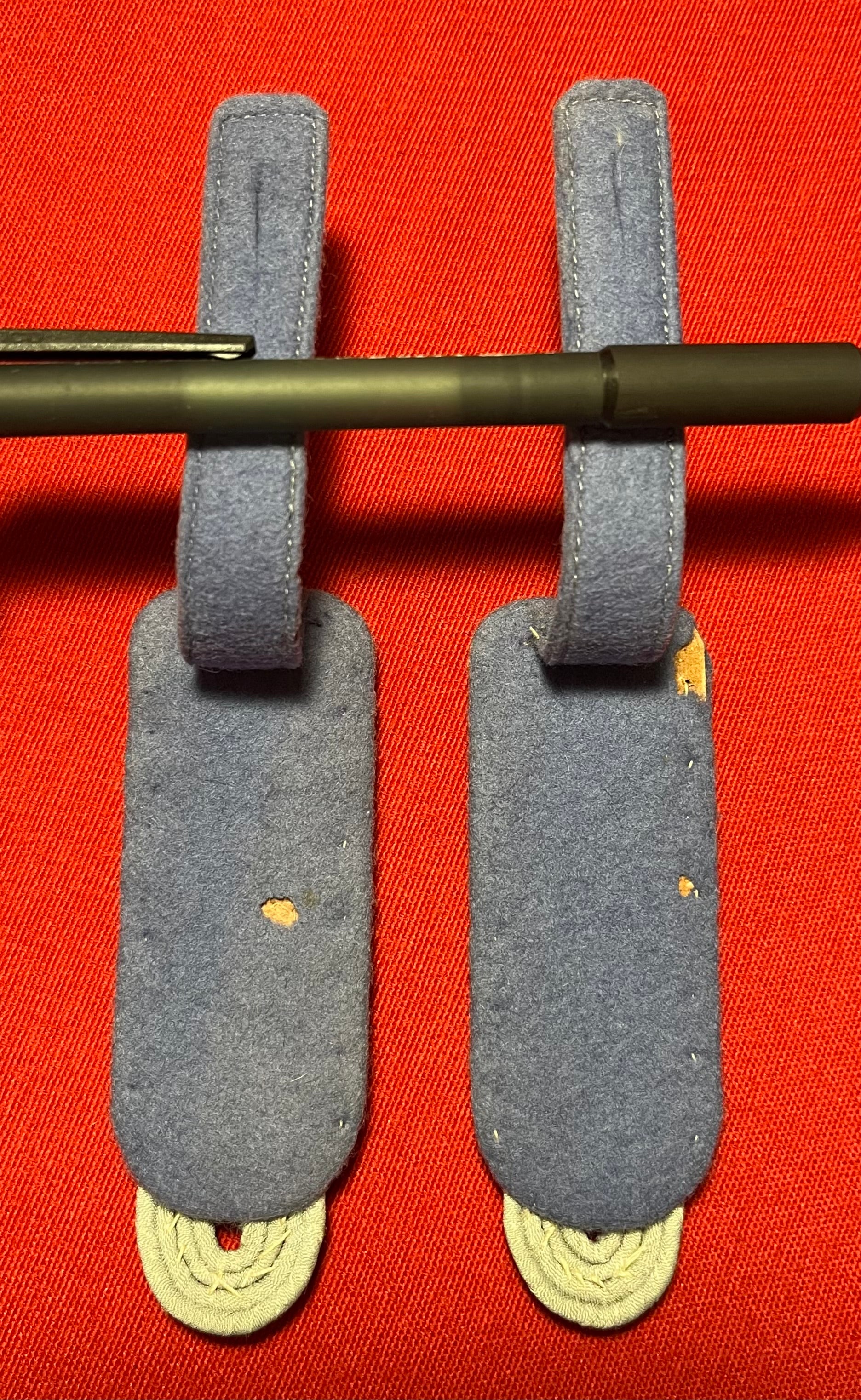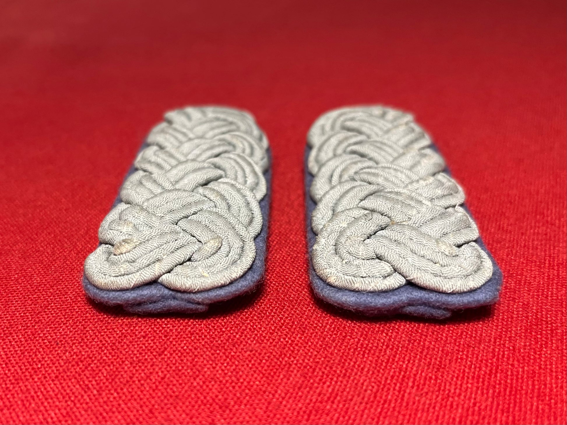 Authentic pair of Heer "Army" rank of (Major) Transportation Officer's (light blue) shoulder boards. Often confused with the (darker blue) for medical. These matching shoulder boards are in nice overall condition with some minimal wear including three small spots on the underside where fabric is missing / 4 x 1 3/8 inches in size / Authenticitty guaranteed