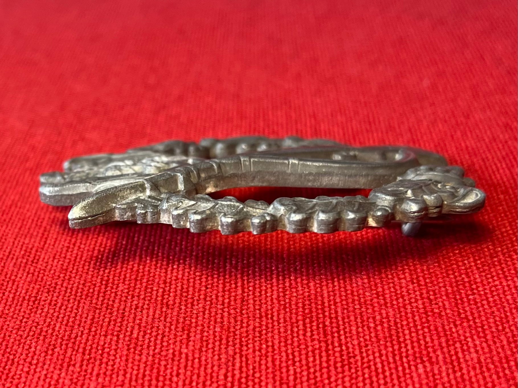 Zinc / 3 Piece construction / This medal type has the scare “riveted mounting bases” Maker marked in the middle F.L.L. Face of medal has some general wear.