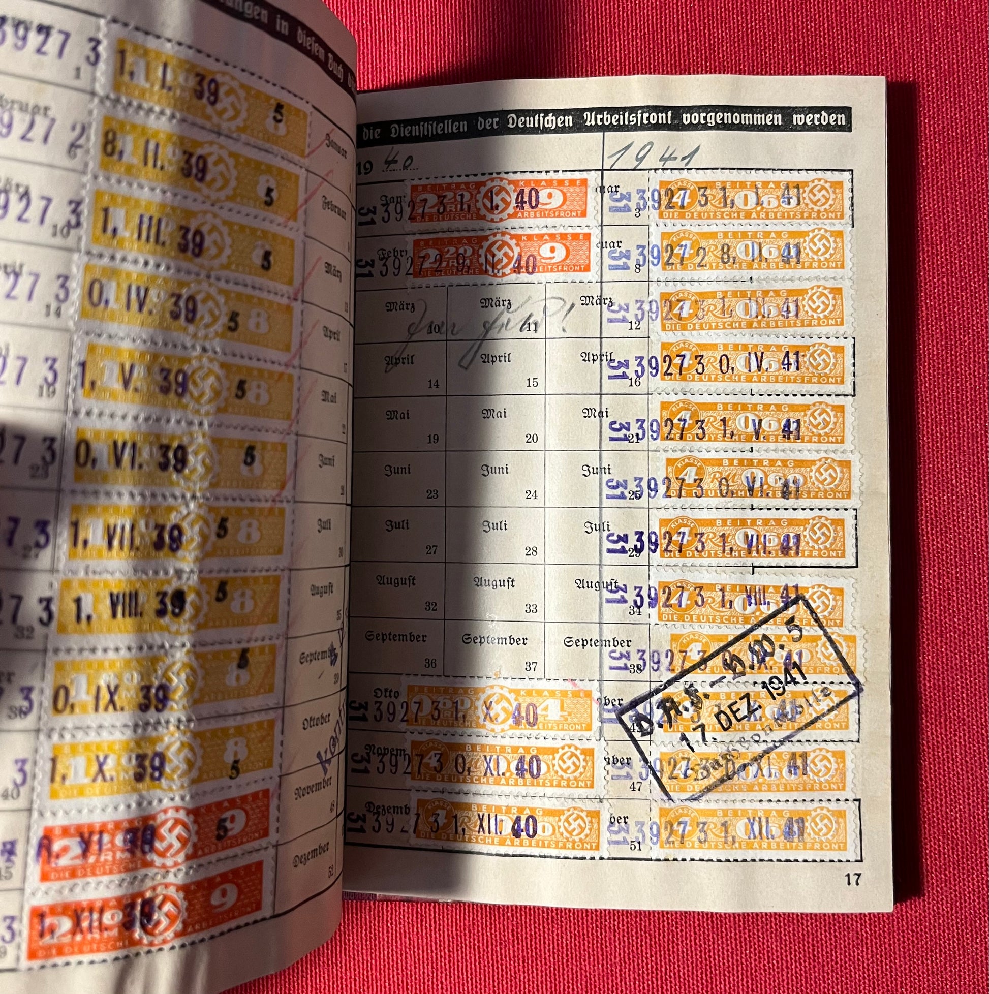 WW2 GERMAN LABOUR FRONT (DAF) MEMBERSHIP BOOK & TRADE UNION PARTY BADGES