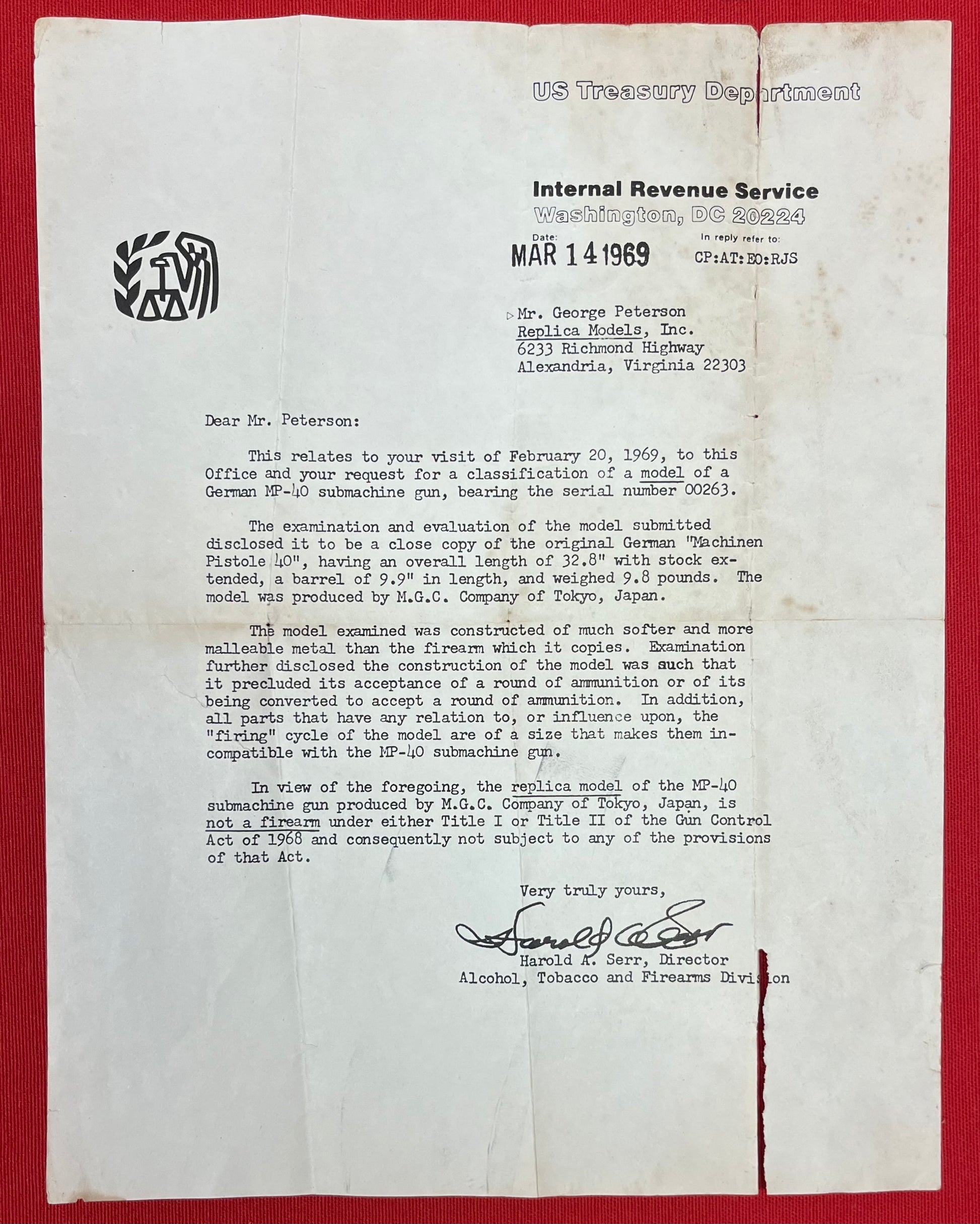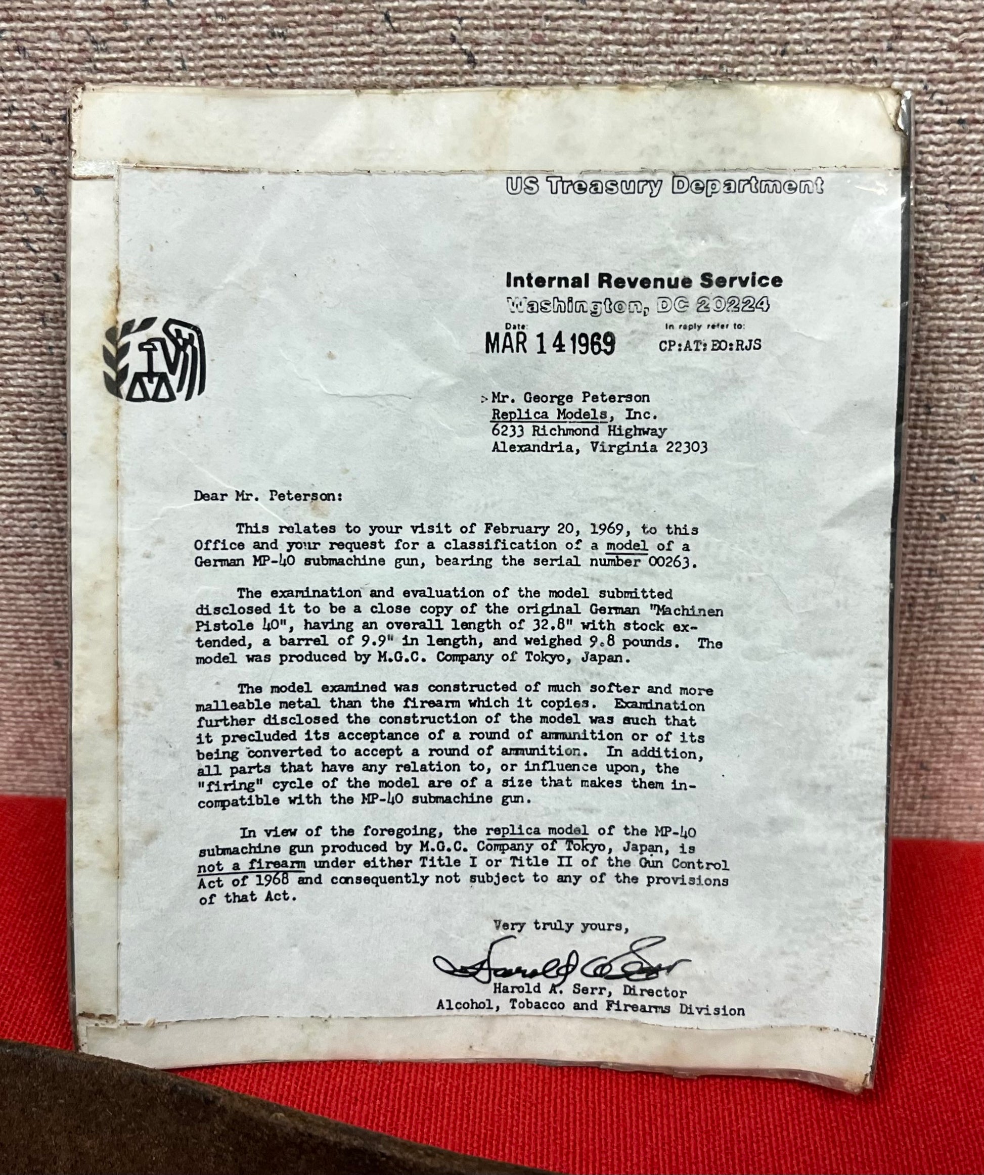 WW2 German MP40 MGC68 Model Gun 1st Generation / Movie Prop + ATF Letters & Case