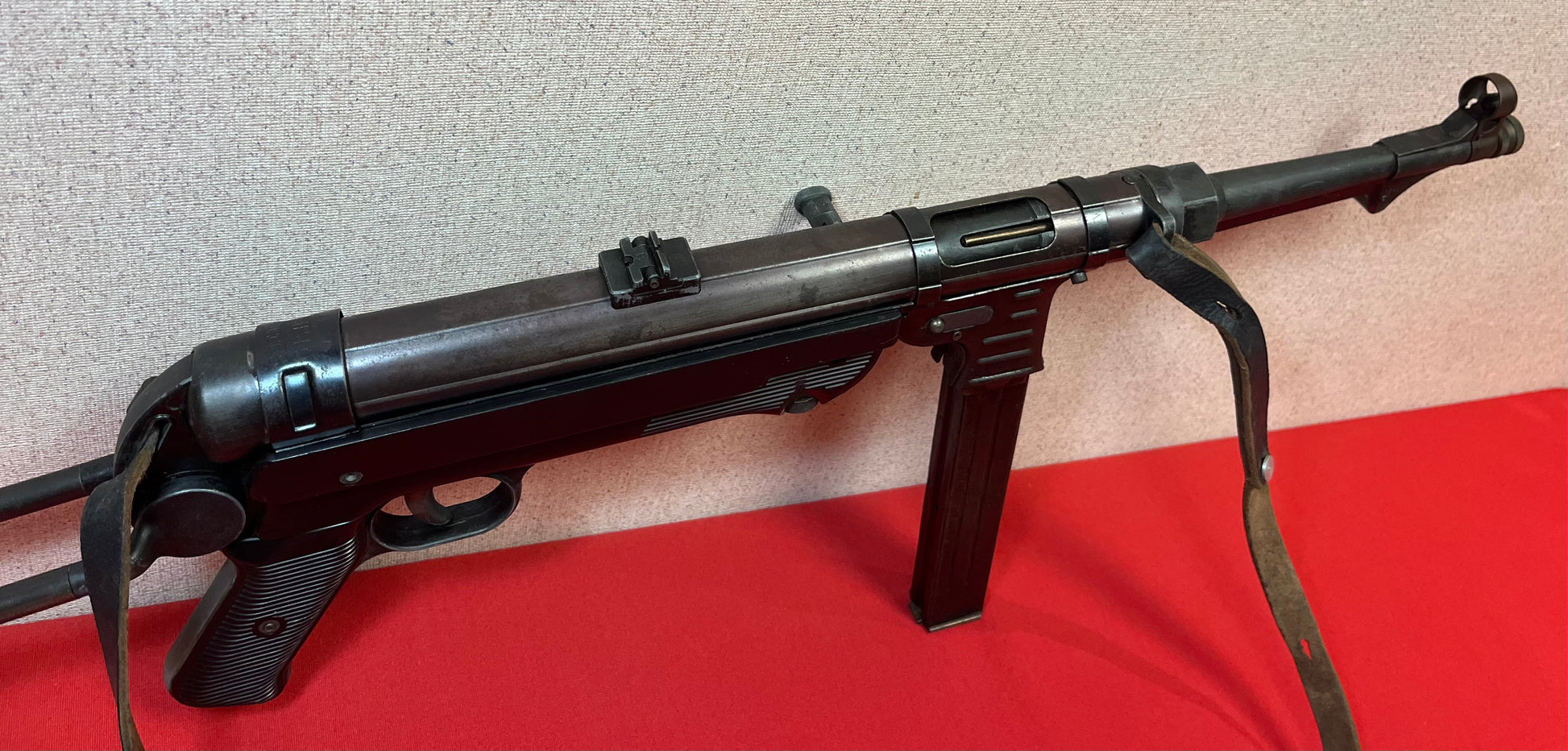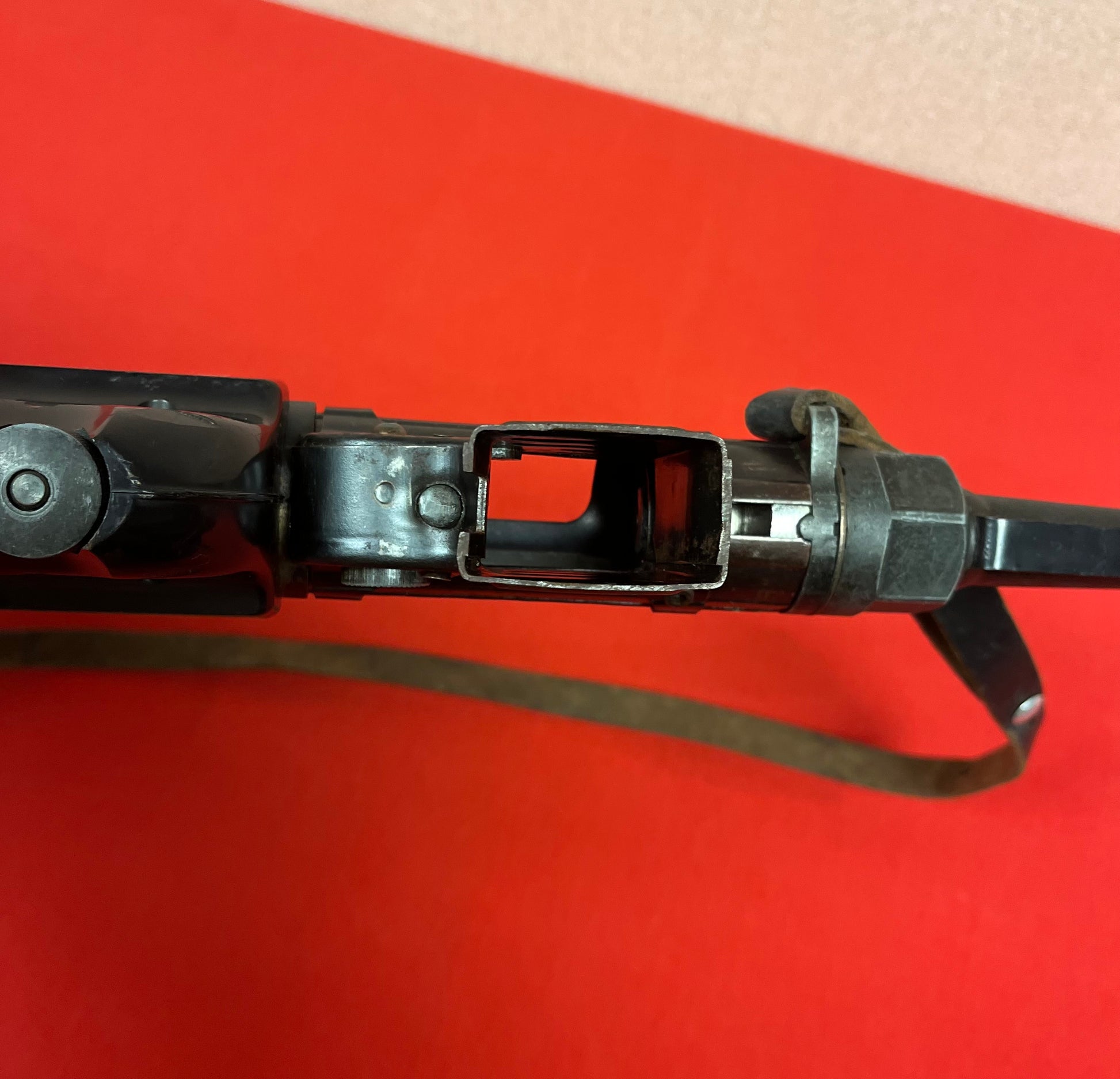 This piece has some spots of light surface rust (controlled with light oil) Amazing overall patina. The slide pulls and rigger engages with ease / Everything appears to be in working order / Sold in "As-Is" condition / Markings found are... MP40 / mgc68 / Serial number "16431" by the muzzle / Overall length is 24 inches