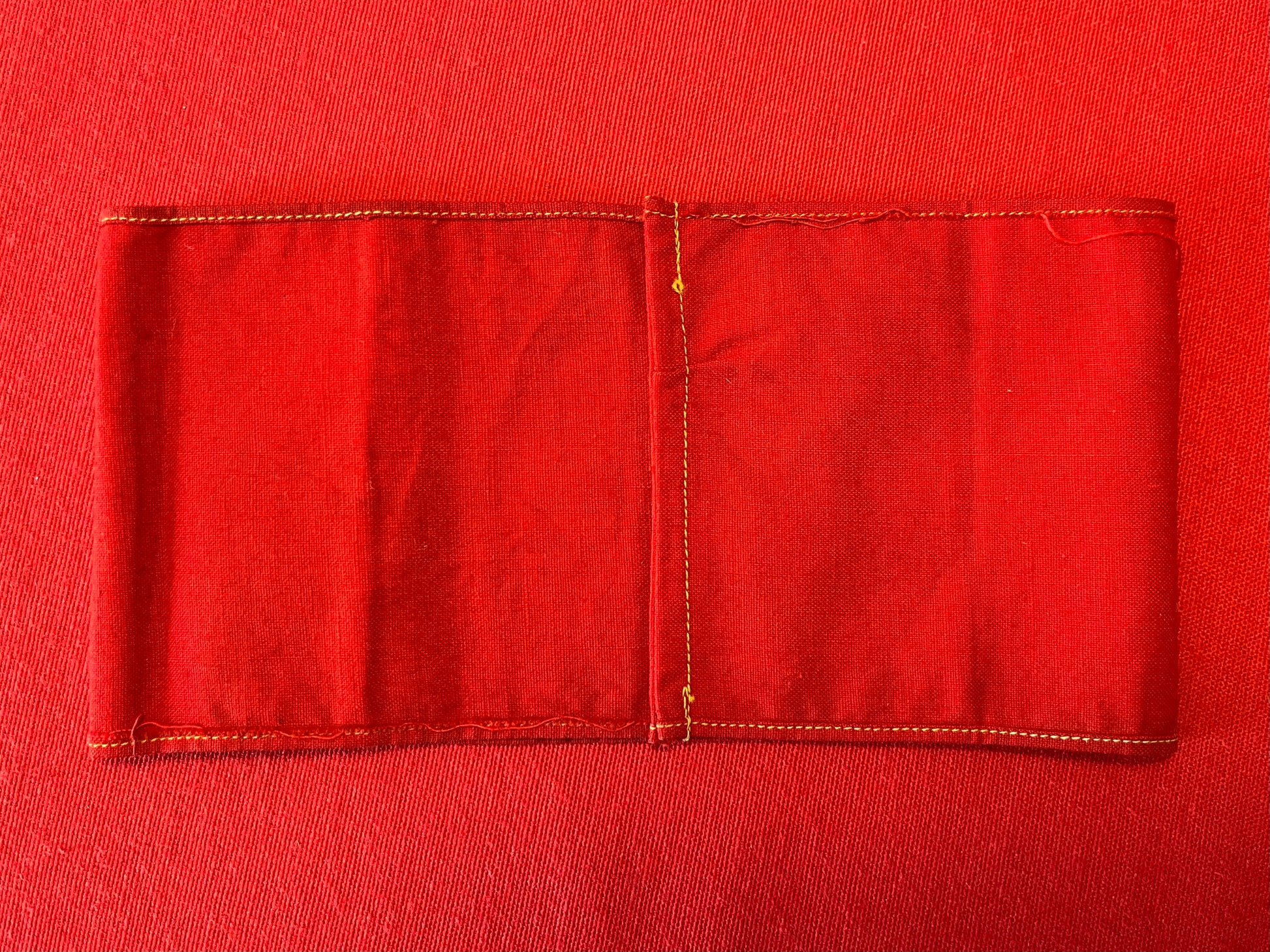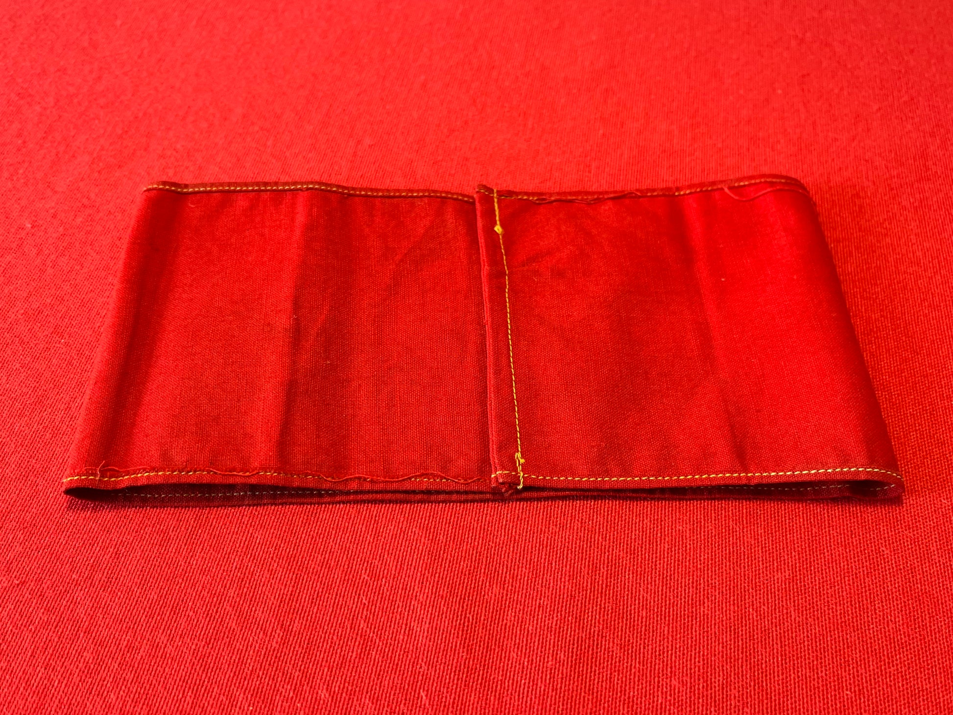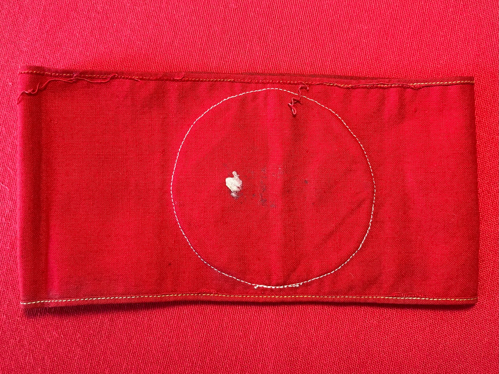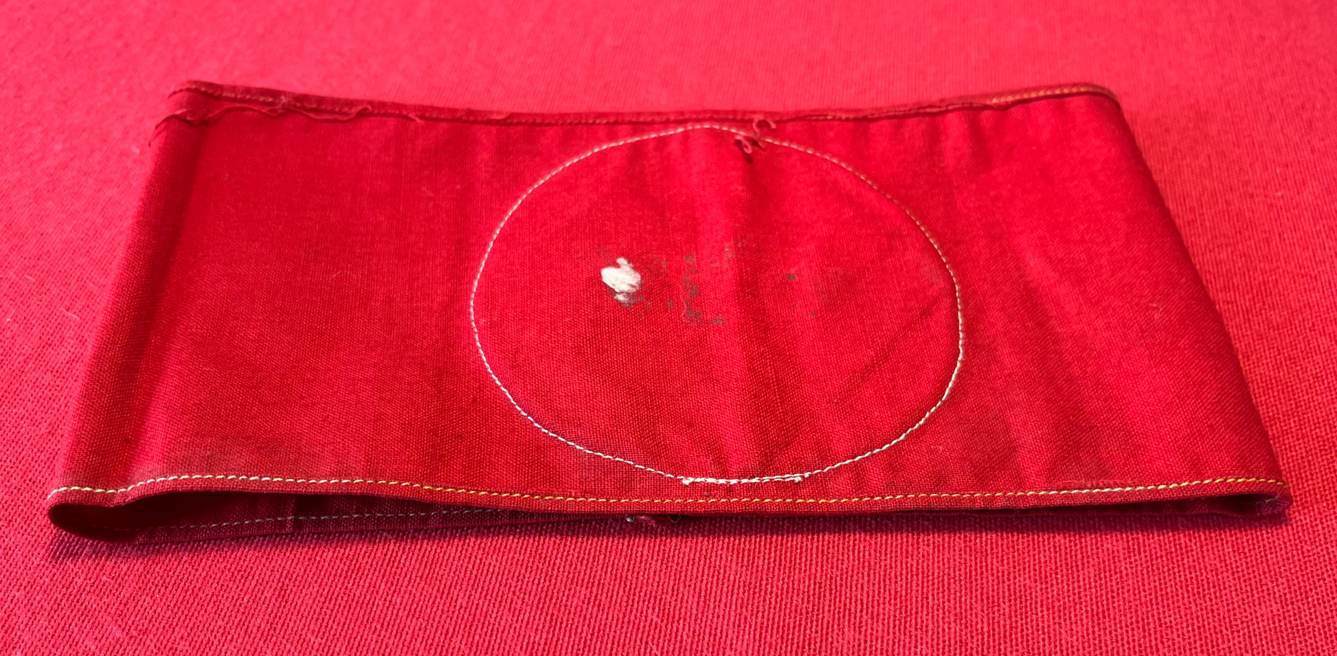 Authentic / Armband is constructed of 2 pieces / Swastika is stitched / Yellow stitching around the border / Inside armband has a paper piece and light adhesive where the makers tag was attached