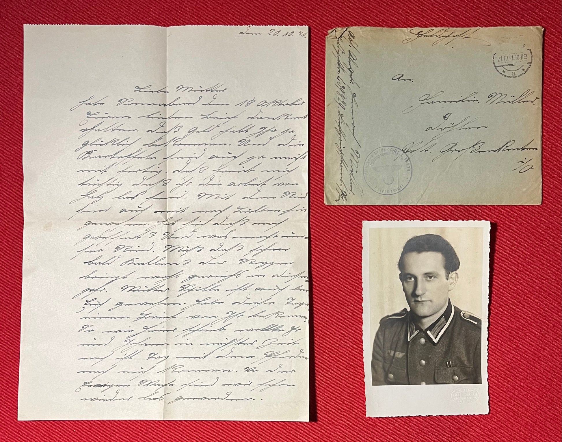 WW2 German Soldier's Correspondence Letter Grouping with Cover & Photo 1941