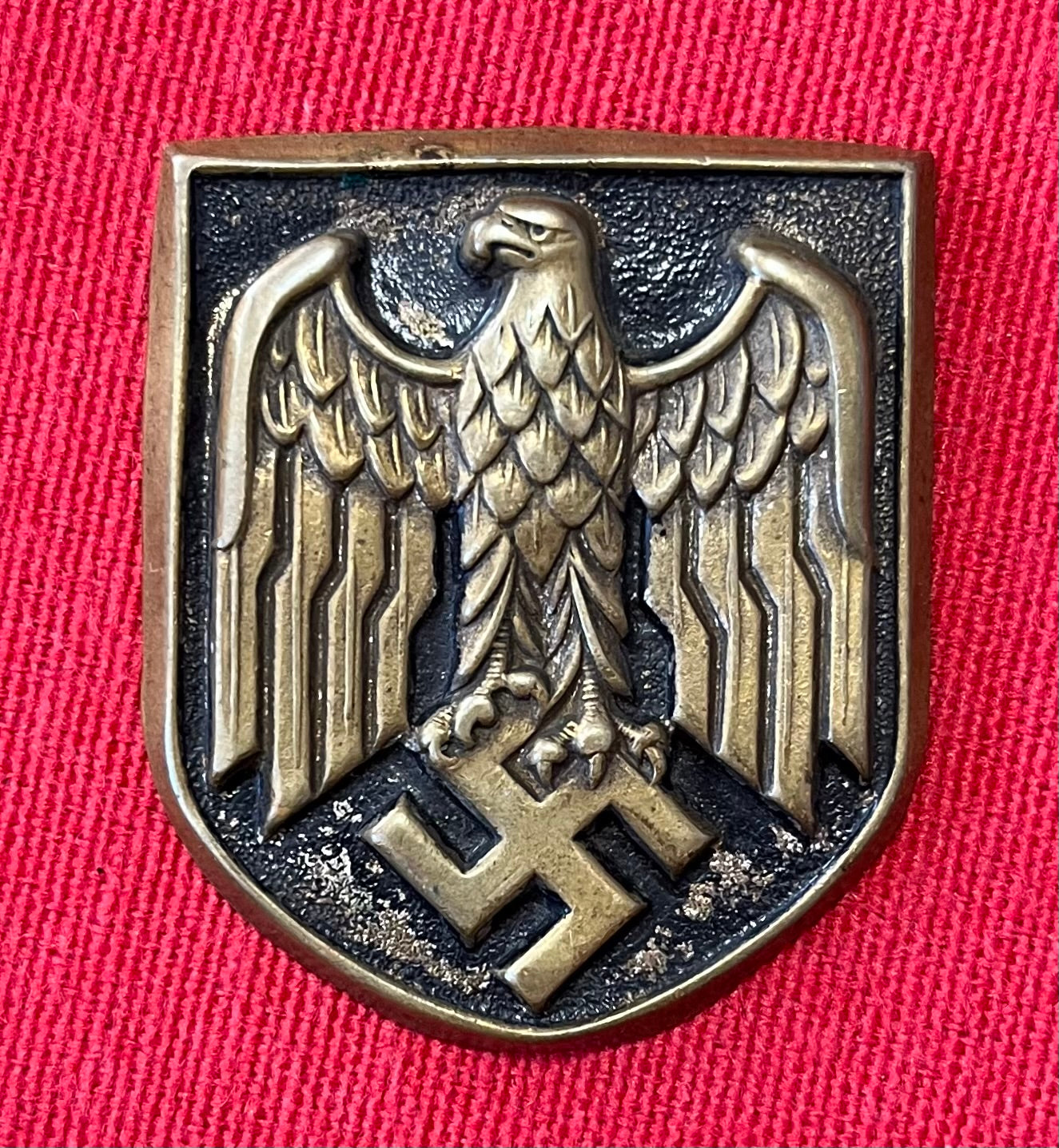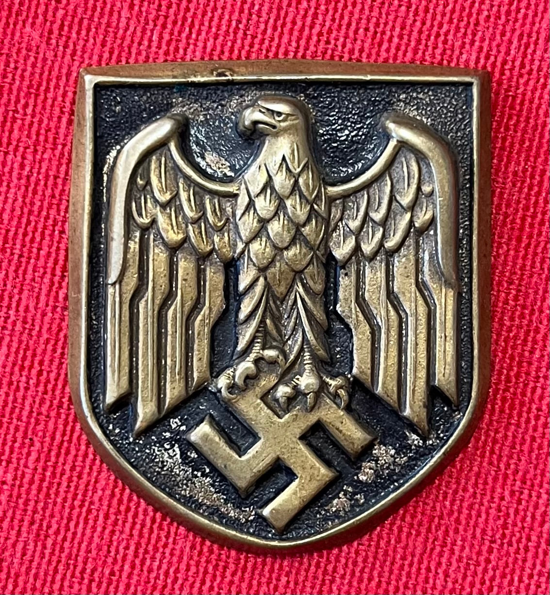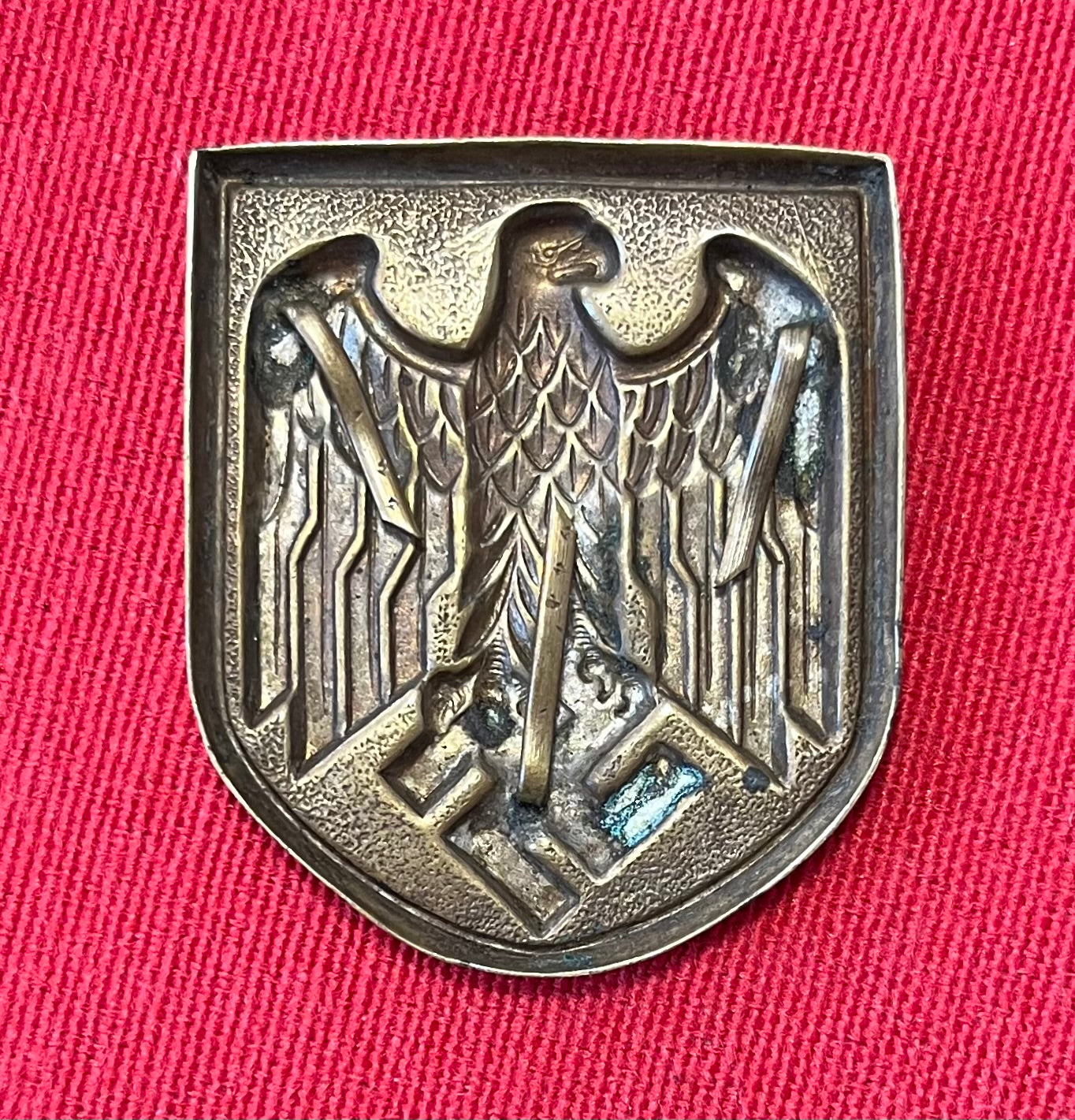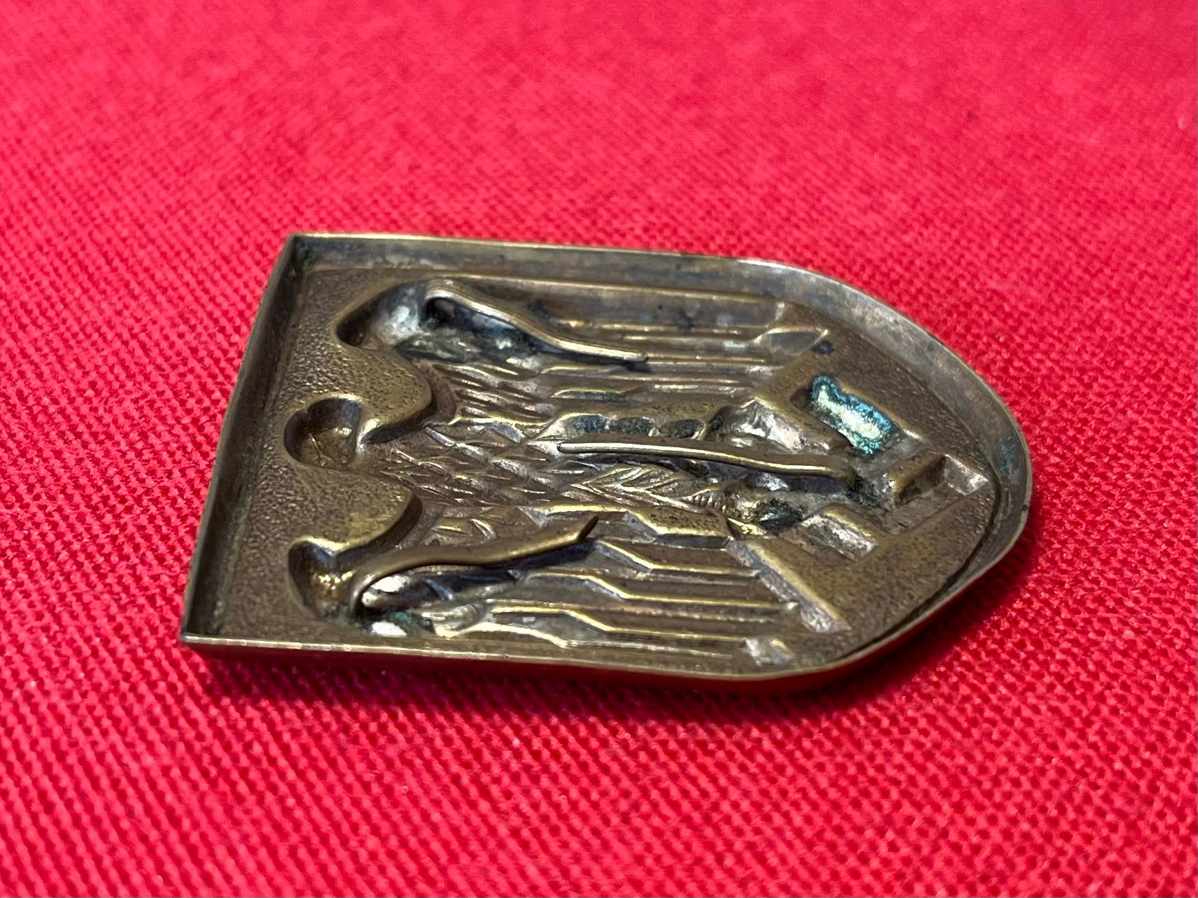 Authentic / Afrika Korps pith helmet shield / DAK / Three prongs on back / Brass construction with black paint / Working order