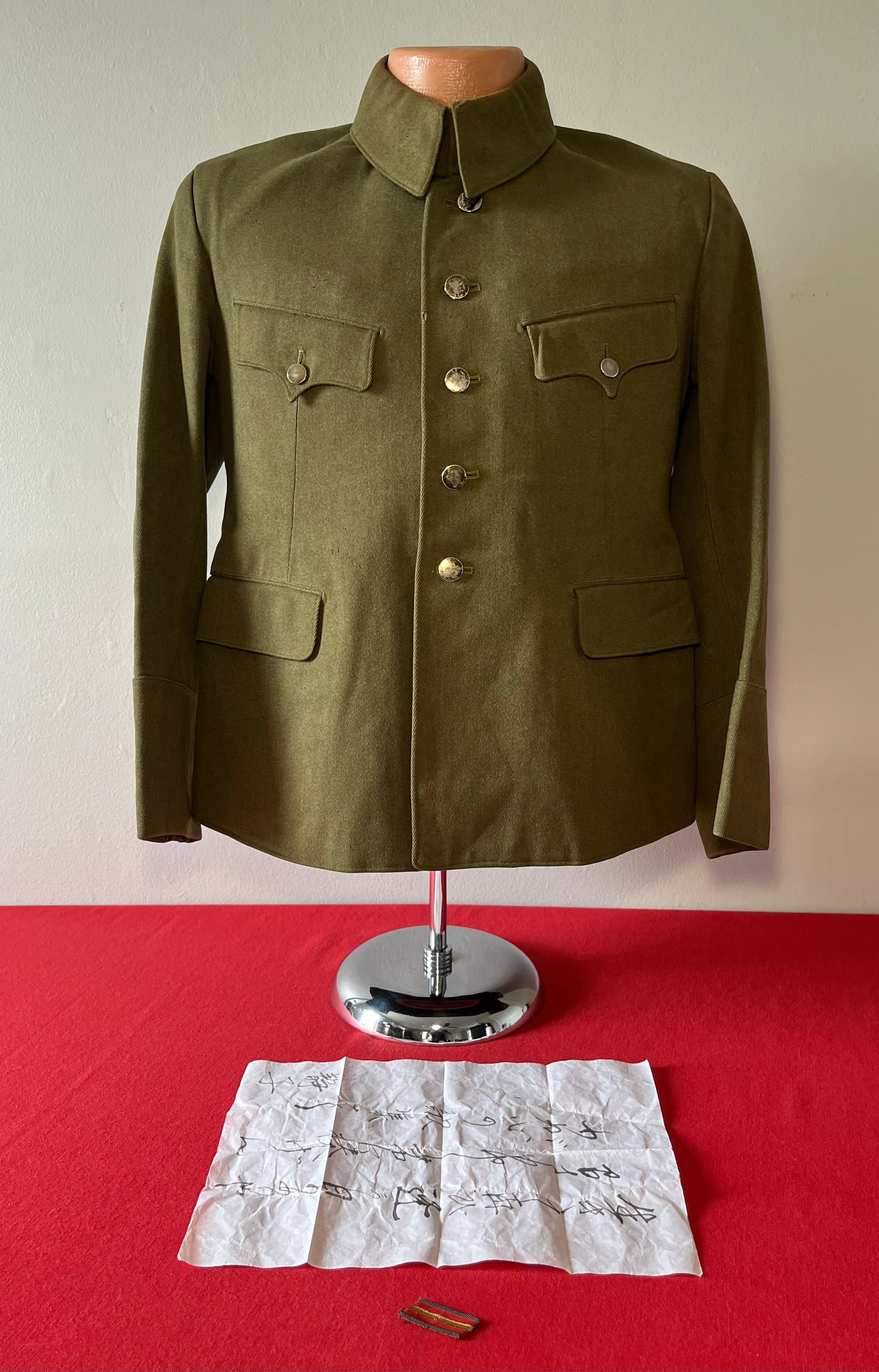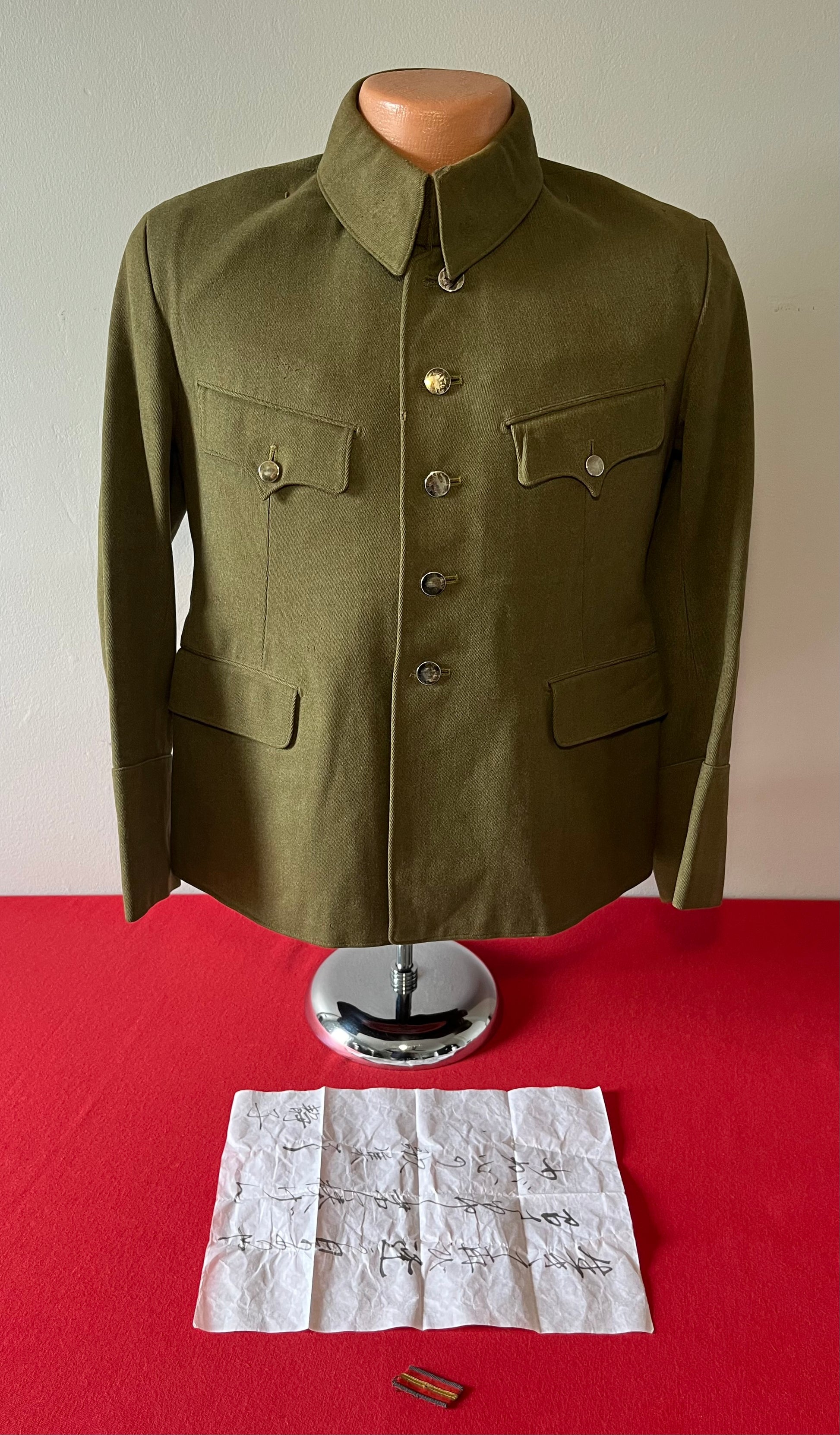 WW2 Japanese Army Uniform Tunic / Field Jacket with Note & Insignia Named