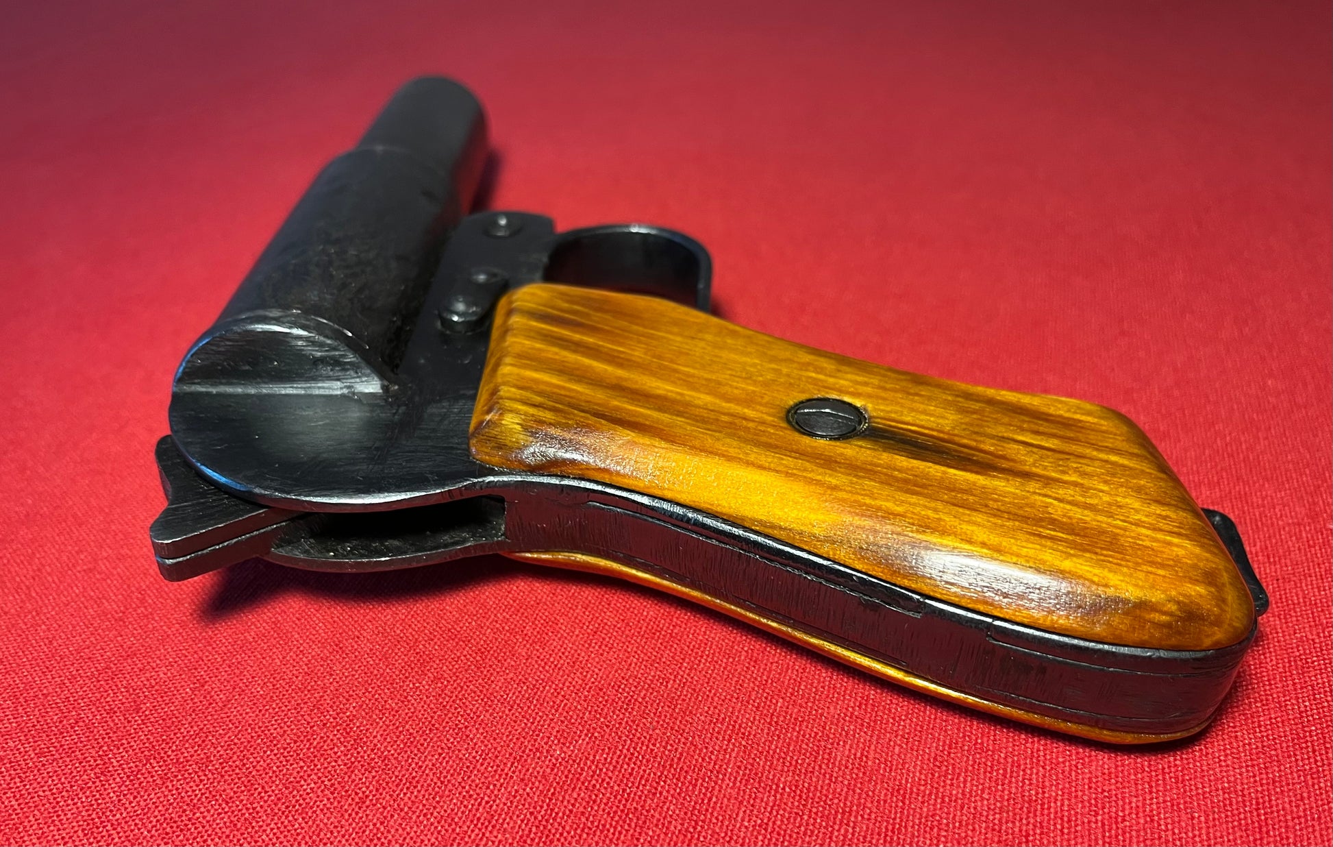 Model 1943 – 26.5mm / Made by Vyatskie Polyany Machine Building Plant / Complete steel construction / Wood grips / 5 ¾ inch barrel / 8 inches overall / Serial # 1235 / Used by Russian military forces in WW2 / Comes with original wooden grips and replacement grips (currently on)