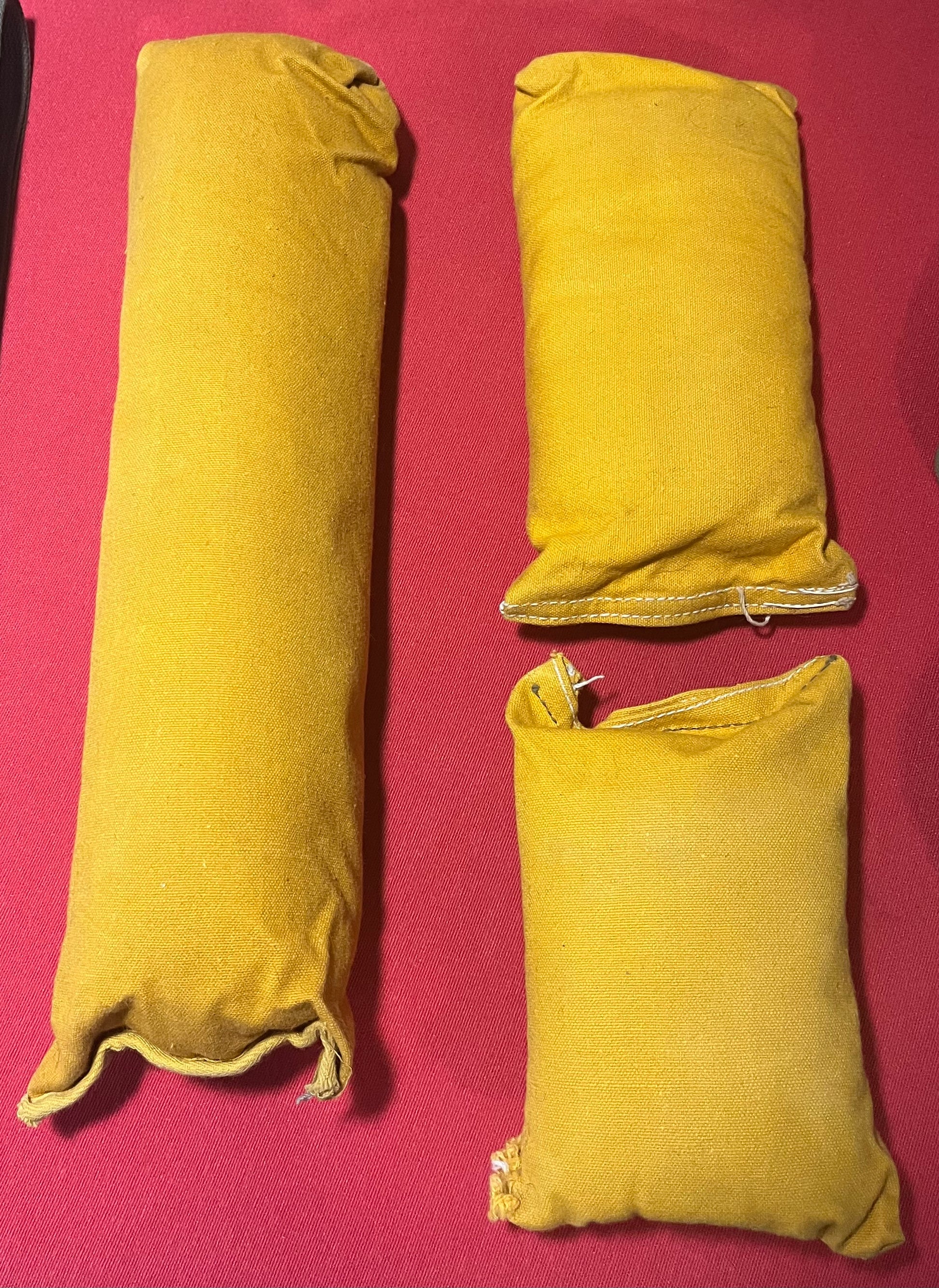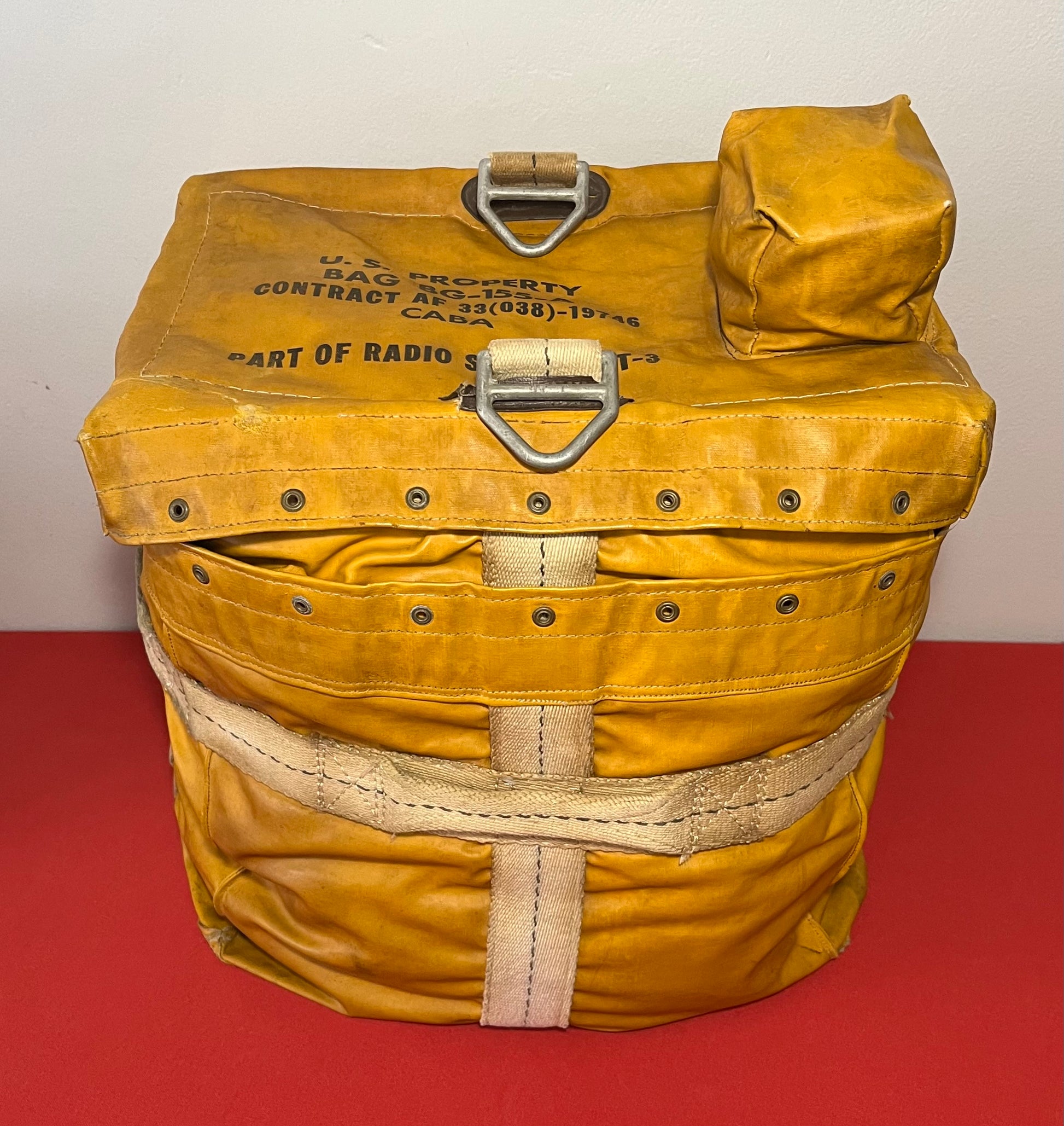 - Bag BG-110-A (Cube shape bag containing Gibson Girl radio and crank with parachute in pouch on top)
